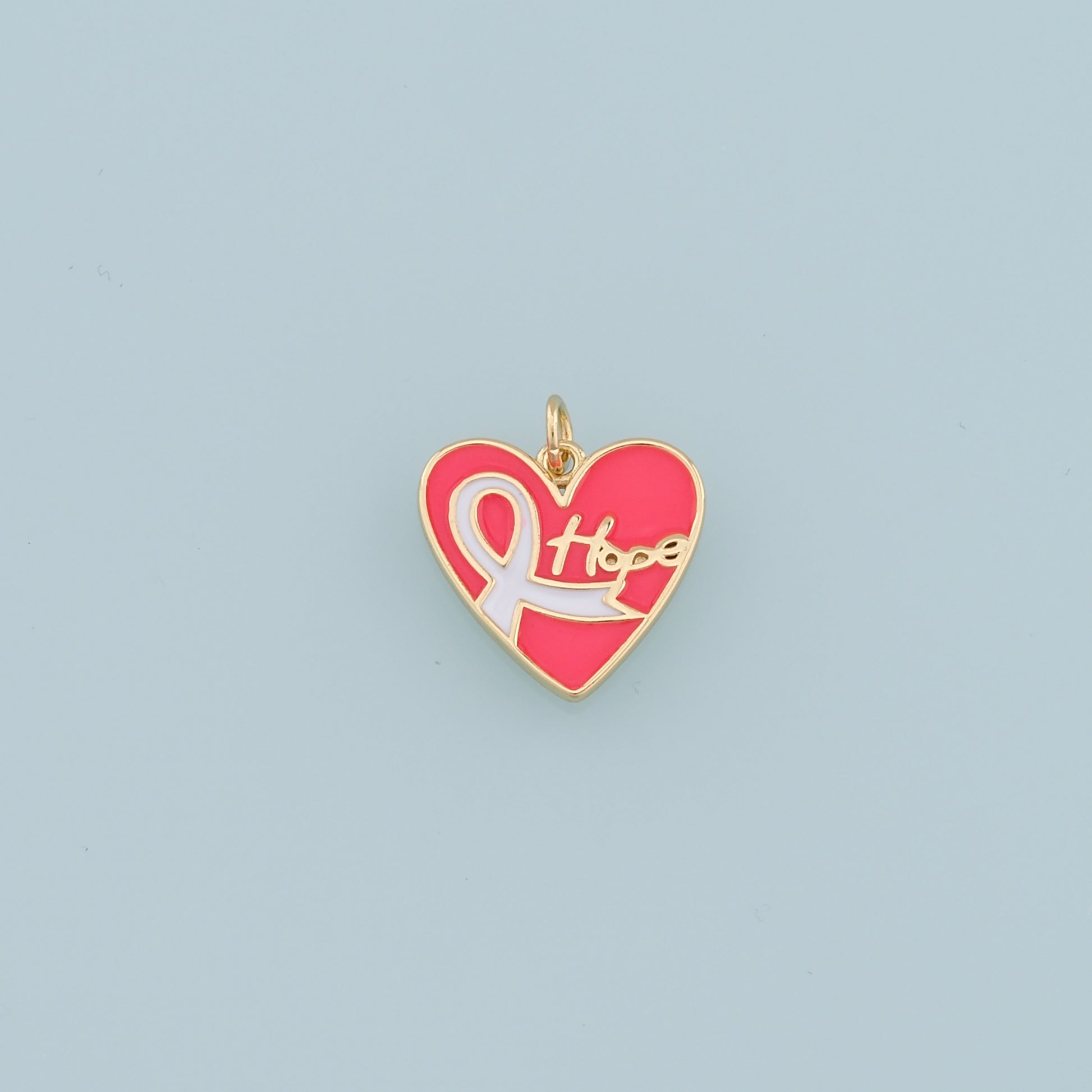 Gold Heart Charms,18K Gold Filled Enamel Ribbon Pendant,Hope Charm Bracelet Necklace for DIY Jewelry Making Supply