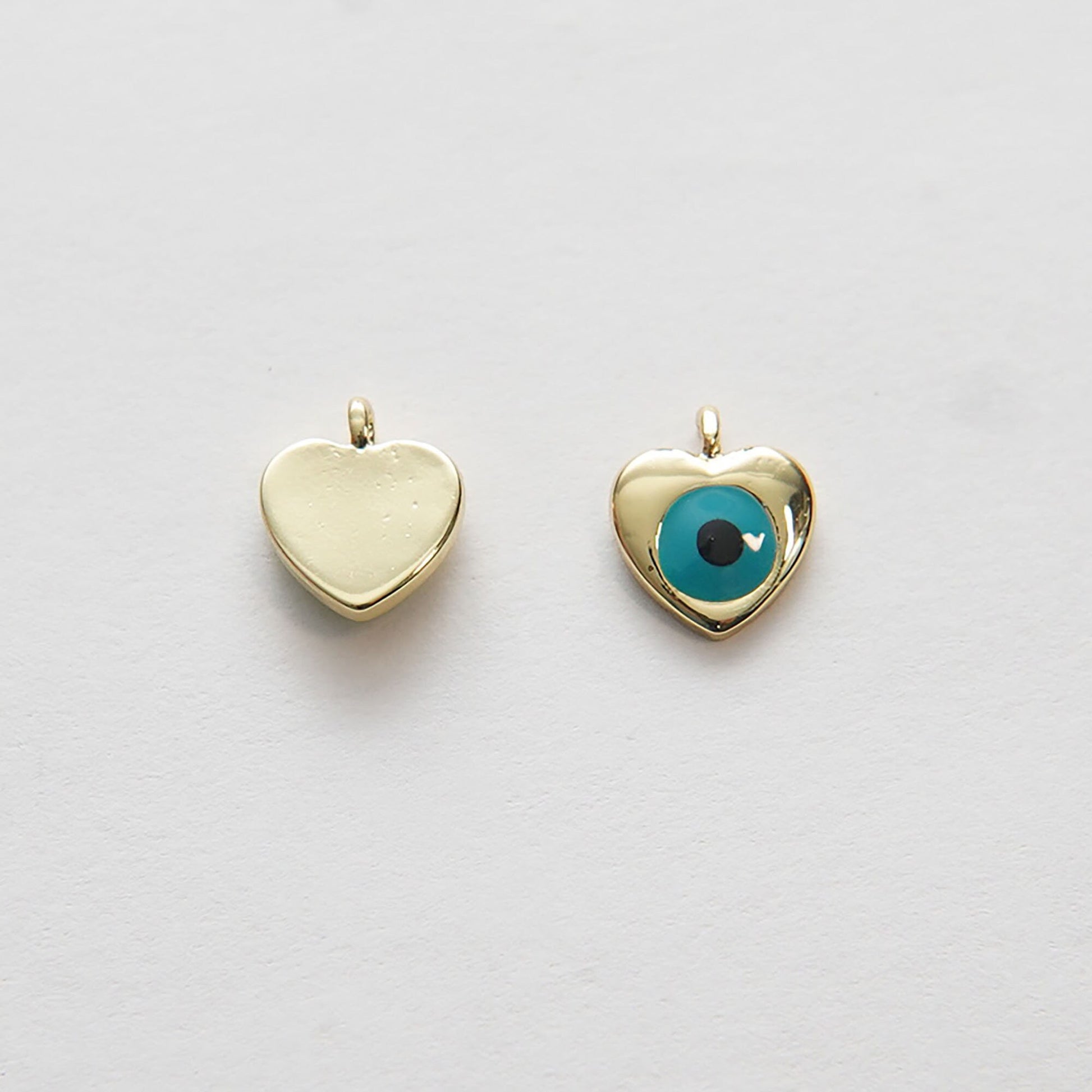 Gold Heart Charms,18K Gold Filled Evil Eye Pendant,Silver Evil eye Charm Bracelet Necklace for DIY Jewelry Making Supply
