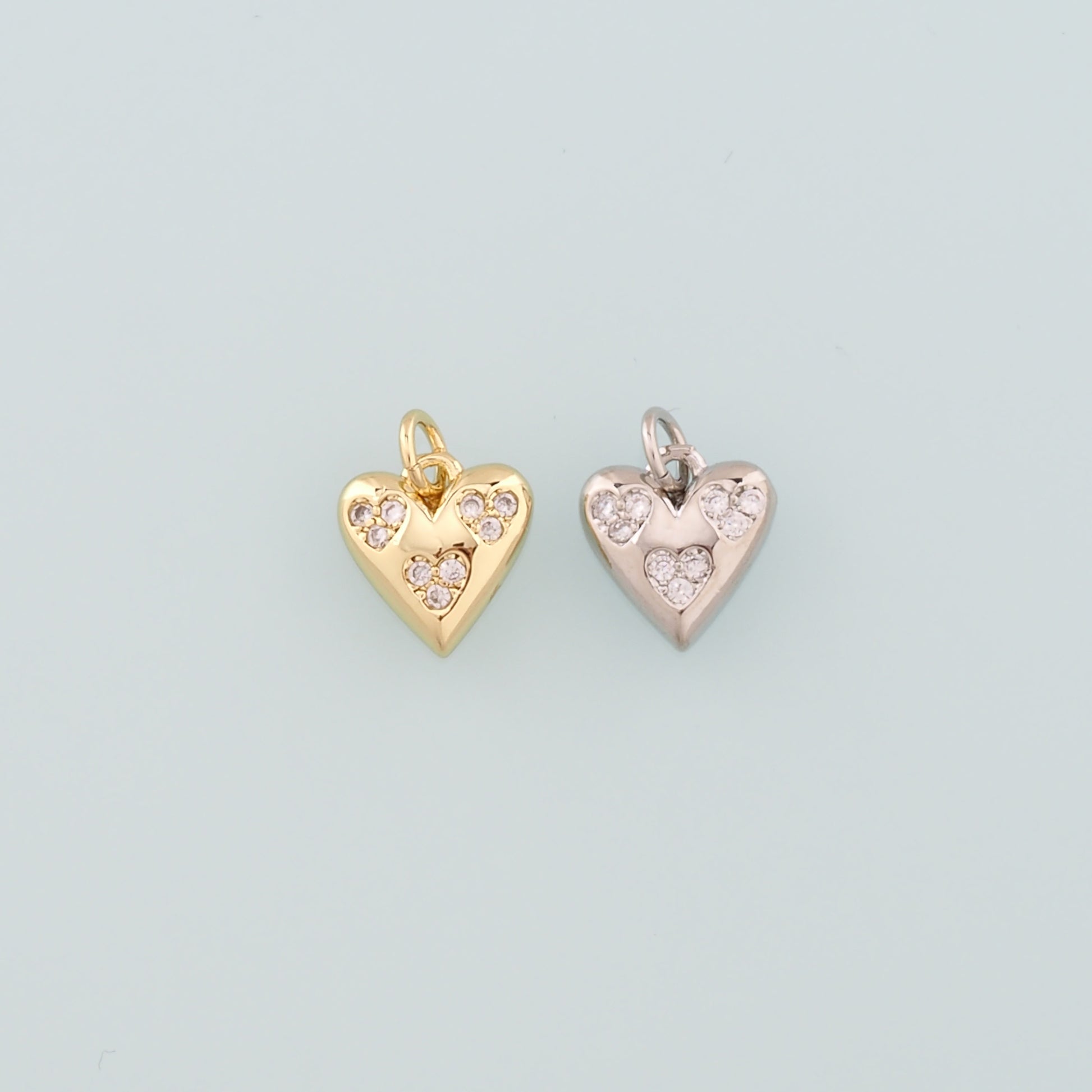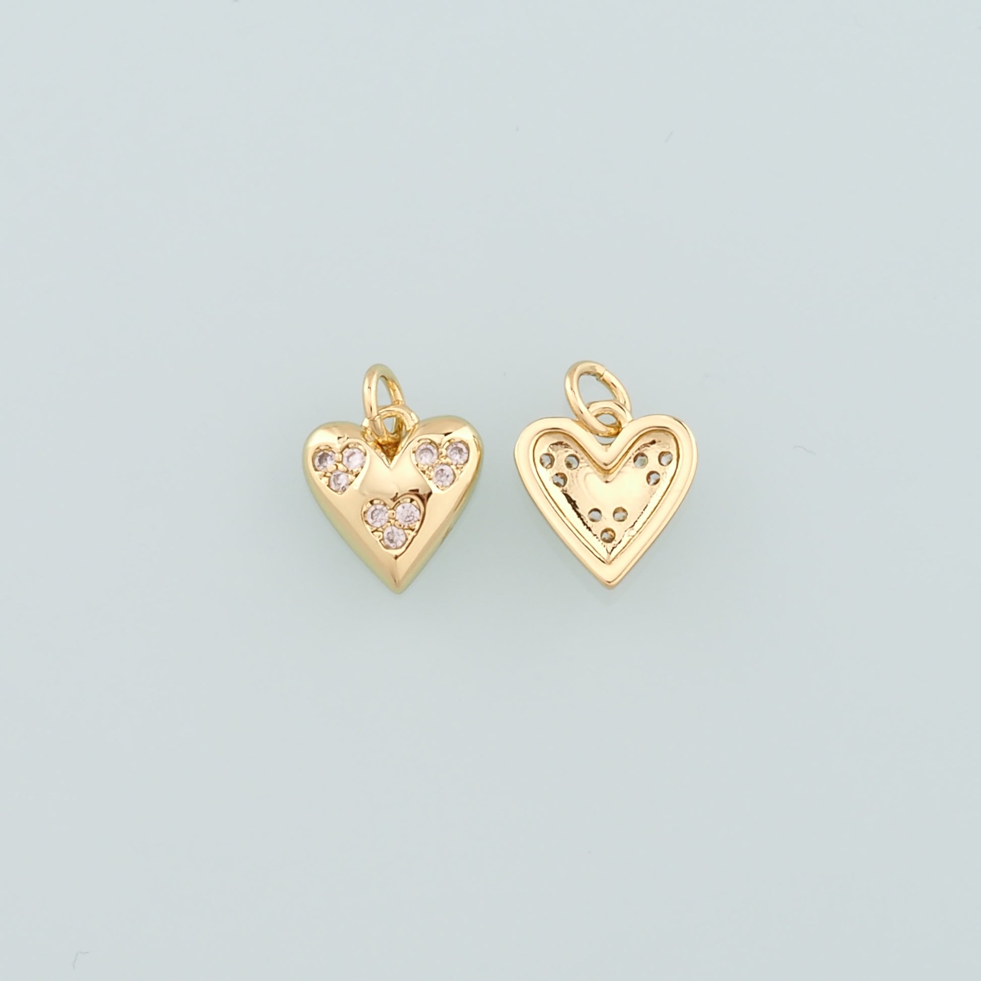 Gold Heart Charms,18K Gold Filled Heart Pendant,CZ Micro Pave Heart Charm Bracelet Necklace for DIY Jewelry Making Supply