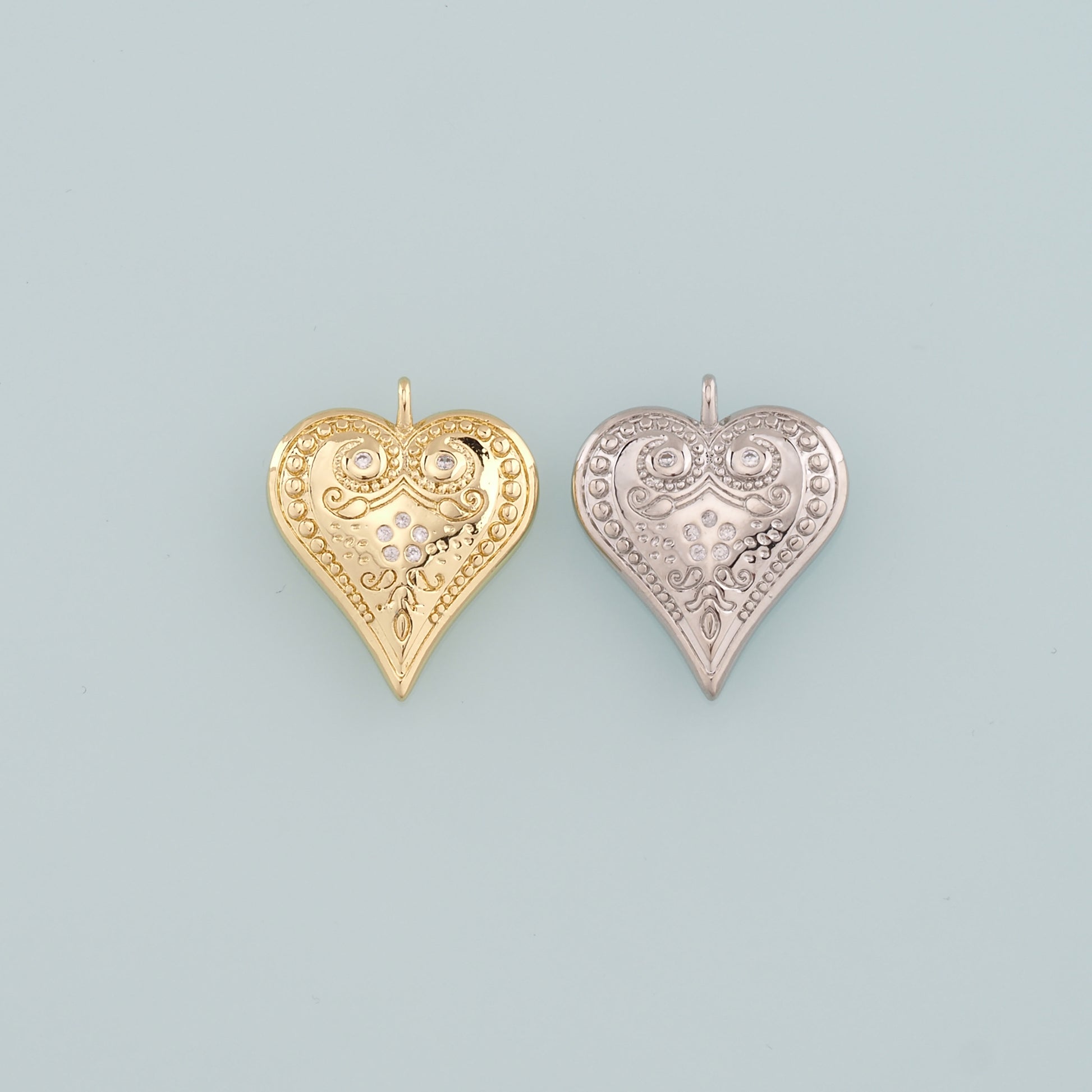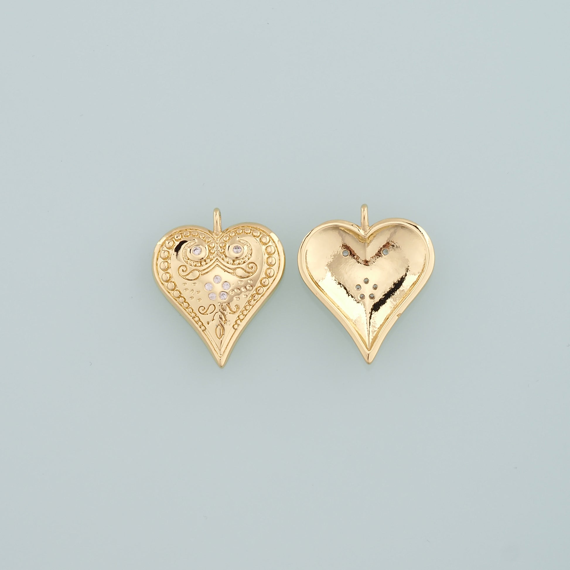 Gold Heart Charms,18K Gold Filled Heart Pendant,CZ Micro Pave Heart Charm Bracelet Necklace for DIY Jewelry Making Supply