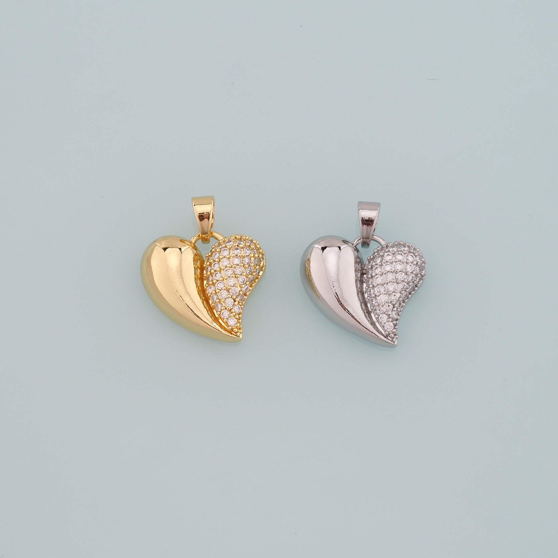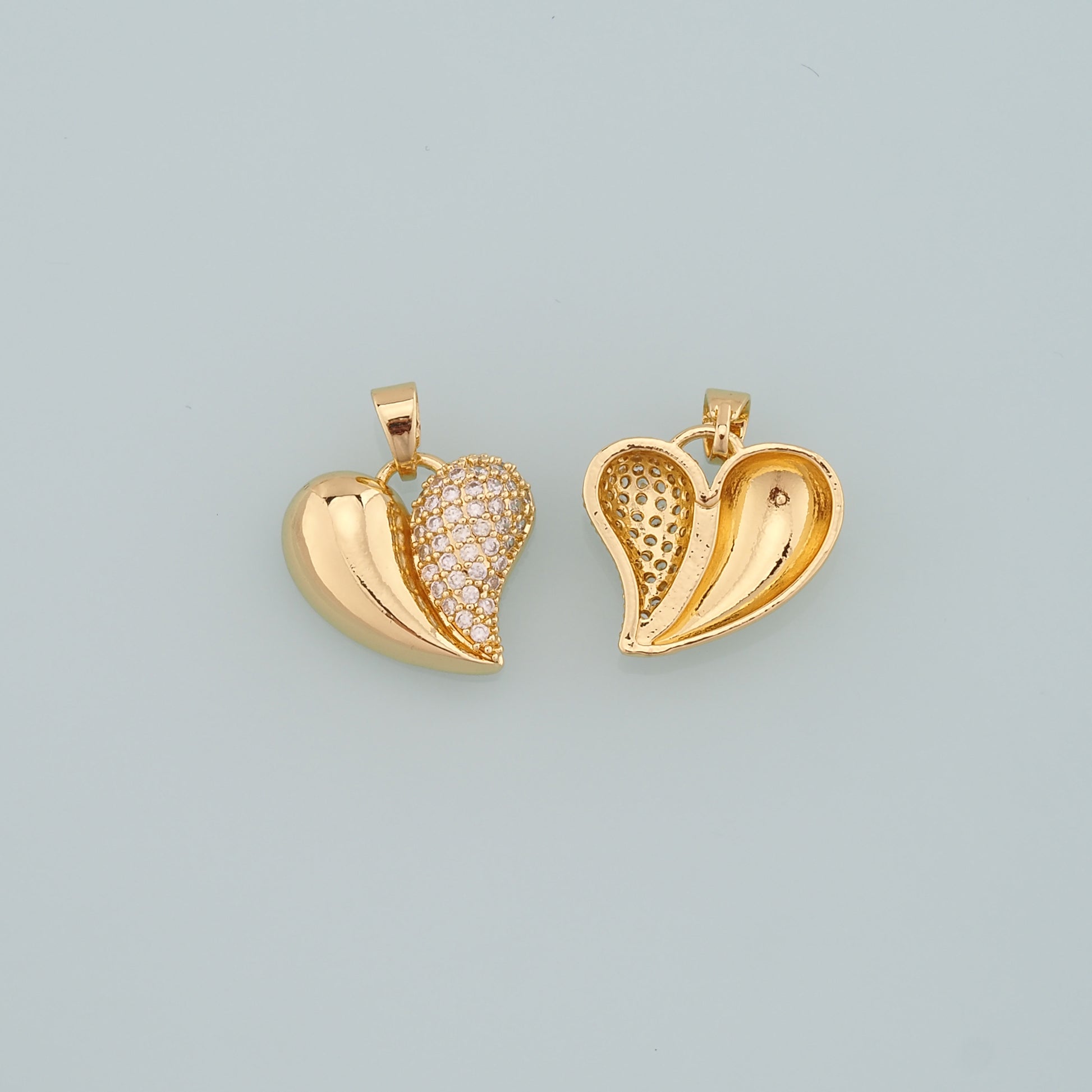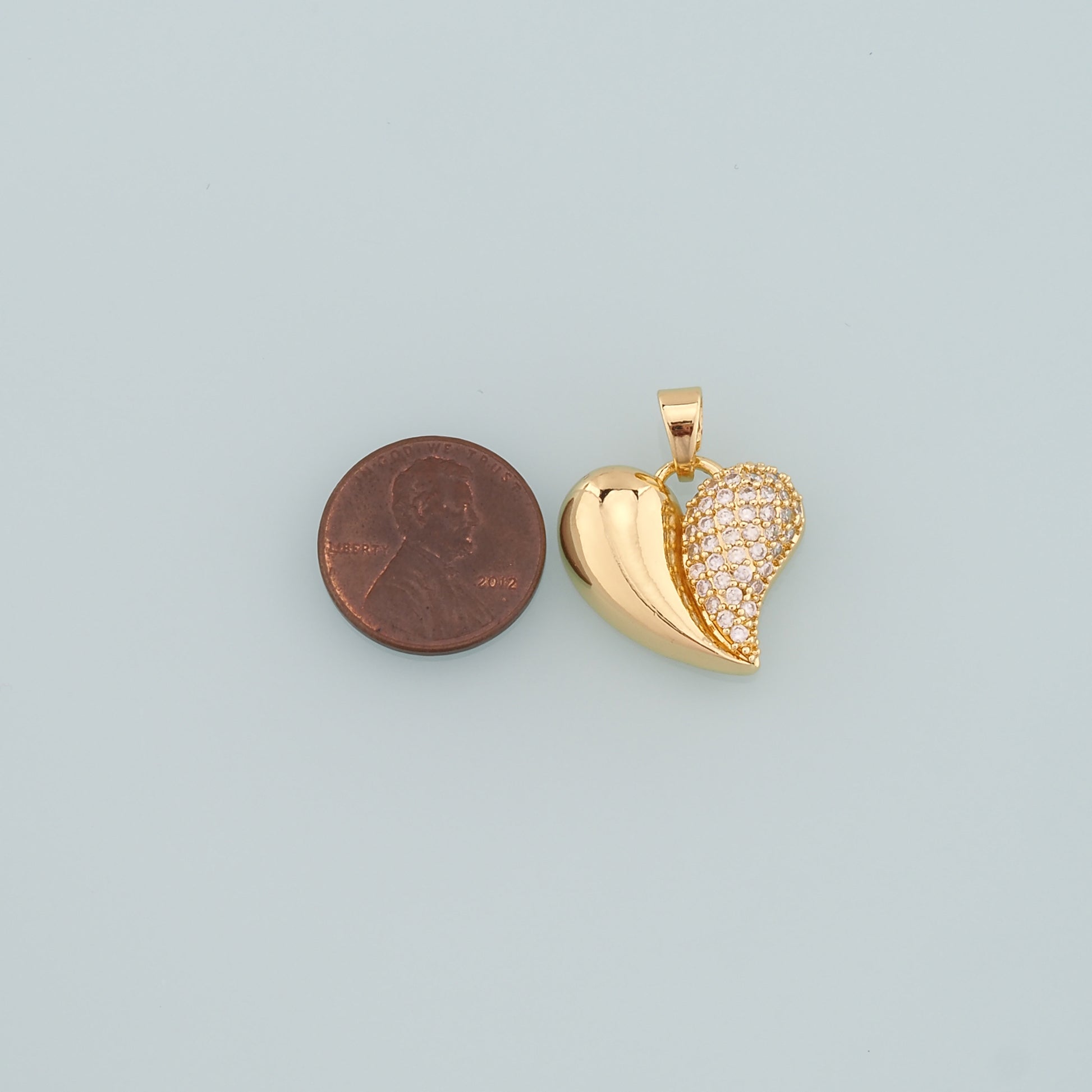Gold Heart Charms,18K Gold Filled Heart Pendant,CZ Micro Pave Heart Charm Bracelet Necklace for DIY Jewelry Making Supply