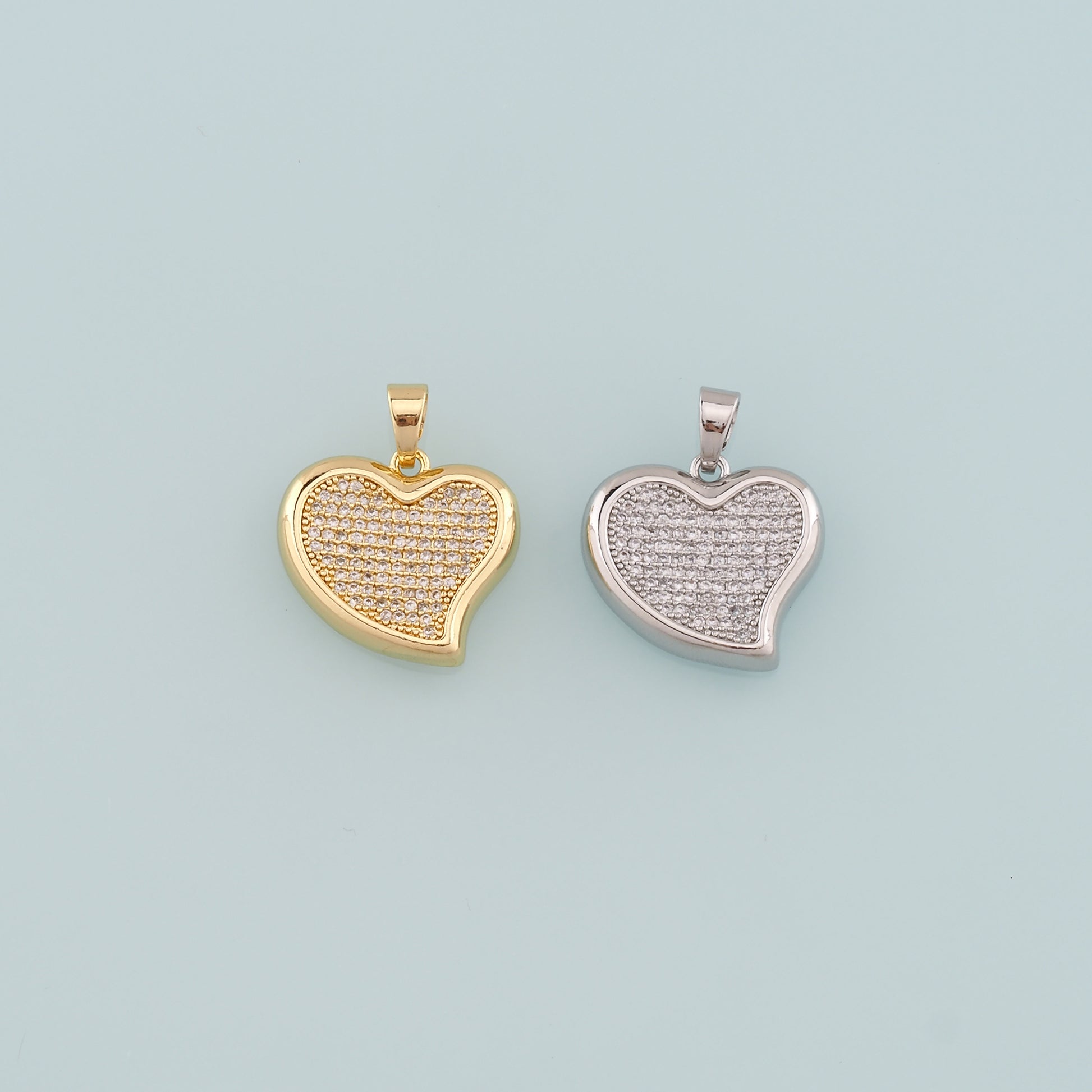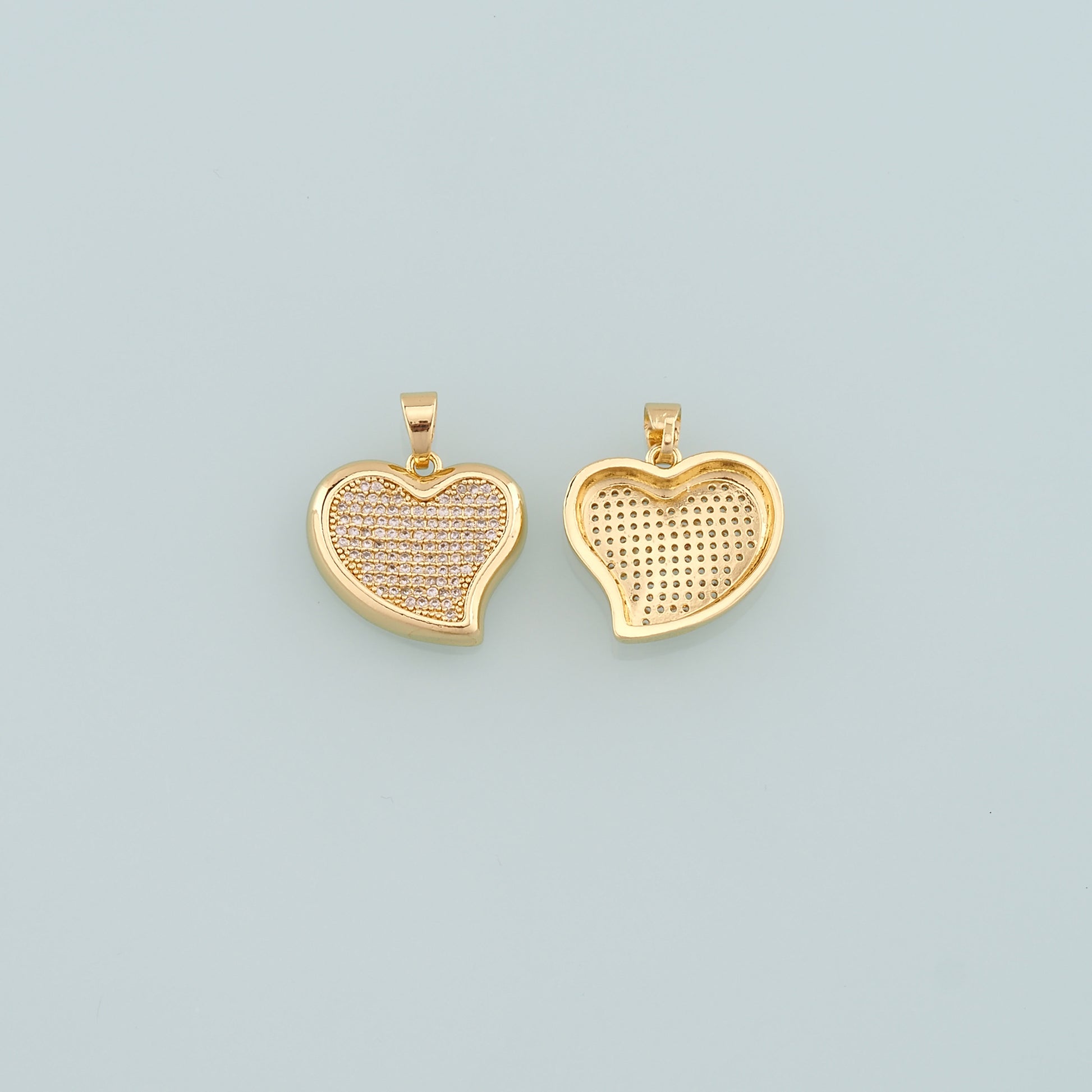 Gold Heart Charms,18K Gold Filled Heart Pendant,CZ Micro Pave Heart Charm Bracelet Necklace for DIY Jewelry Making Supply