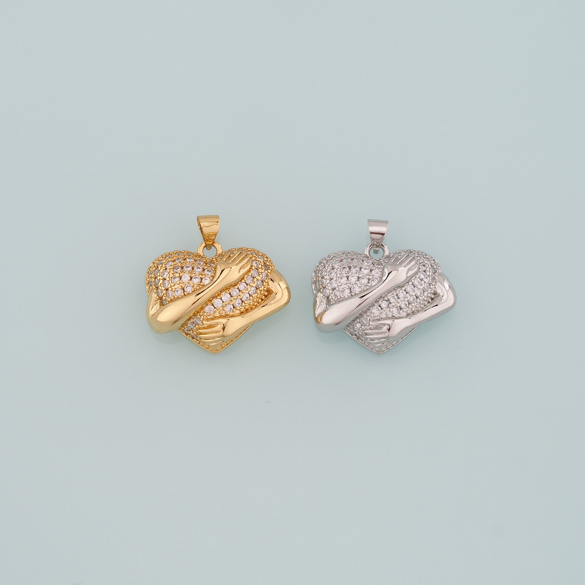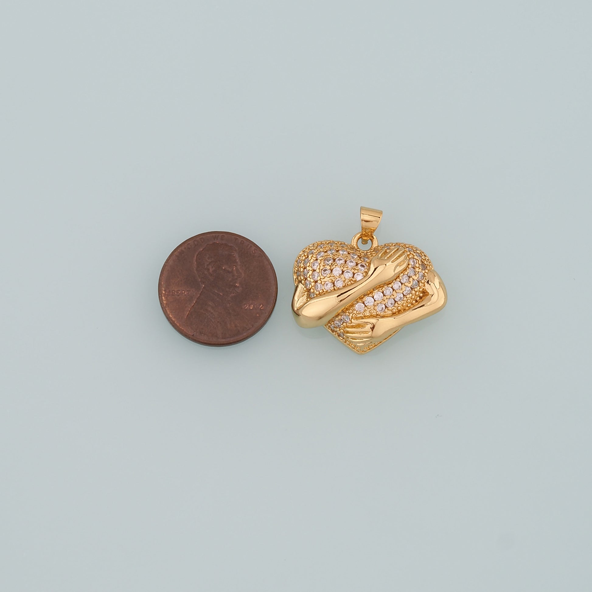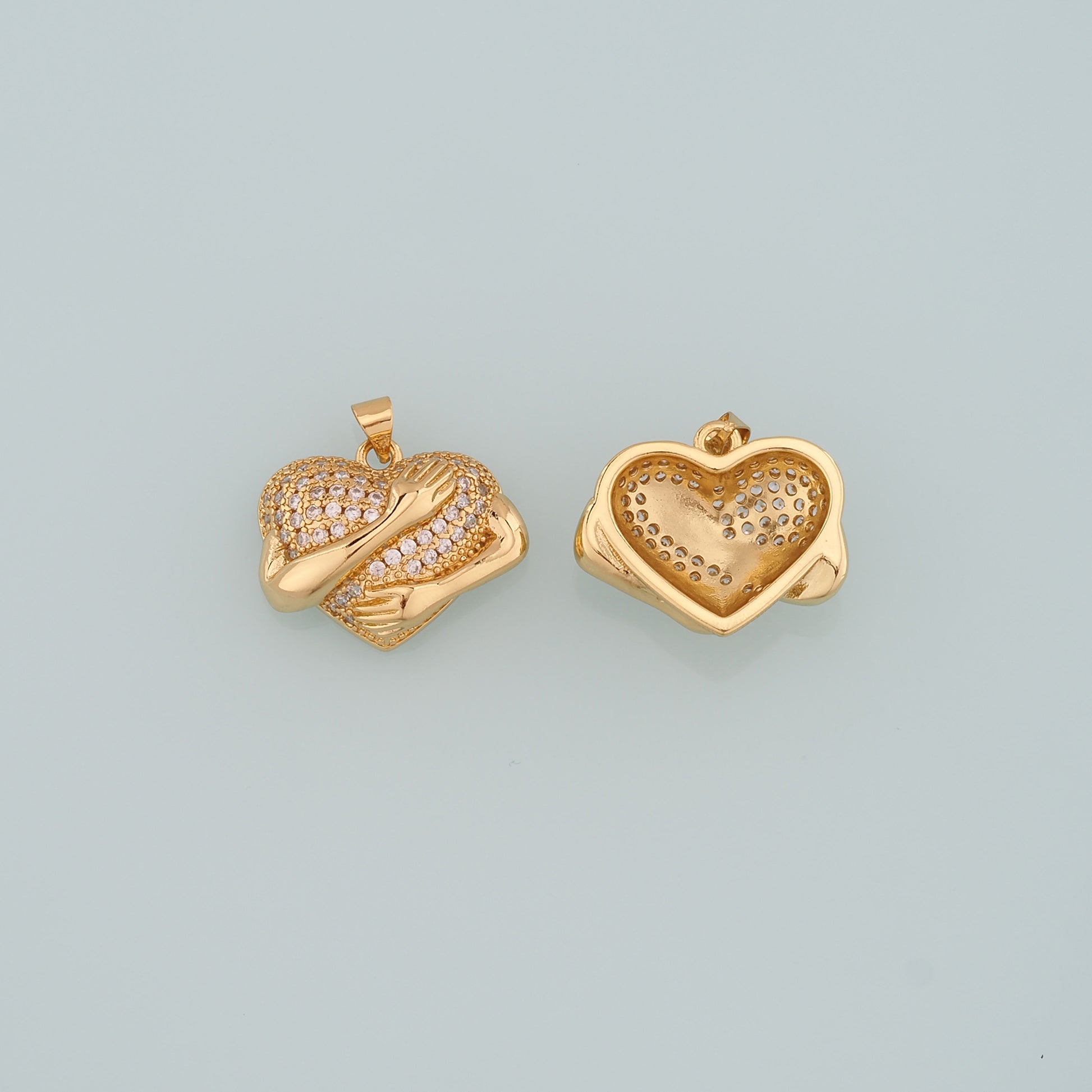 Gold Heart Charms,18K Gold Filled Heart Pendant,CZ Micro Pave Heart Charm Bracelet Necklace for DIY Jewelry Making Supply