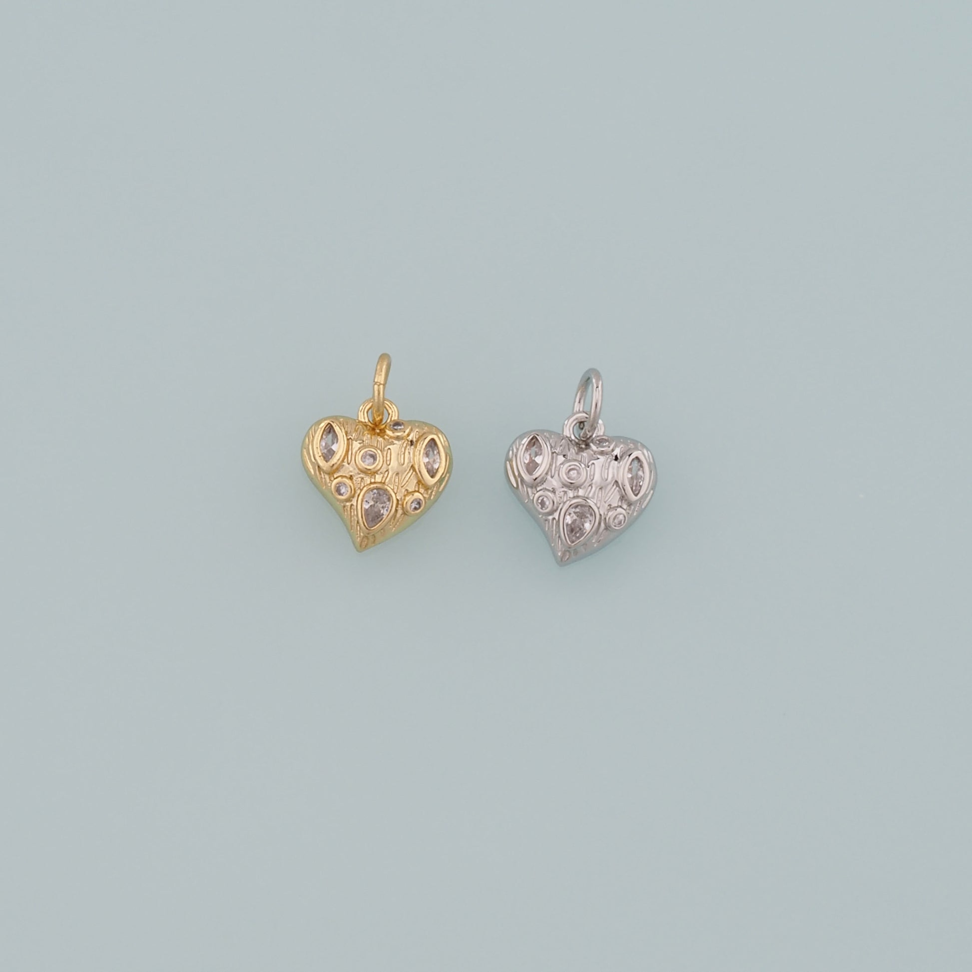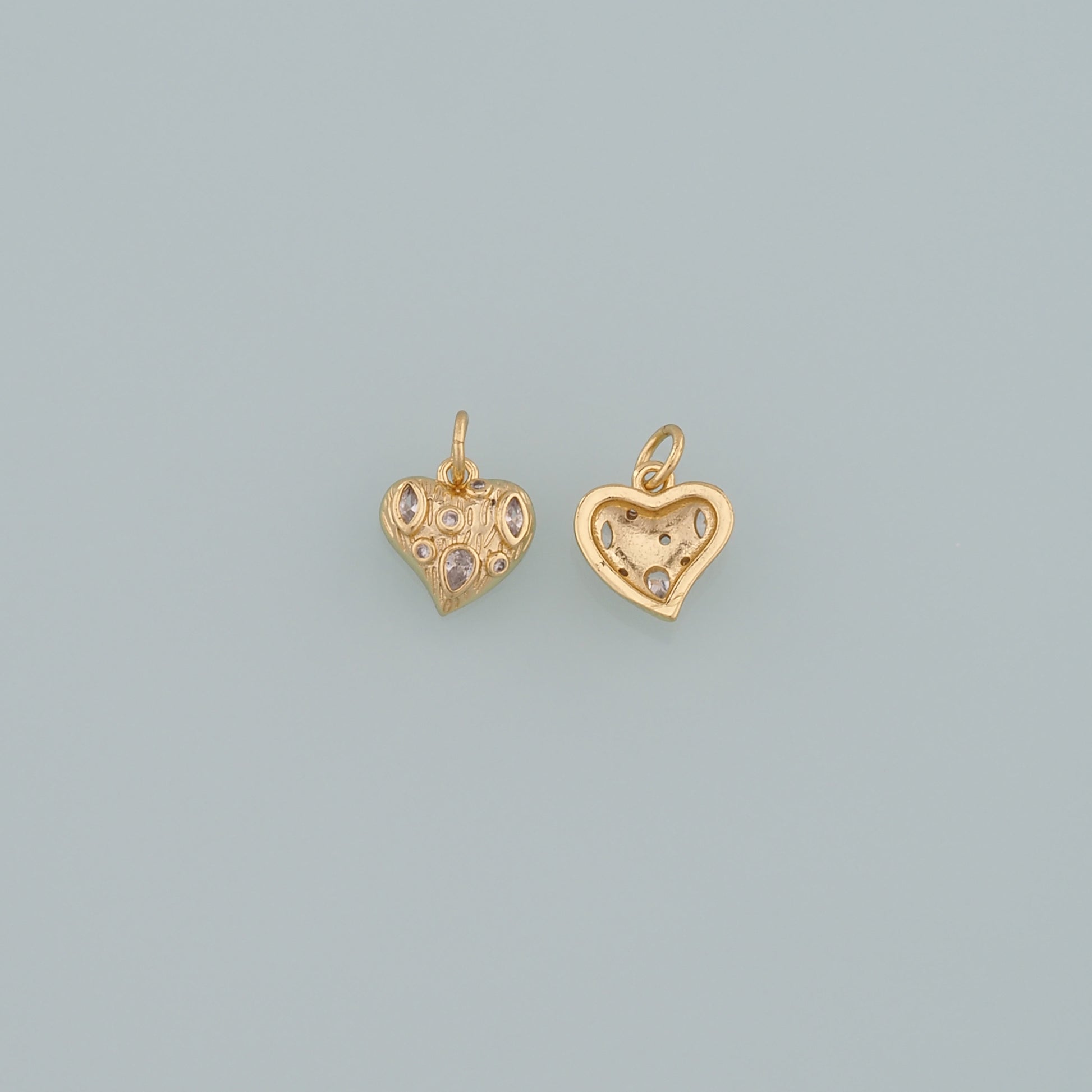 Gold Heart Charms,18K Gold Filled Heart Pendant,CZ Micro Pave Heart Charm Bracelet Necklace for DIY Jewelry Making Supply