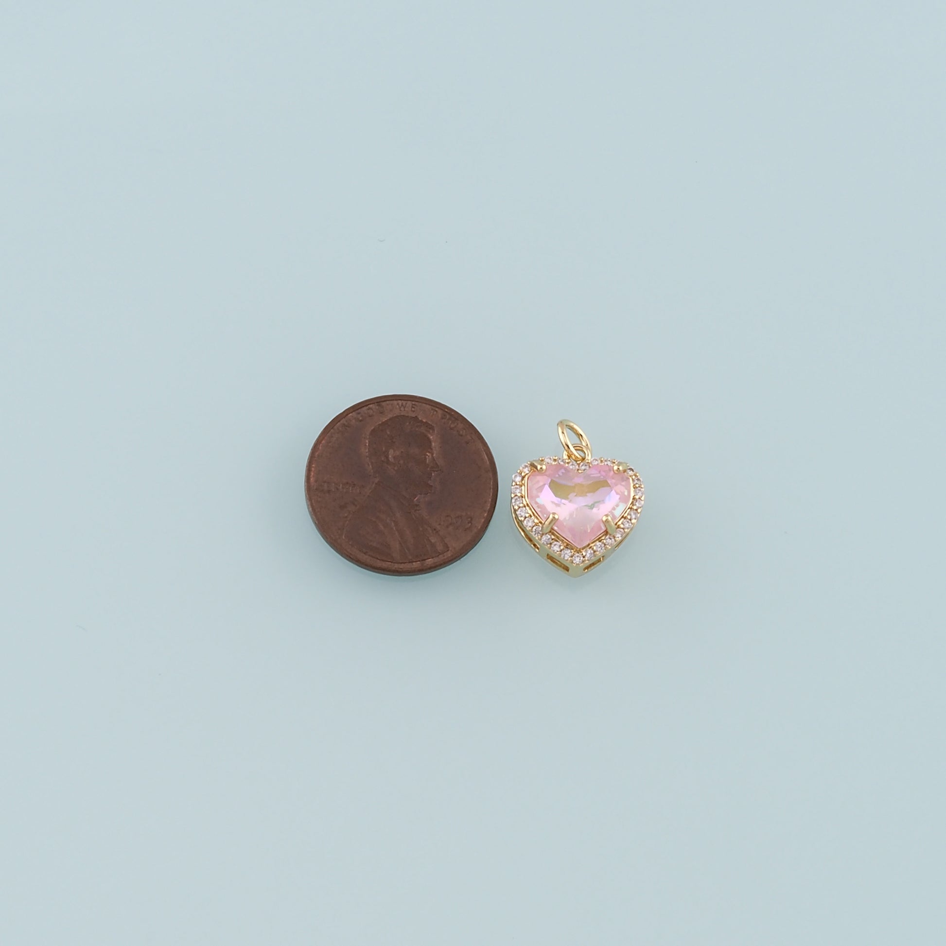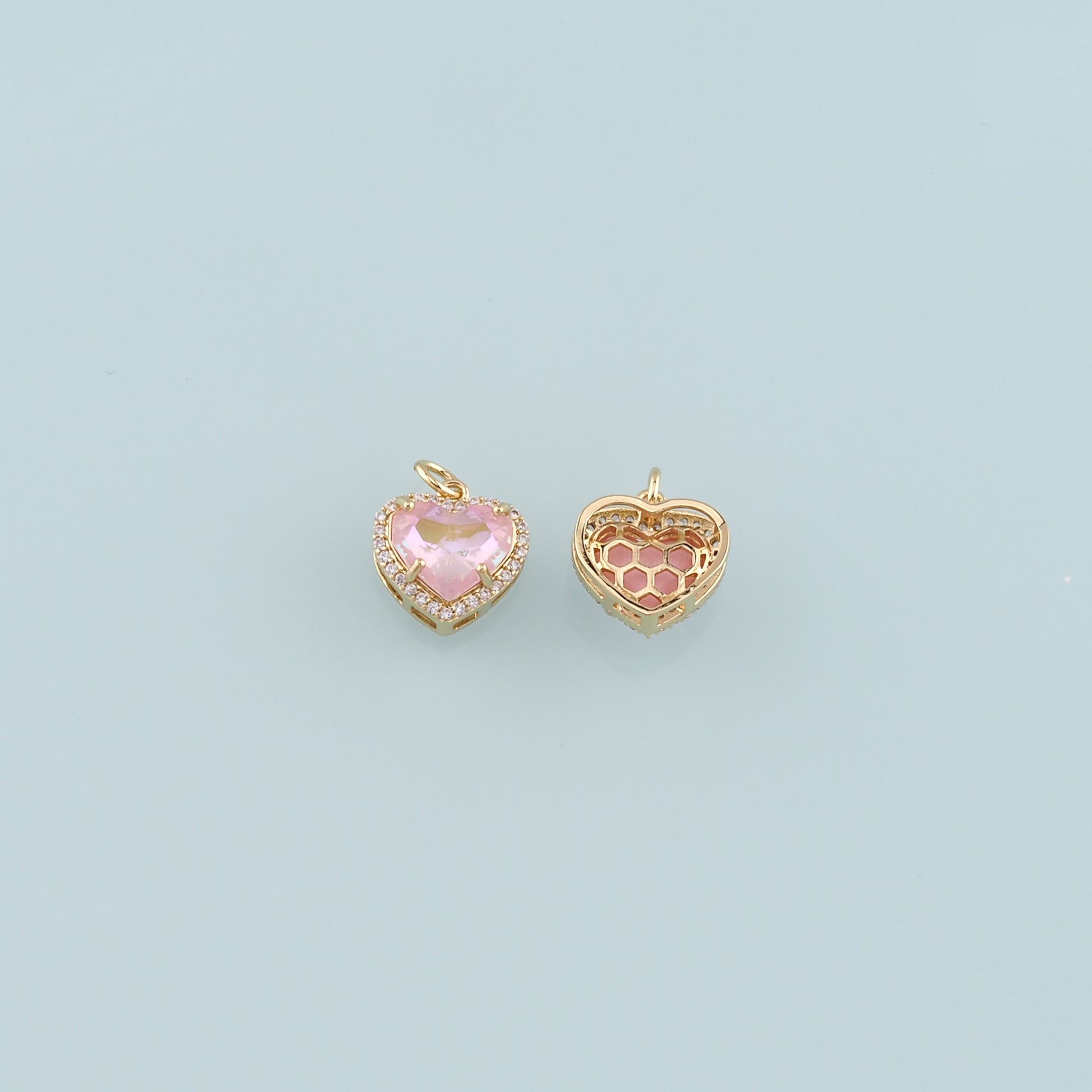 Gold Heart Charms,18K Gold Filled Heart Pendant,CZ Micro Pave Heart Charm Bracelet Necklace for DIY Jewelry Making Supply