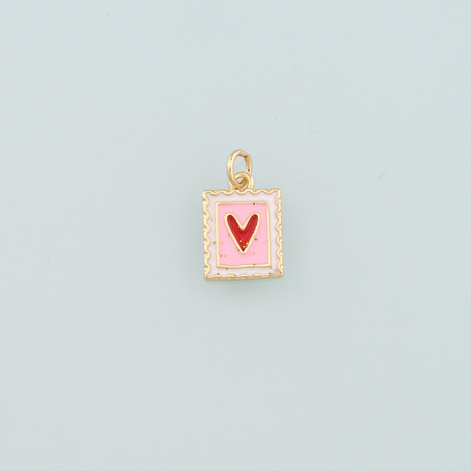 Gold Heart Charms,18K Gold Filled Heart Pendant,Enamel Heart Charm Bracelet Necklace for DIY Jewelry Making Supply
