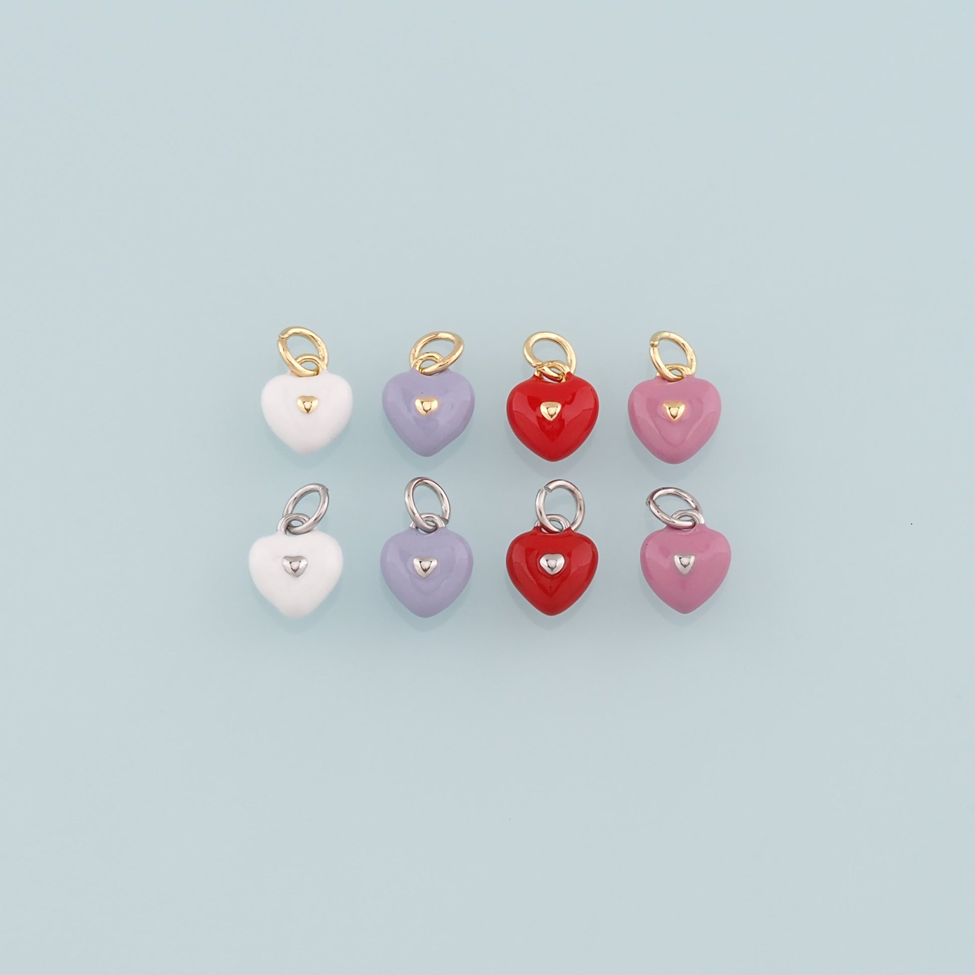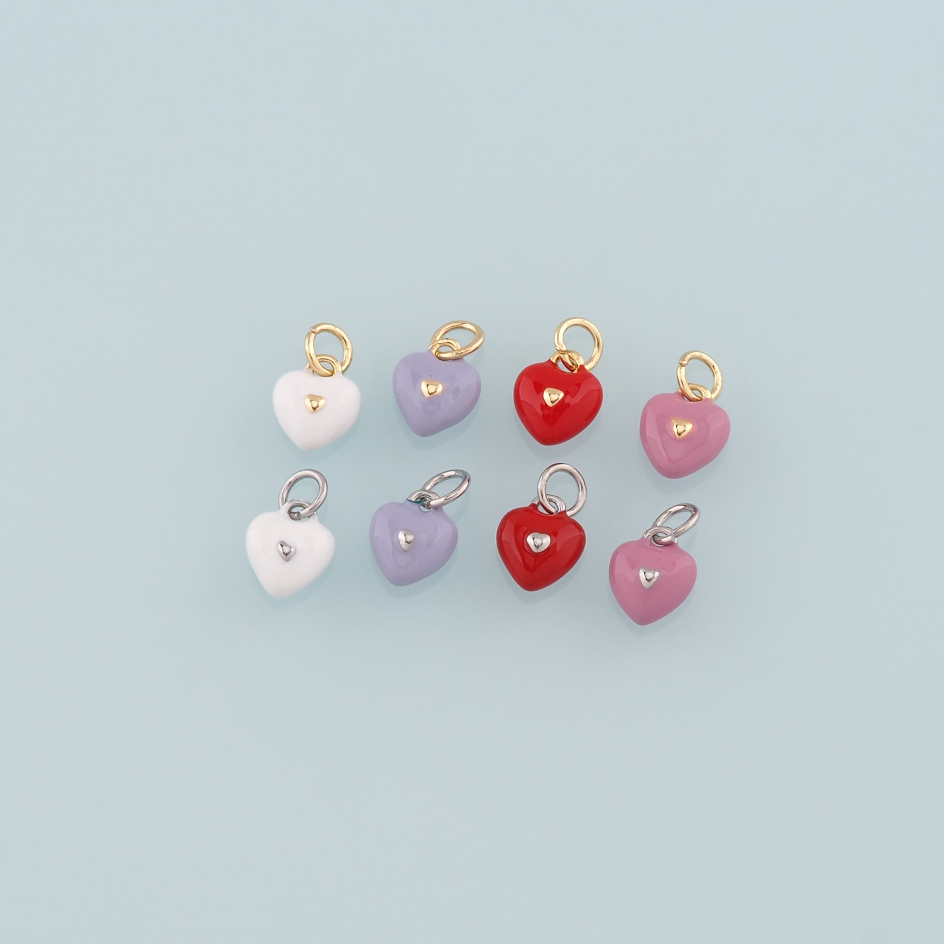 Gold Heart Charms,18K Gold Filled Heart Pendant,Enamel Heart Charm Bracelet Necklace for DIY Jewelry Making Supply