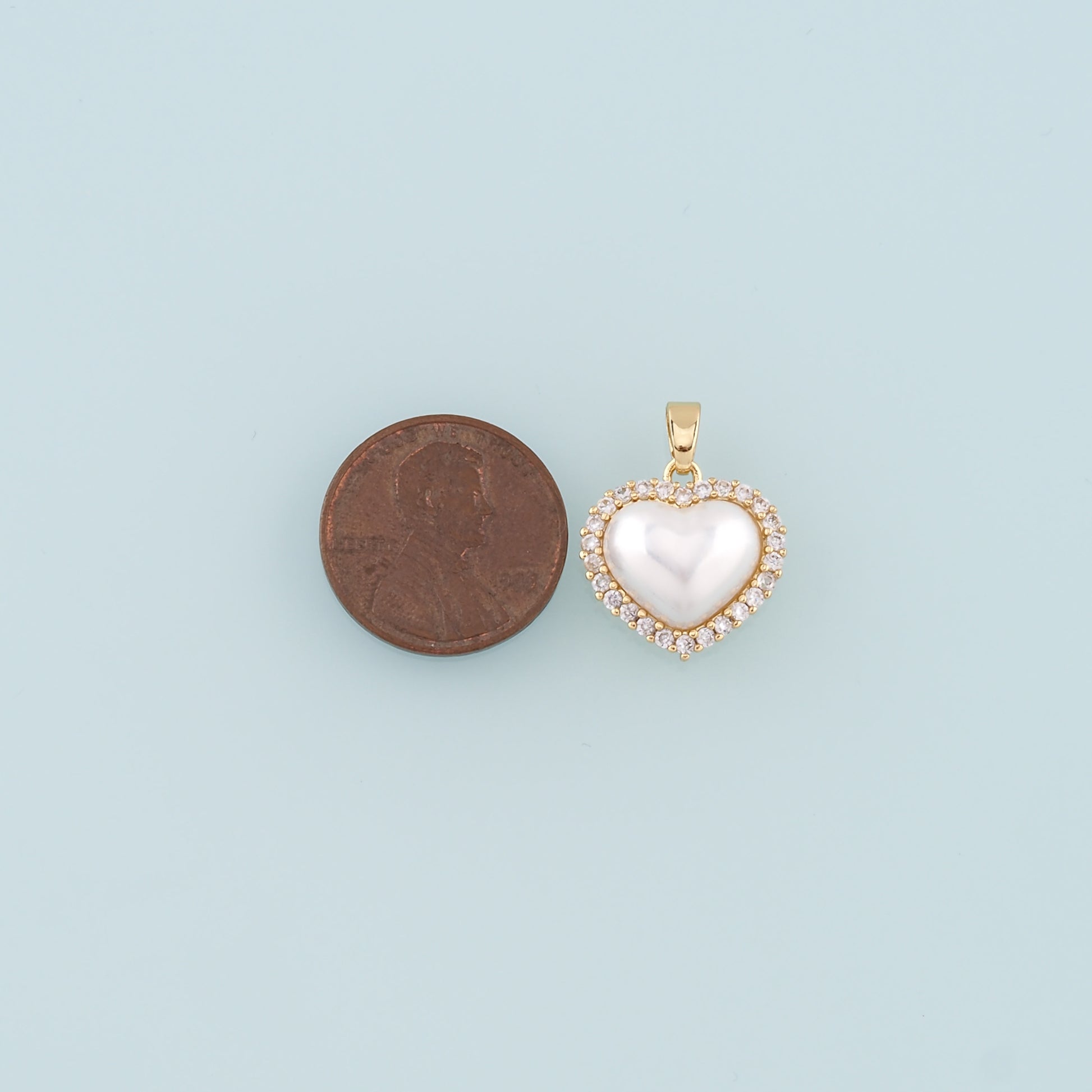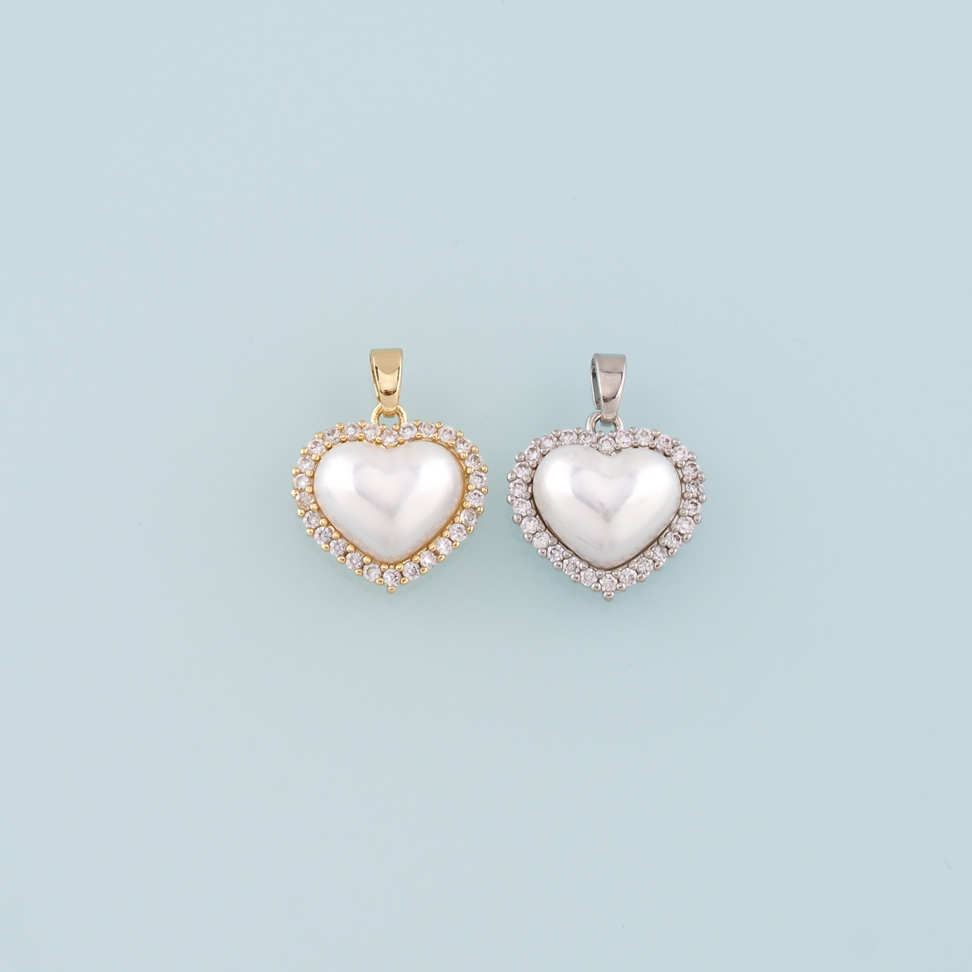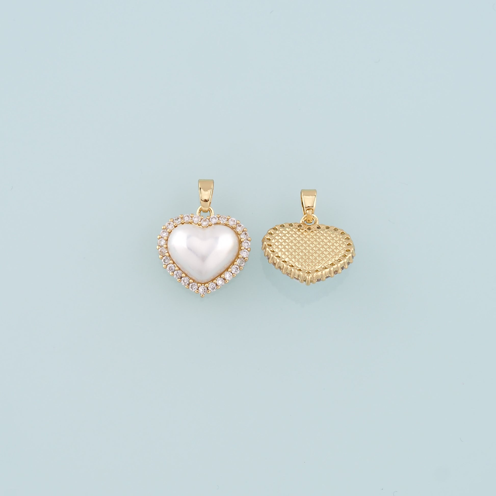 Gold Heart Charms,18K Gold Filled Pearl Heart Pendant,CZ Micro Pave Heart Charm Bracelet Necklace for DIY Jewelry Making Supply