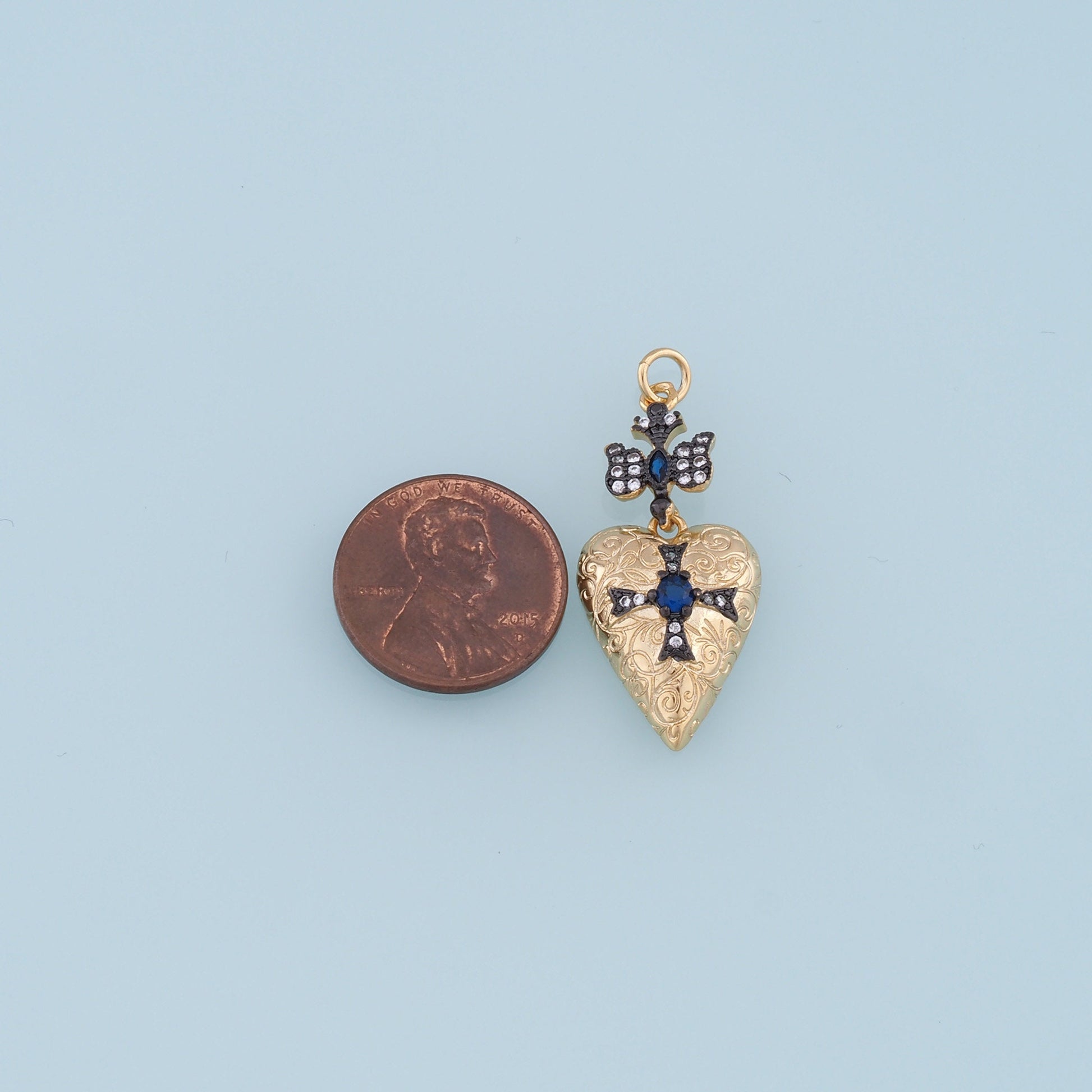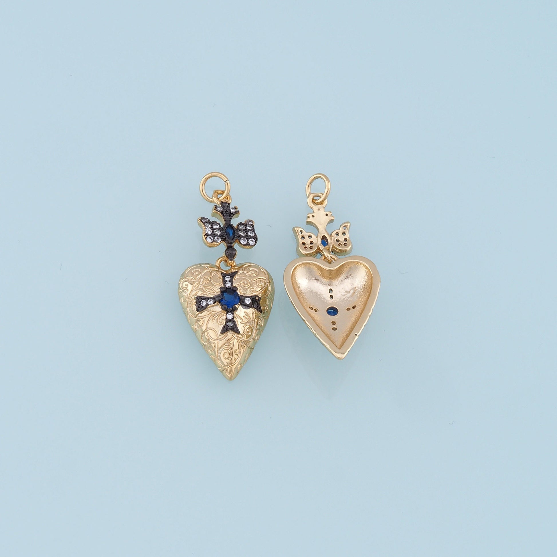 Gold Heart Cross Charms,18K Gold Filled Heart Pendant,Cross Charm Bracelet Necklace for DIY Jewelry Making Supply