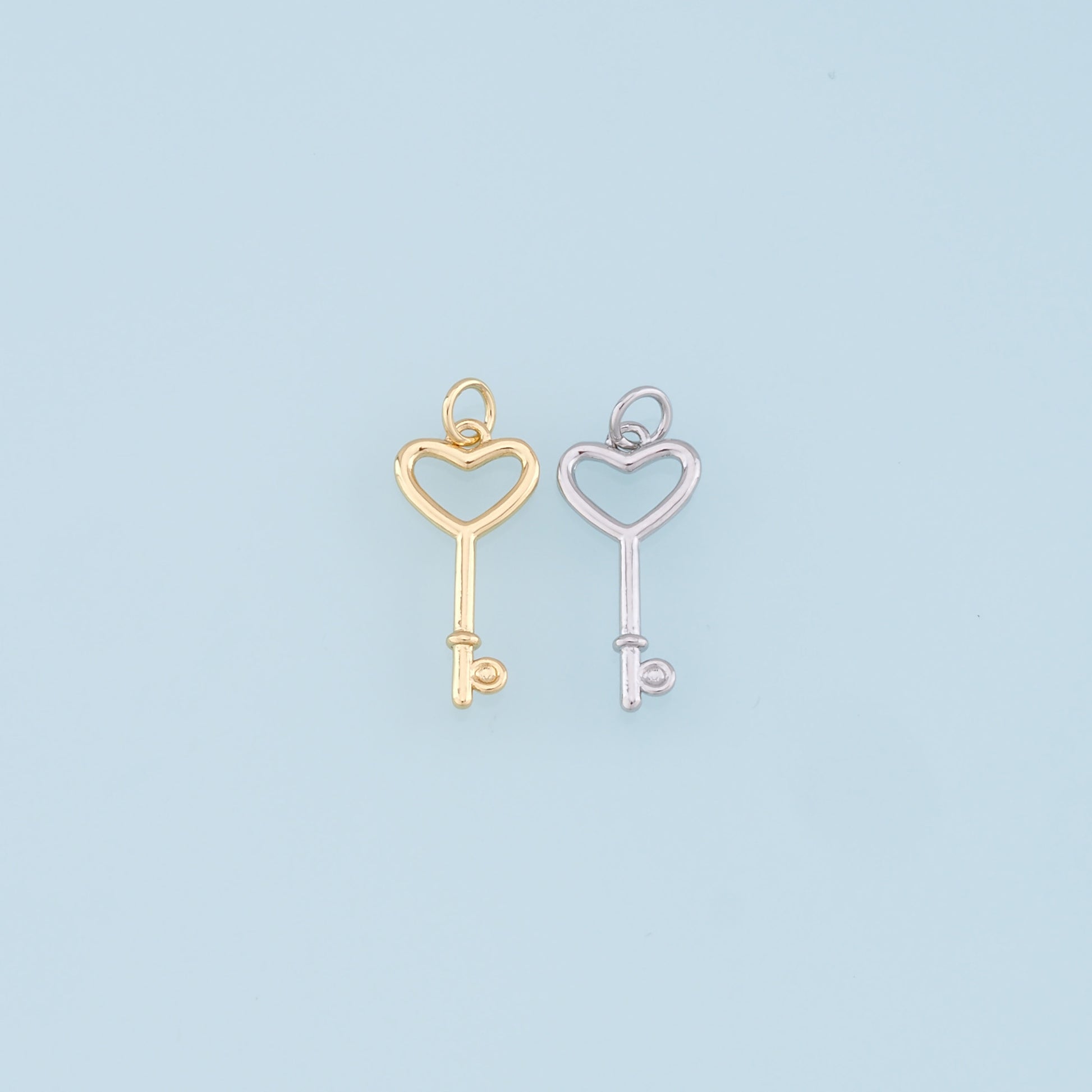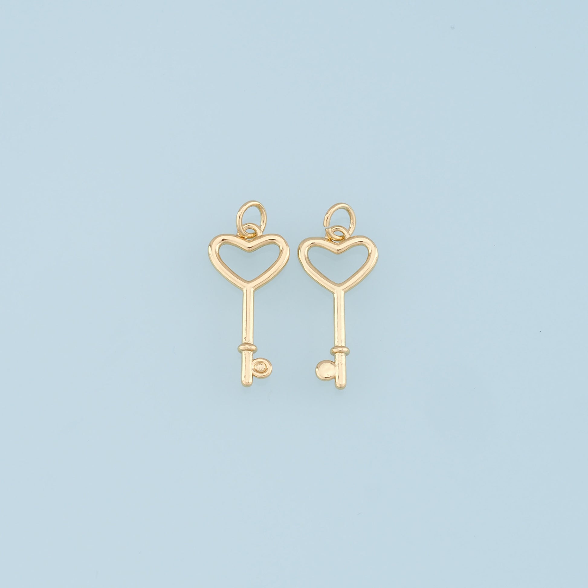 Gold Heart Key Charms,18K Gold Filled Key Pendant,Key Charm Bracelet Necklace for DIY Jewelry Making Supply