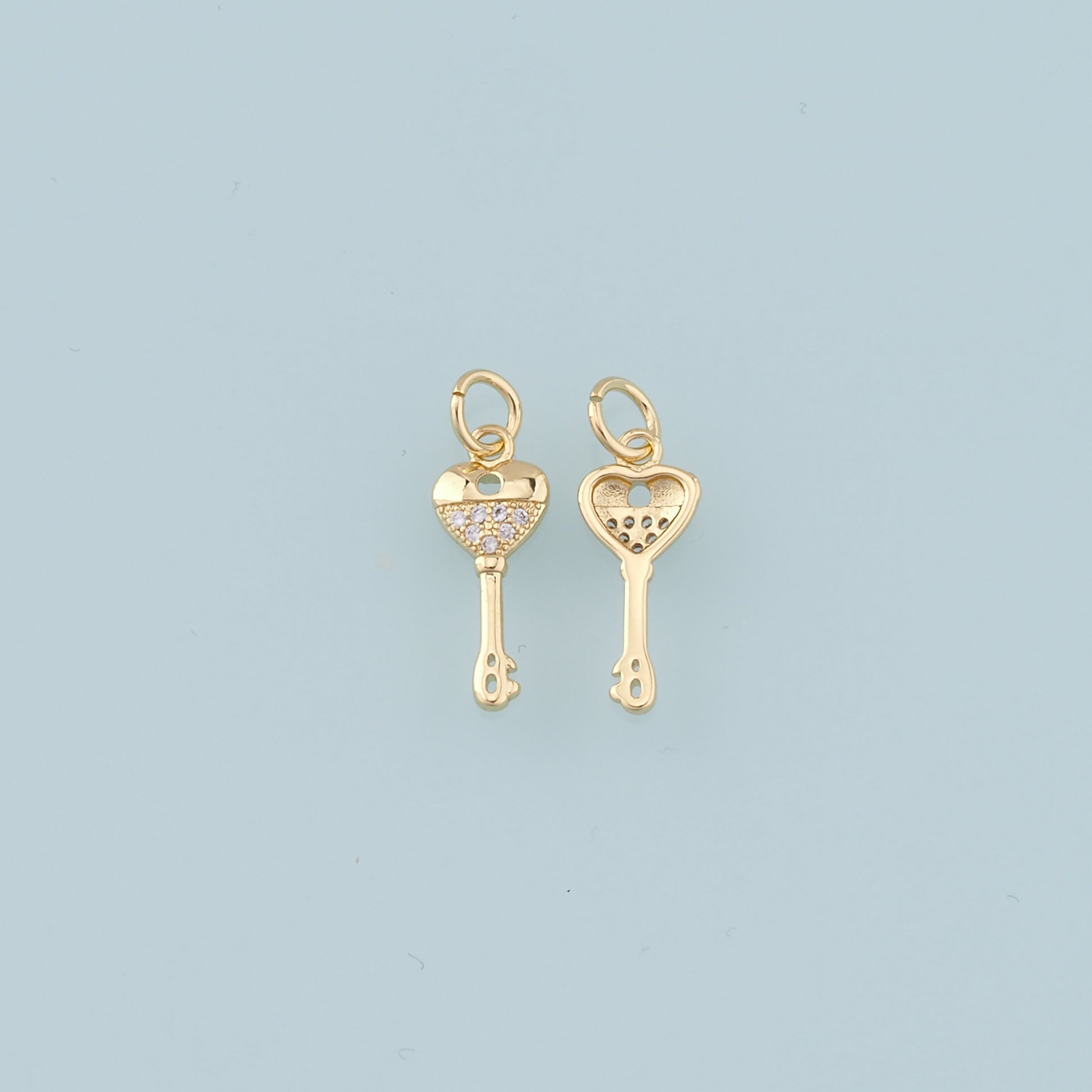 Gold Heart Key Charms,18K Gold Filled Key Pendant,Key Charm Bracelet Necklace for DIY Jewelry Making Supply