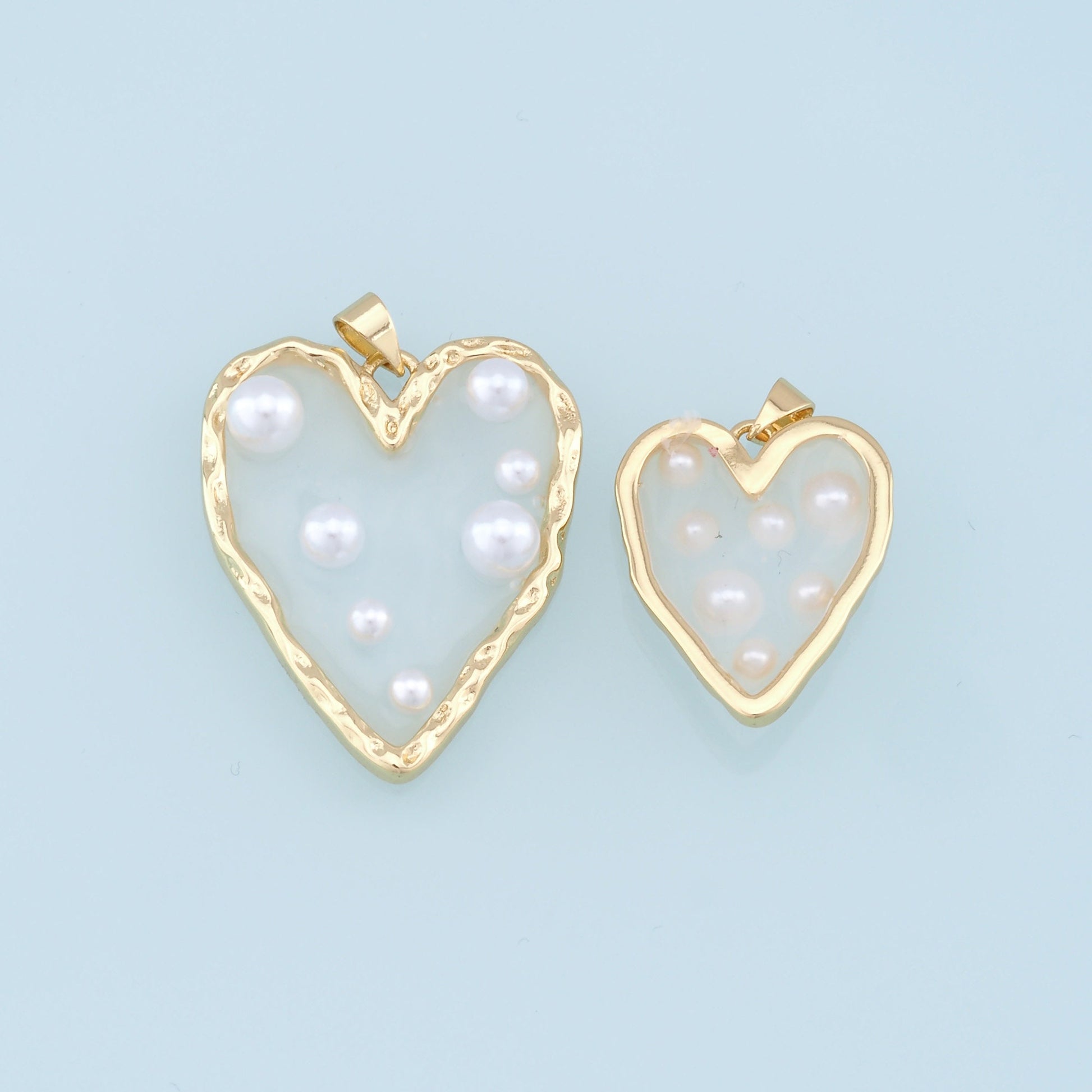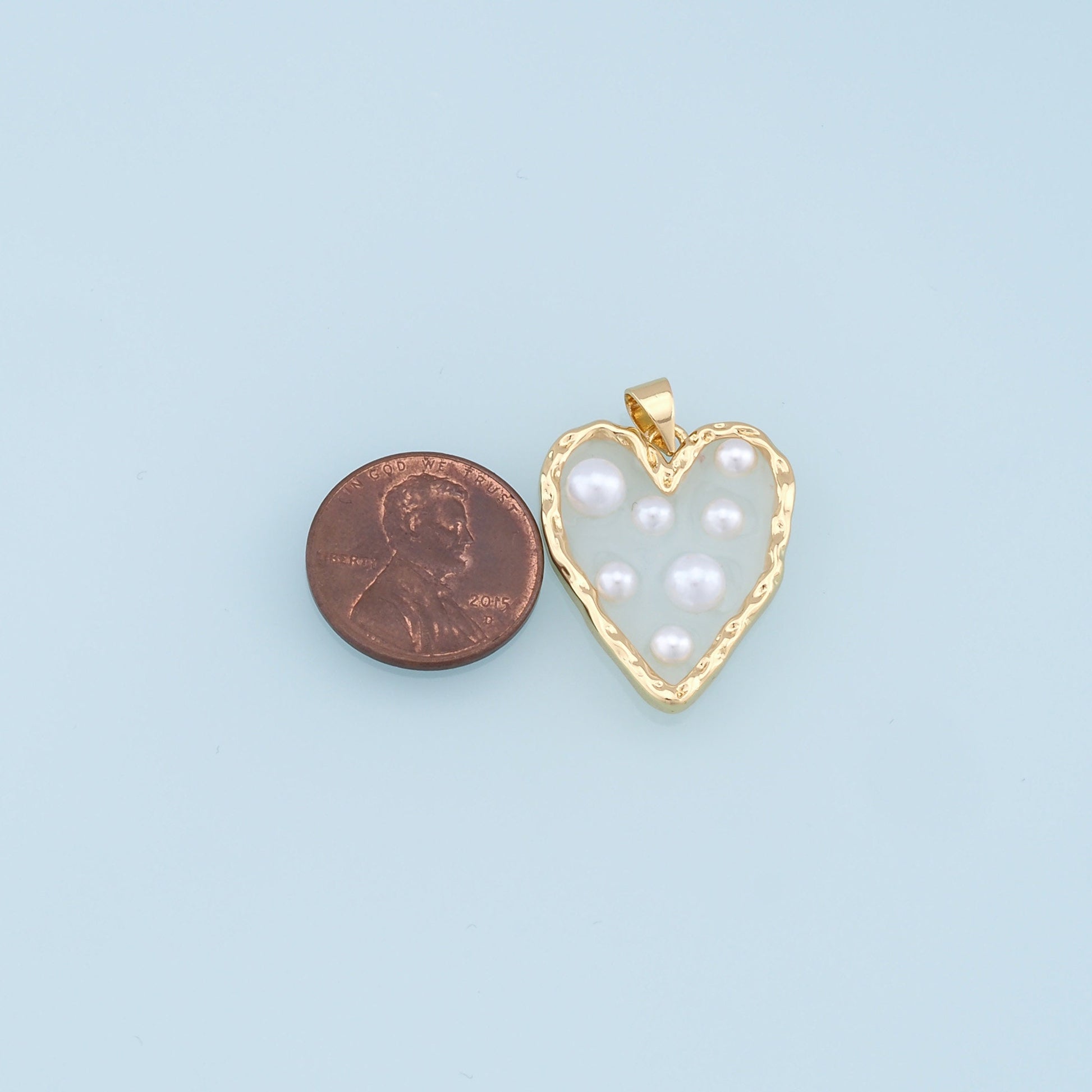 Gold Heart Pearl Charms,18K Gold Filled Clear Enamel Heart Pendant,Heart Charm Bracelet Necklace for DIY Jewelry Making Supply