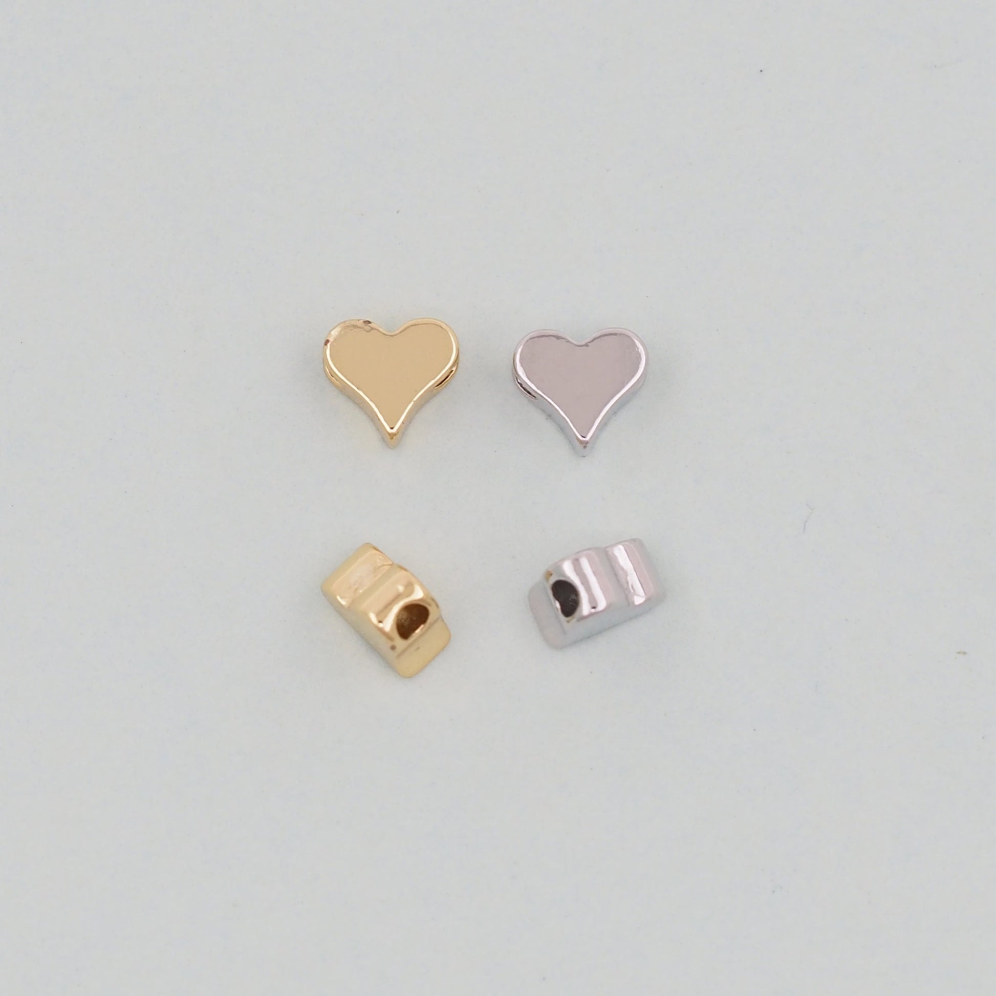Gold Heart Spacer Beads Charms,18K Gold Filled Heart Bracelet Necklace for DIY Jewelry Making Supply hole 2mm