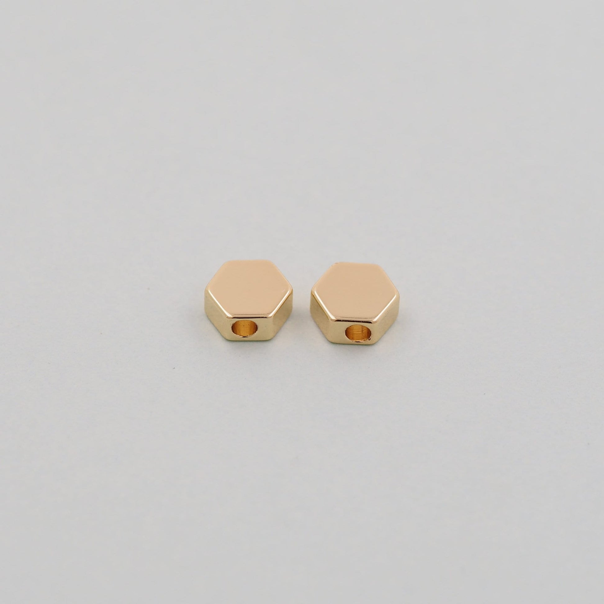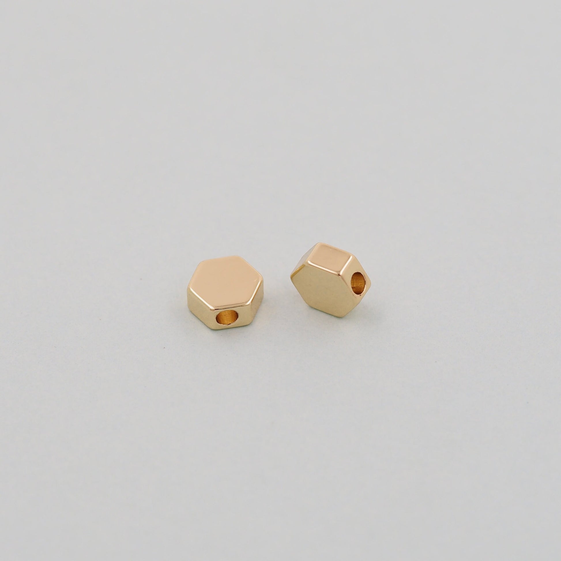 Gold Hexagon Beads Charms,18K Gold Filled Hexagon Bracelet Necklace for DIY Jewelry Making Supply hole 1.5mm