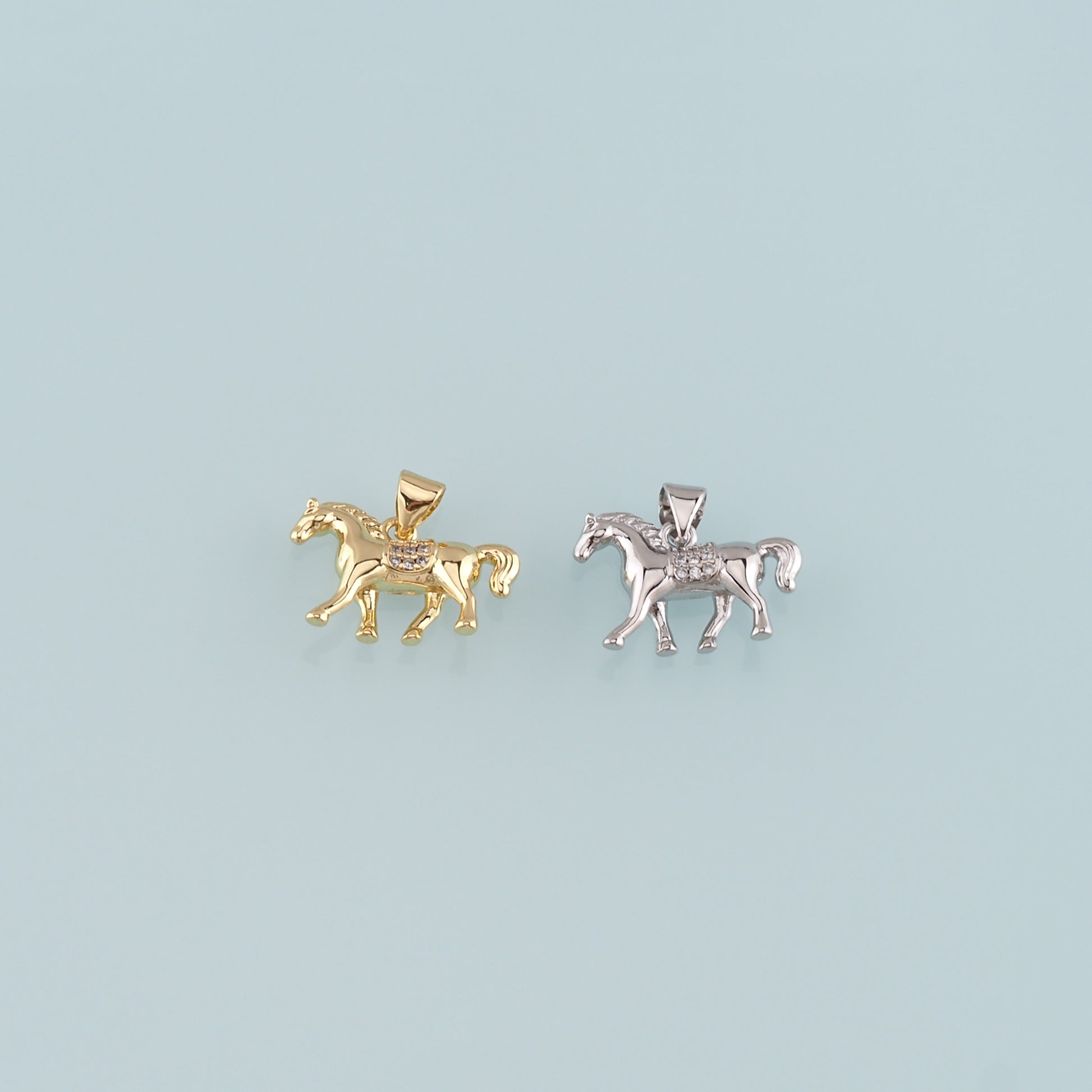 Gold Horse Charms,18K Gold Filled Horse Pendant,CZ Micro Pave Animal Charm Bracelet Necklace for DIY Jewelry Making Supply