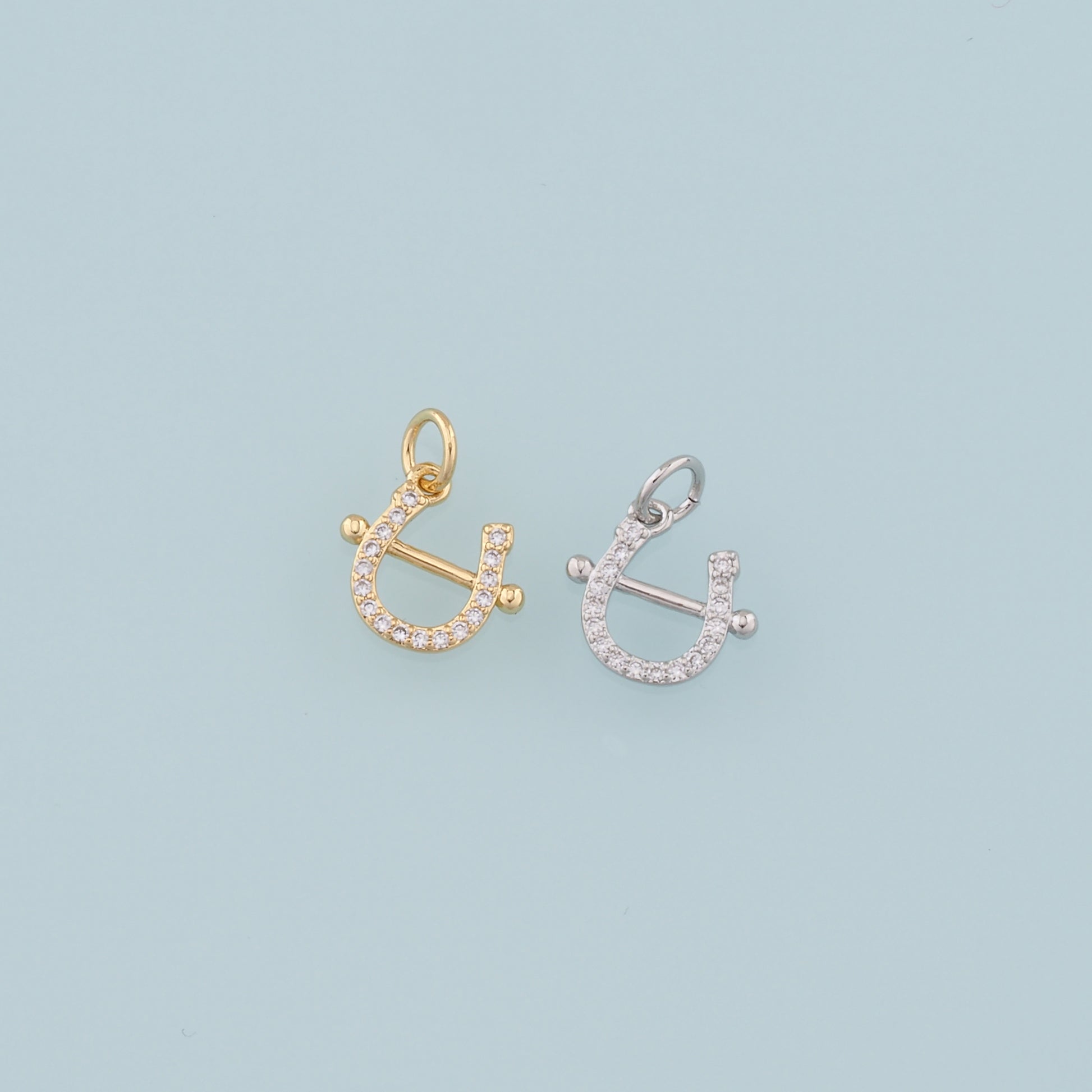 Gold Horseshoe Charms,18K Gold Filled CZ Horseshoe Pendant,Horseshoe Charm Bracelet Necklace for DIY Jewelry Making Supply