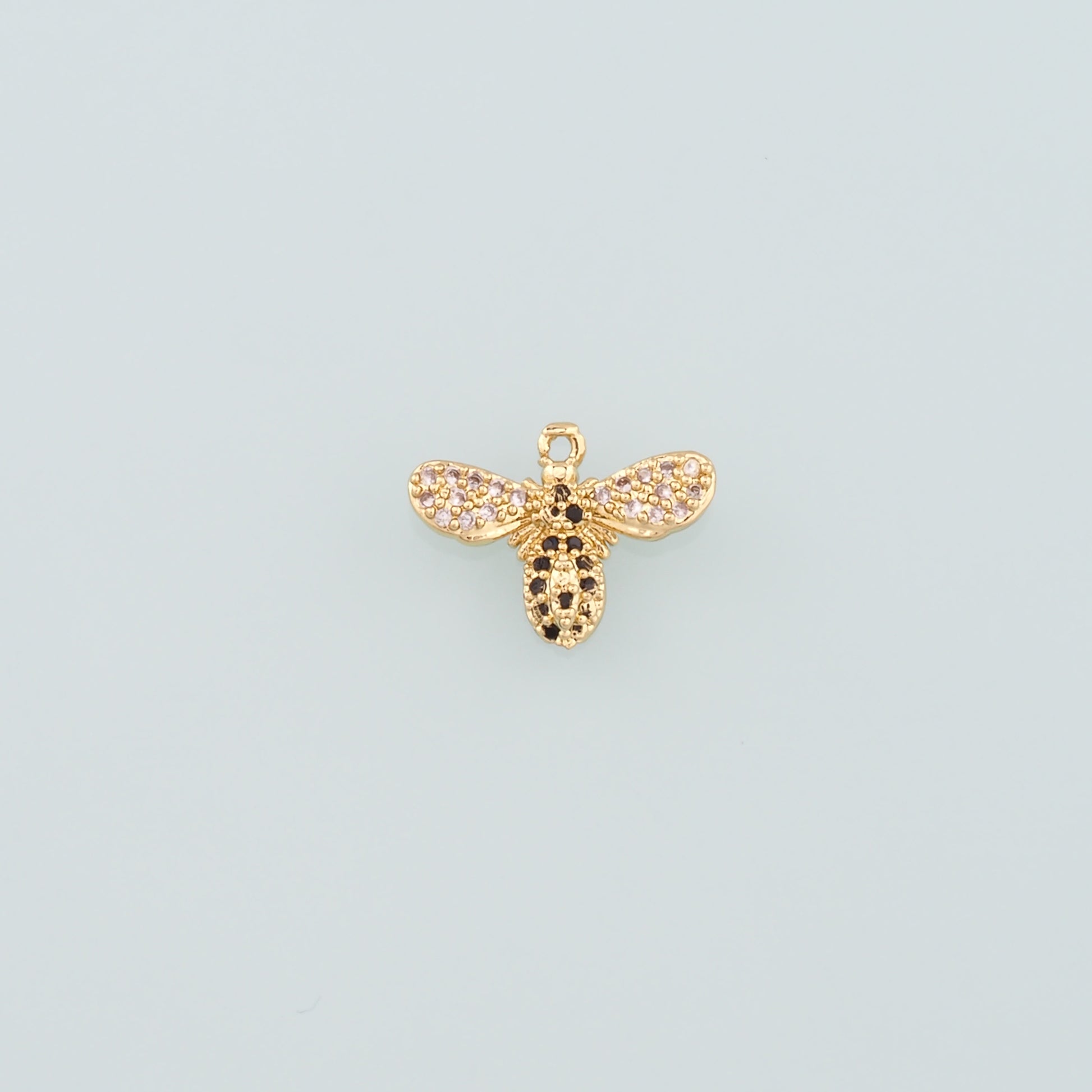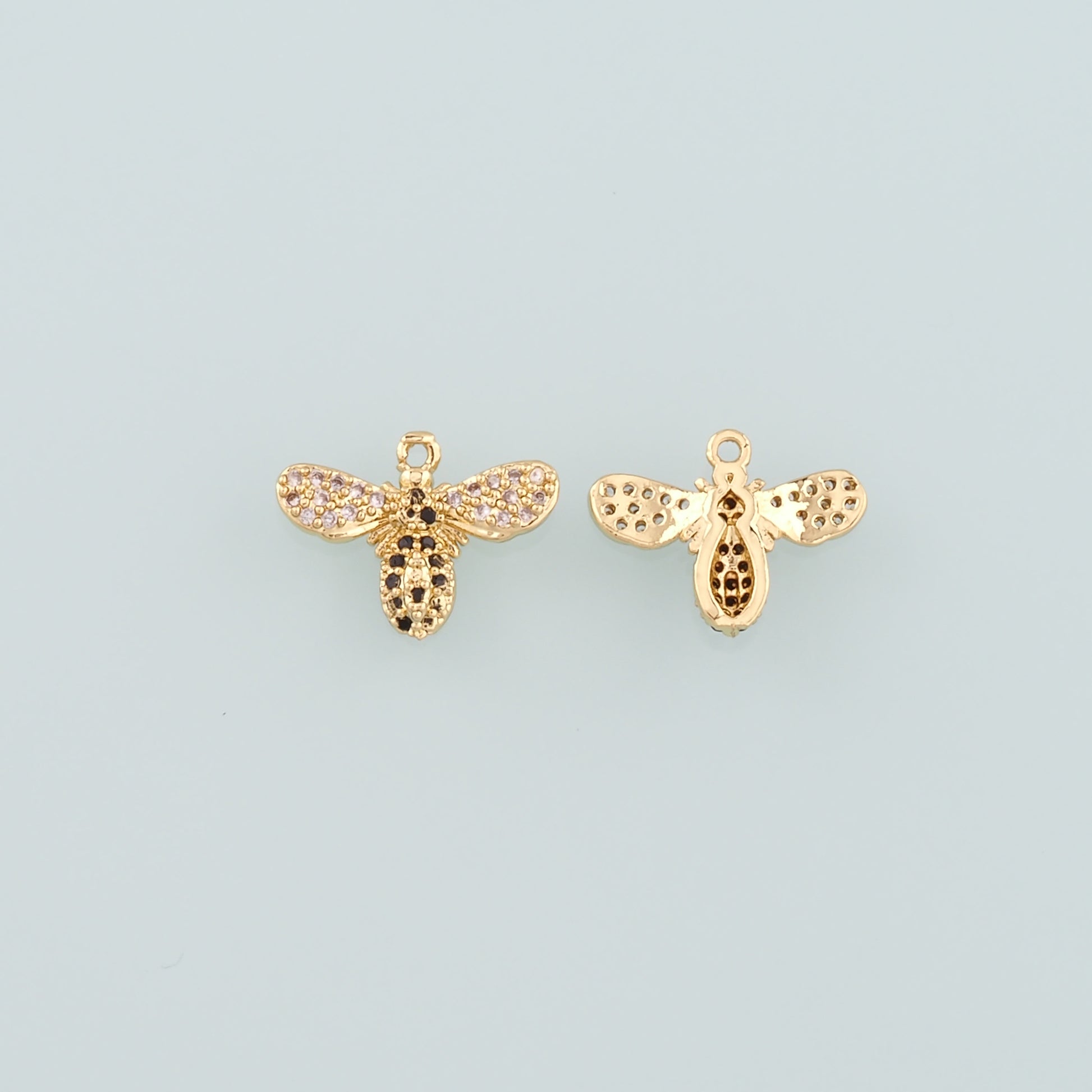 Gold Insect Charms,18K Gold Filled Bee Pendant,CZ Micro Pave Bee Charm Bracelet Necklace for DIY Jewelry Making Supply