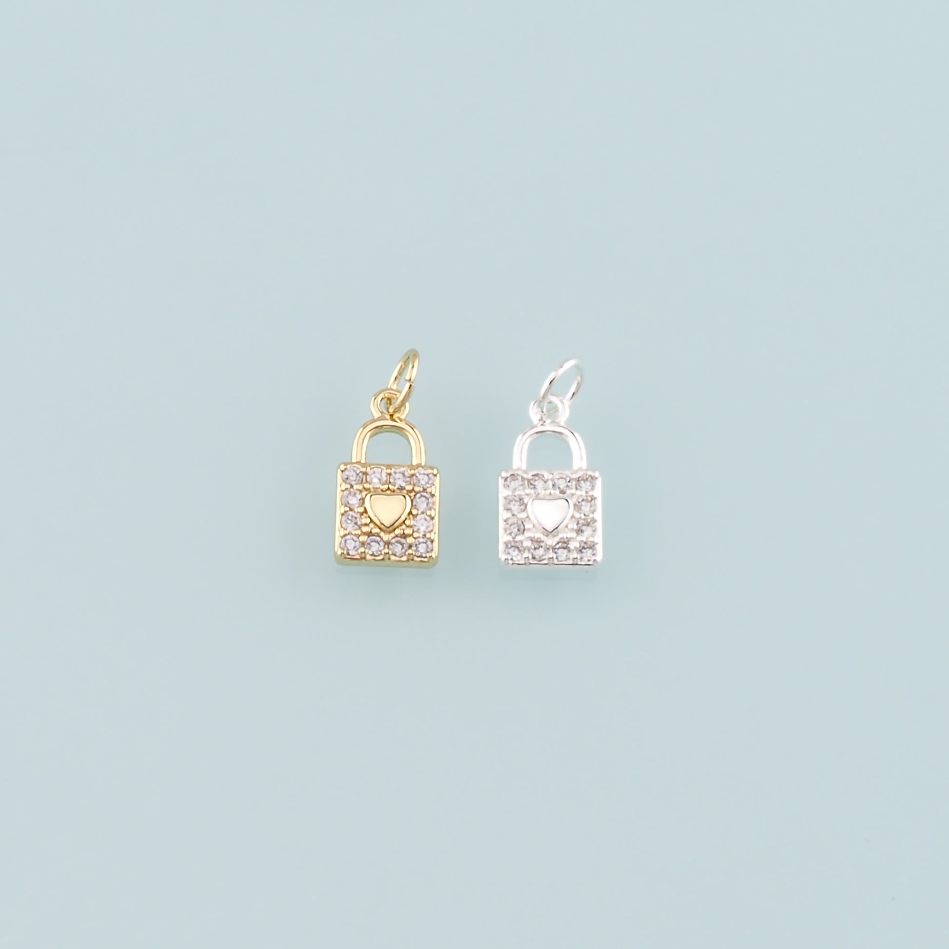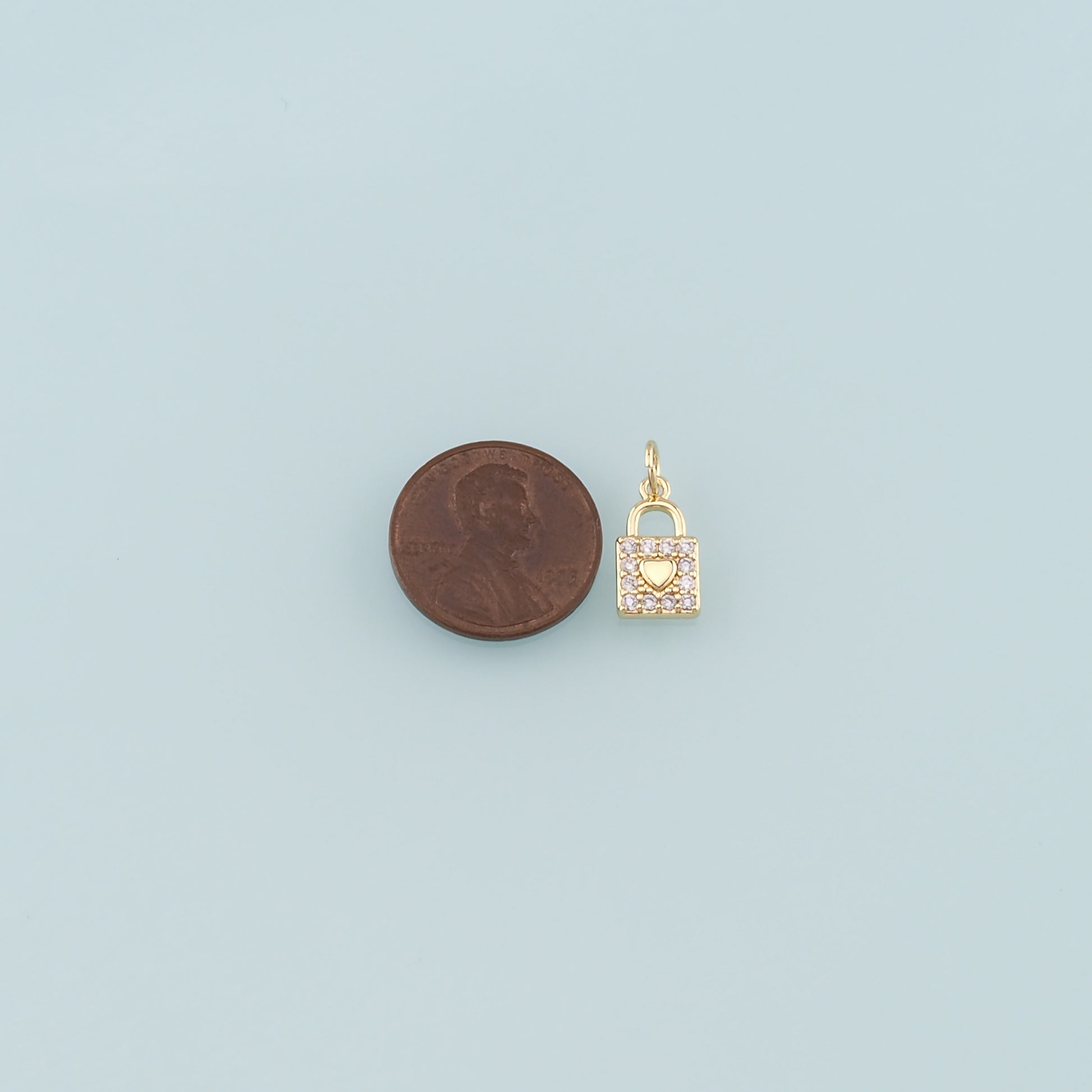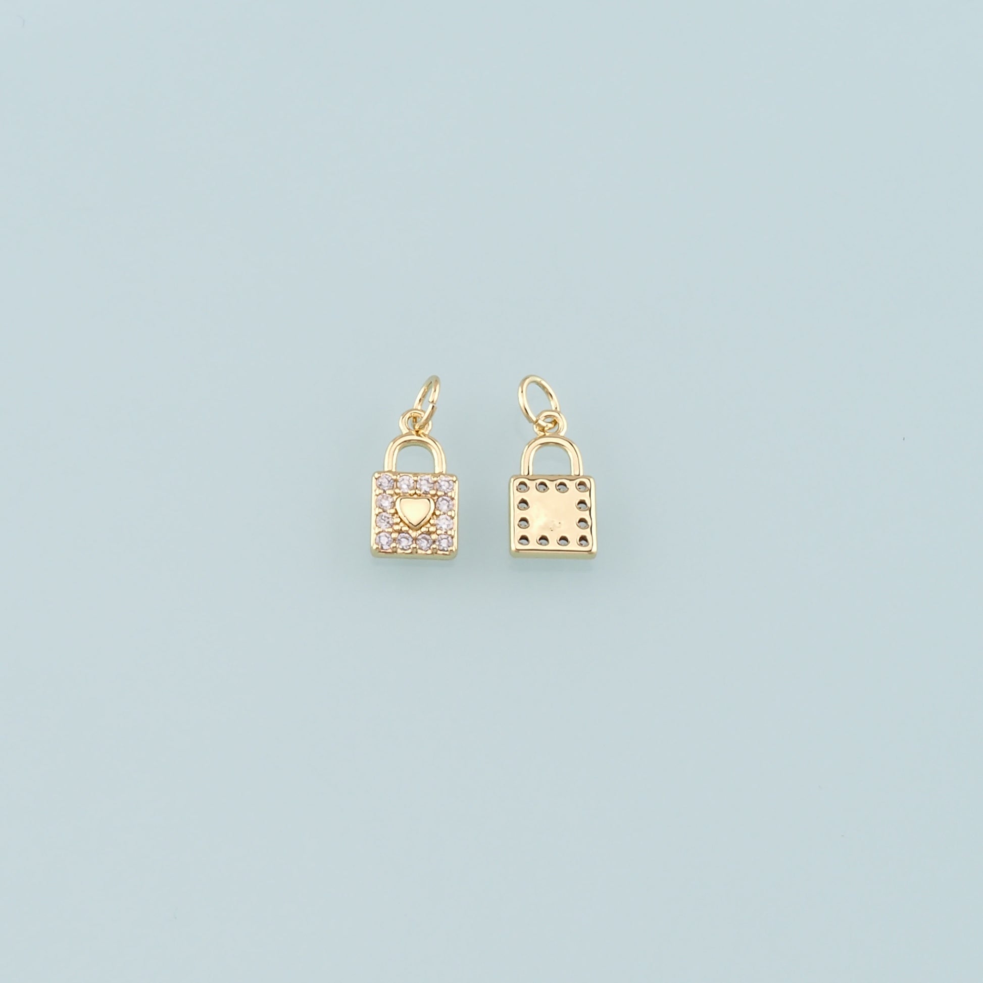 Gold Key Lock Charms,18K Gold Filled Lock Pendant,CZ Micro Pave Lock Charm Bracelet Necklace for DIY Jewelry Making Supply