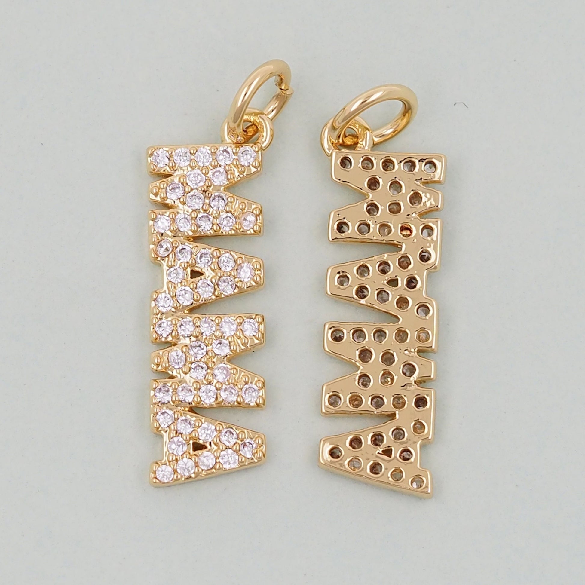 Gold letter Charms,18K Gold Fille Mama Pendant,Mama Charm Bracelet Necklace for DIY Jewelry Making Supply