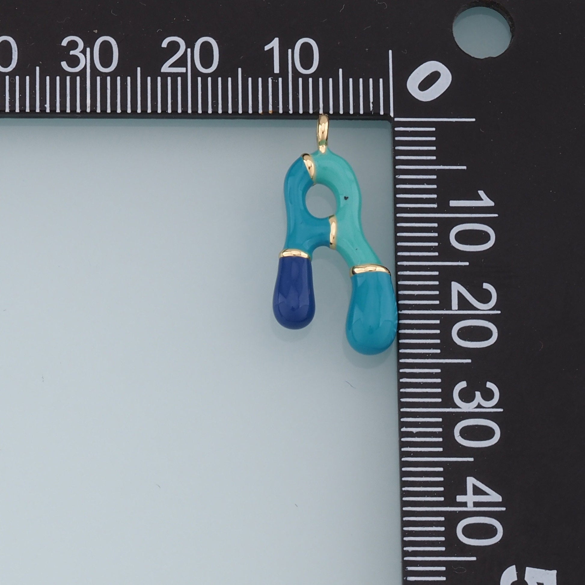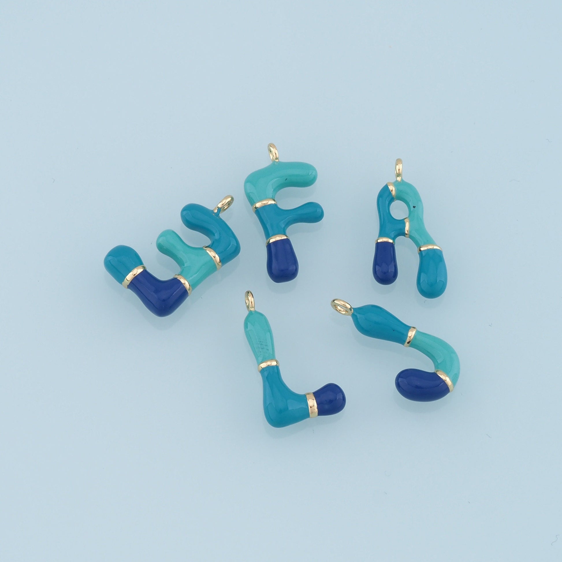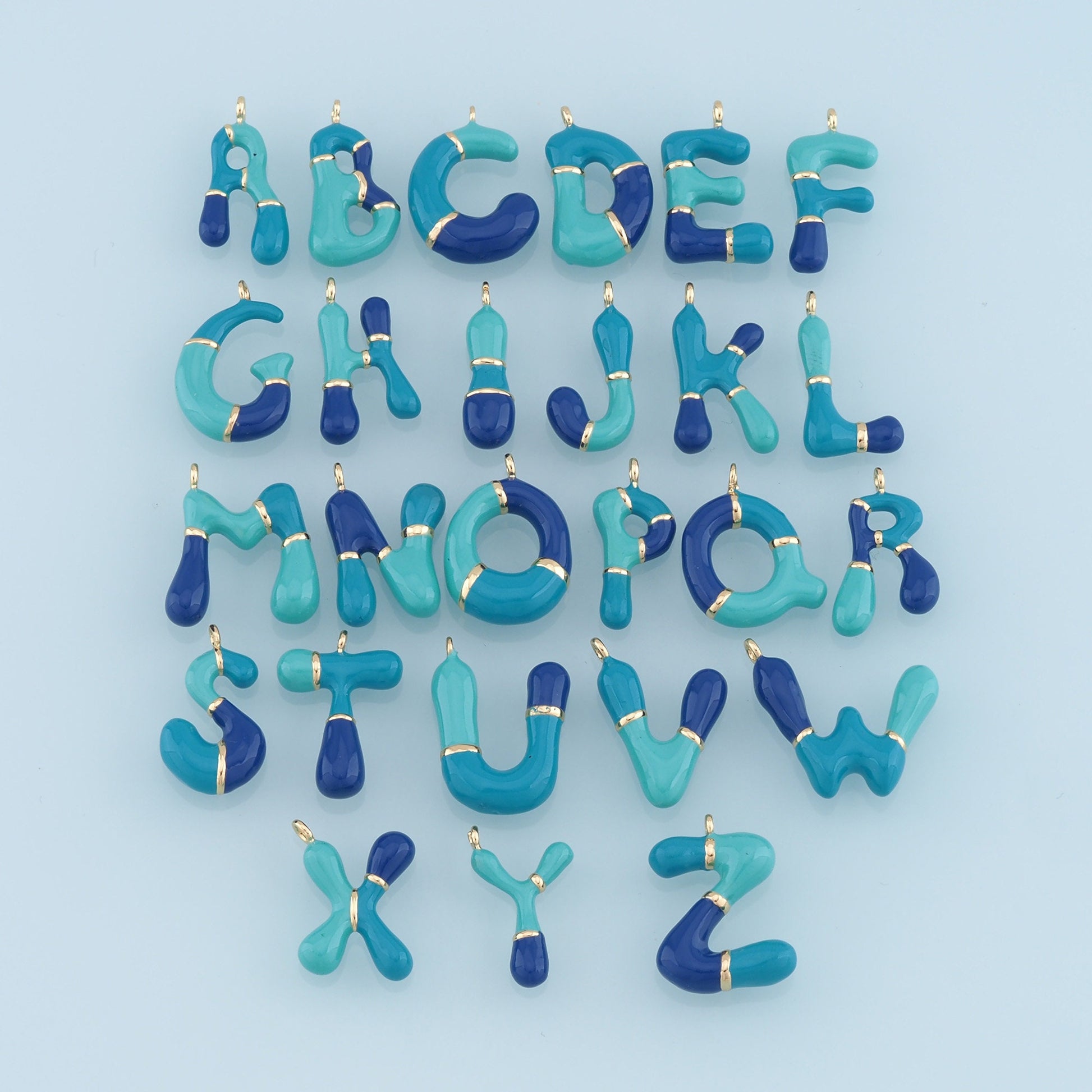 Gold letter Charms,18K Gold Filled Enamel letter Pendant,Blue initial Charm Bracelet Necklace for DIY Jewelry Making Supply