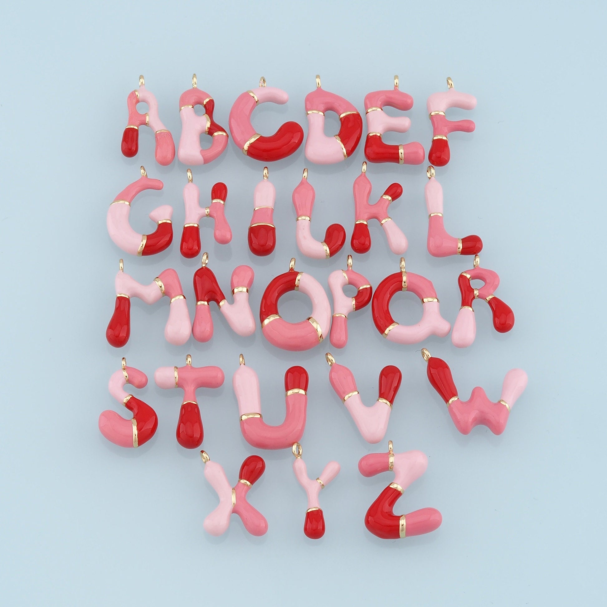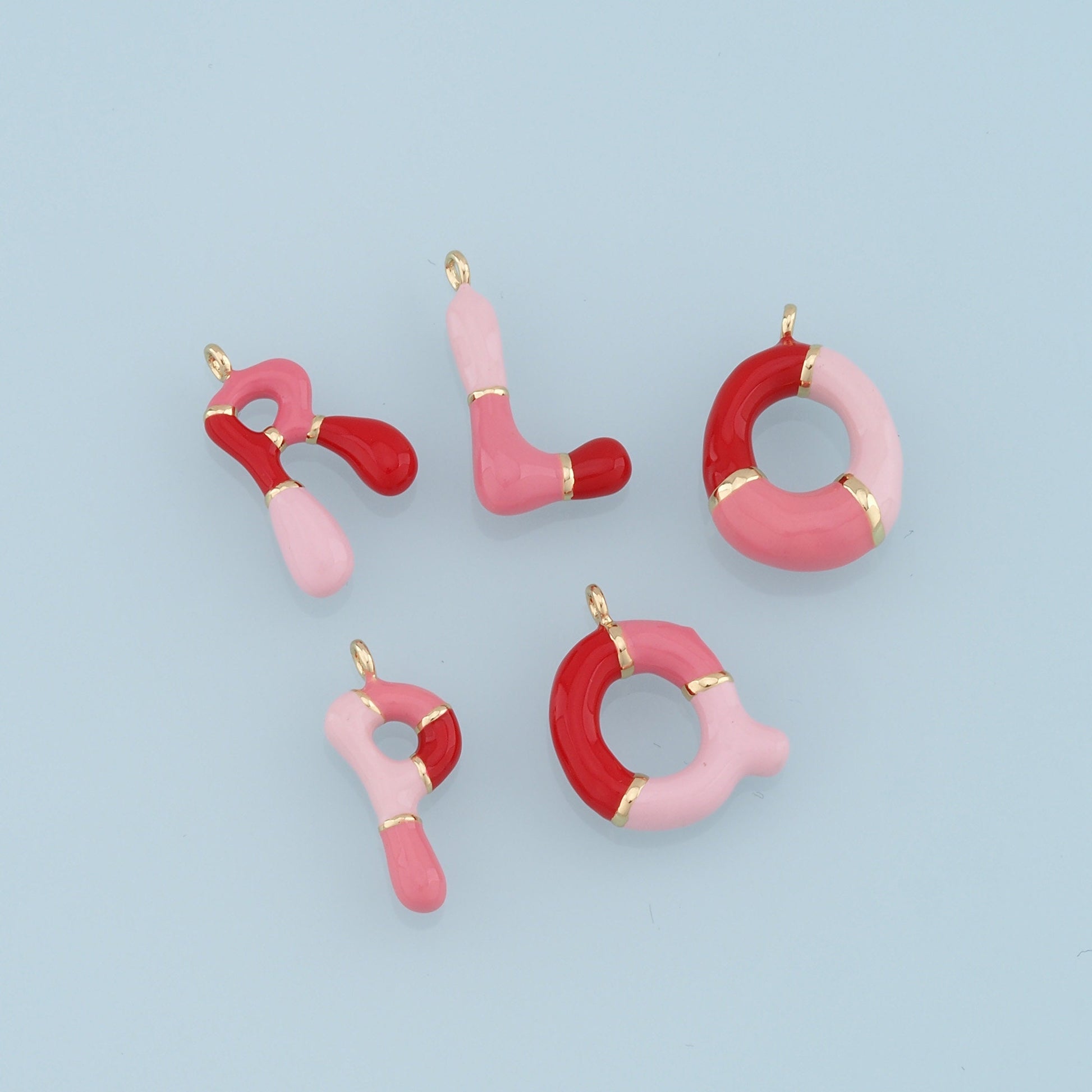 Gold letter Charms,18K Gold Filled Enamel letter Pendant,Pink initial Charm Bracelet Necklace for DIY Jewelry Making Supply