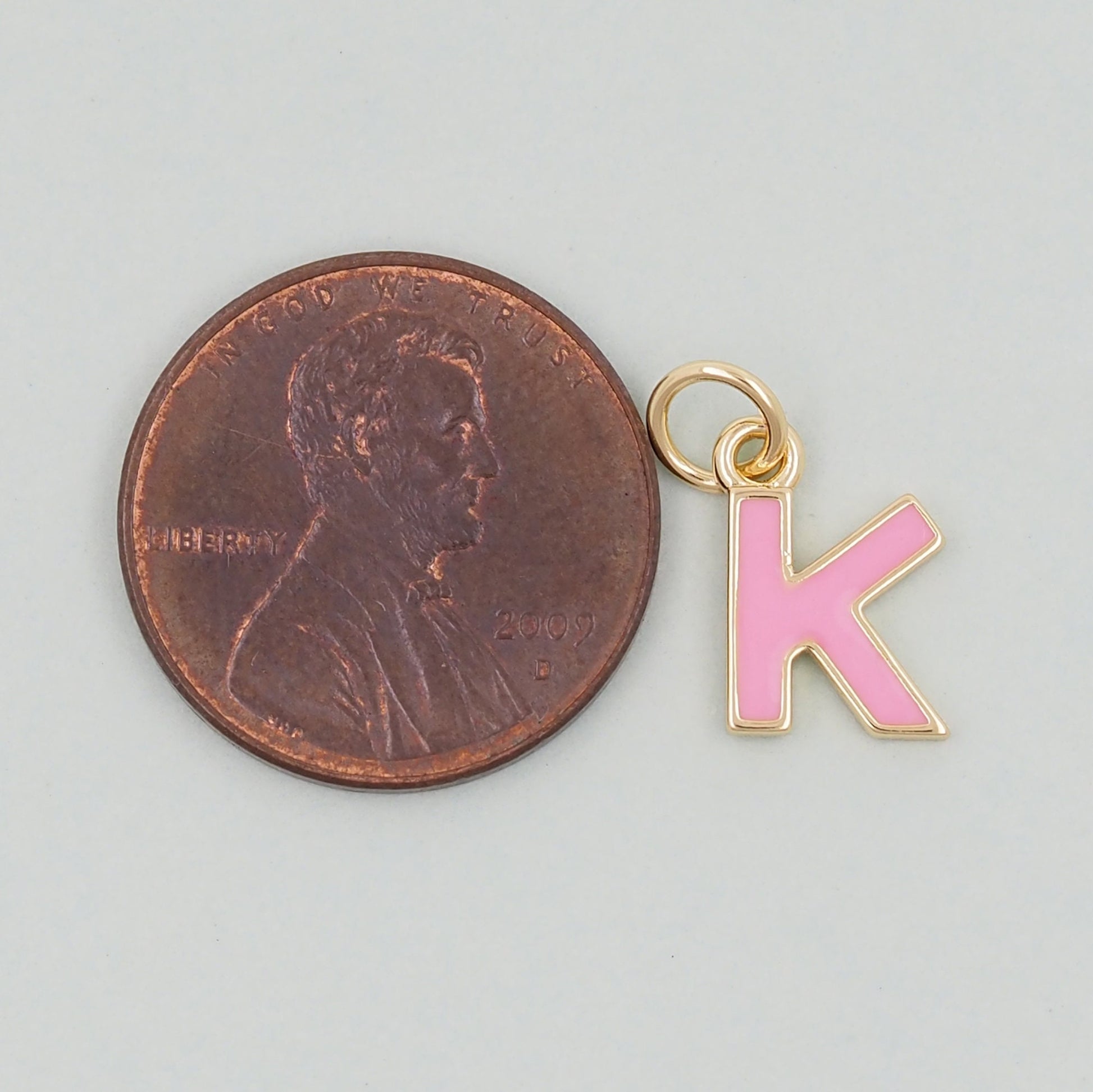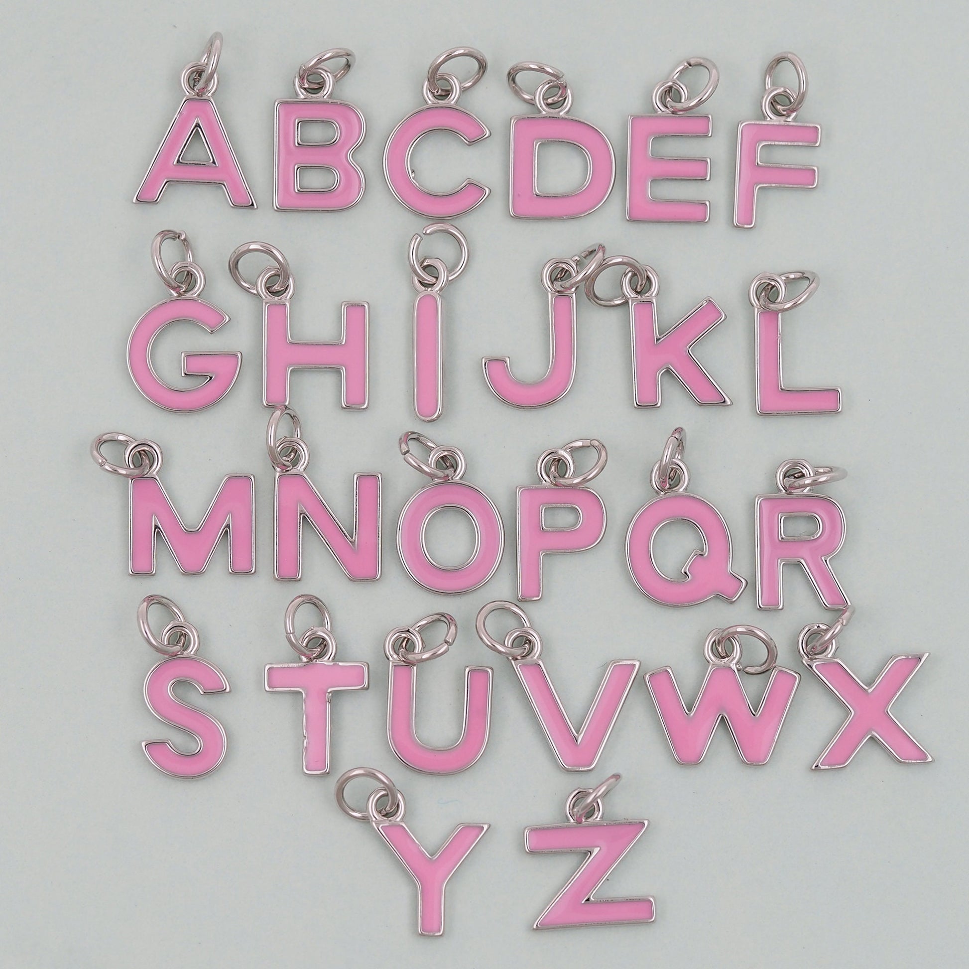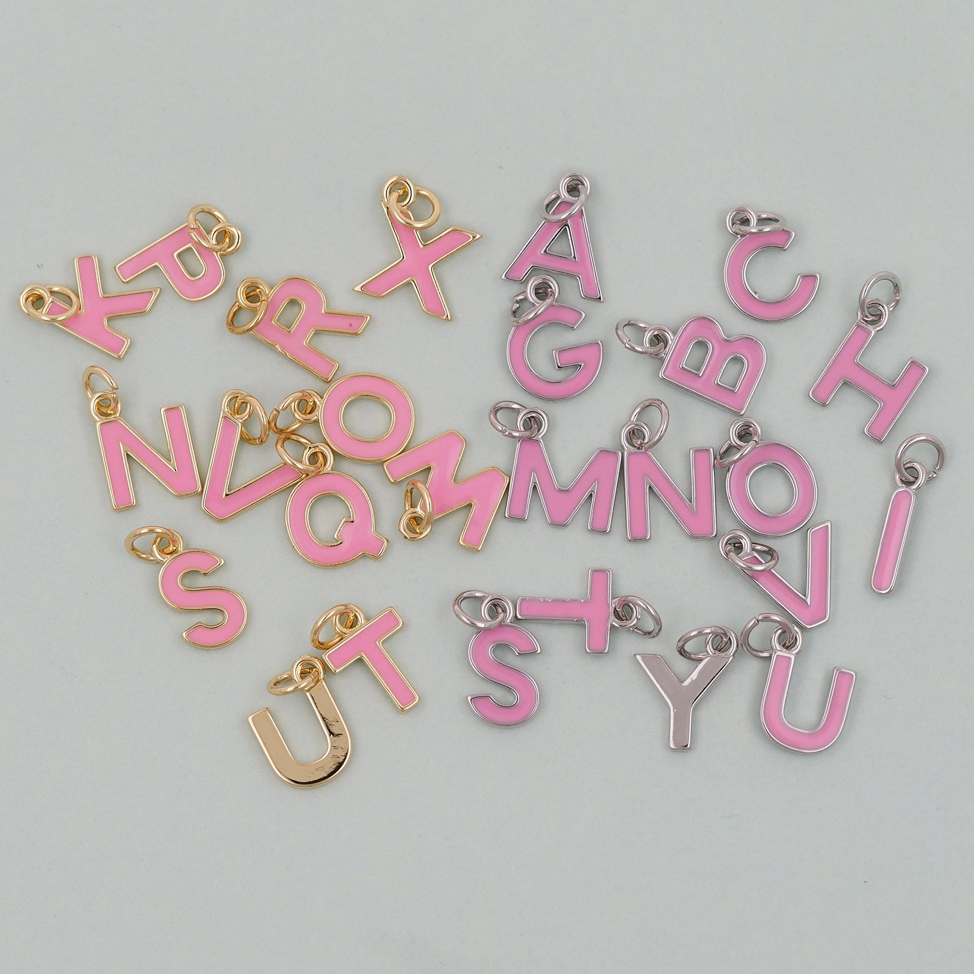 Gold letter Charms,18K Gold Filled letter Pendant,Pink enamel initial Charm Bracelet Necklace for DIY Jewelry Making Supply