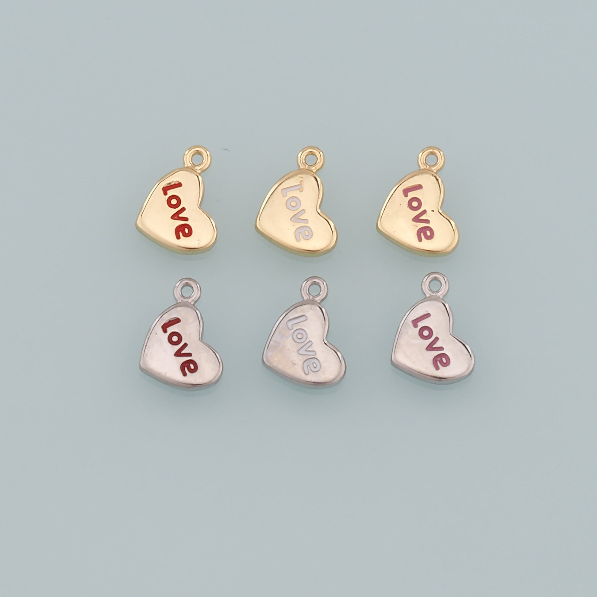 Gold Love Charms,18K Gold Filled Heart Pendant,Enamel Heart Charm Bracelet Necklace for DIY Jewelry Making Supply