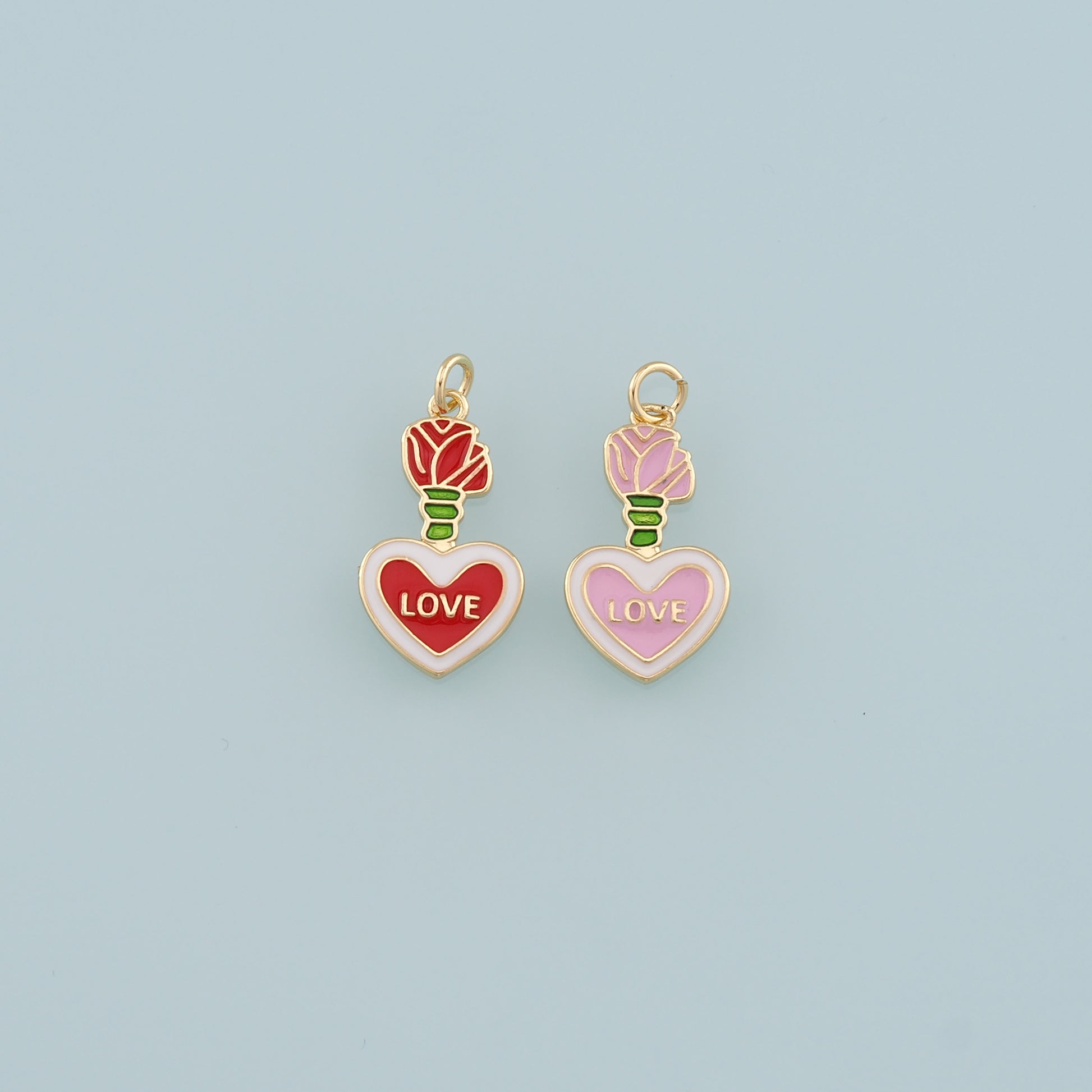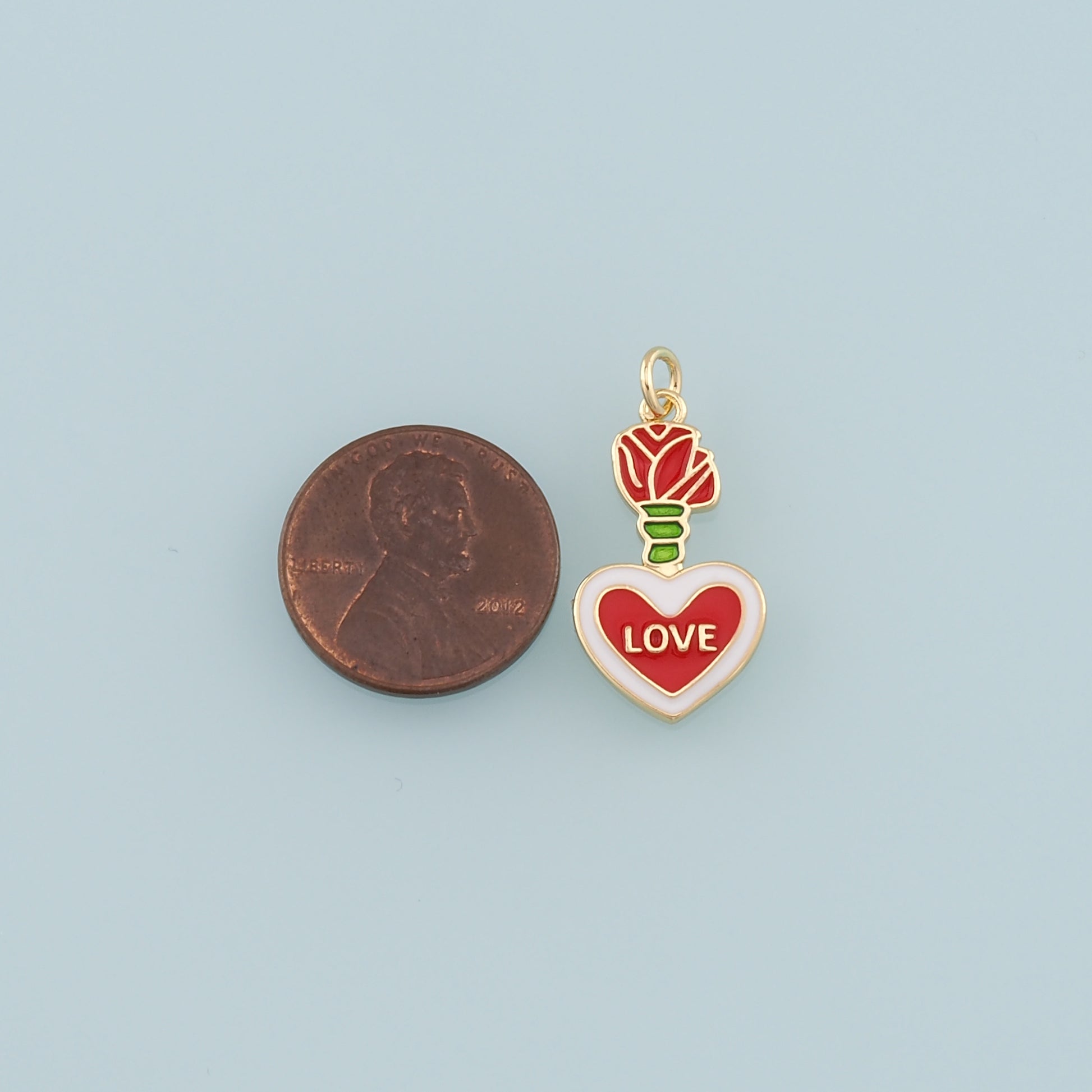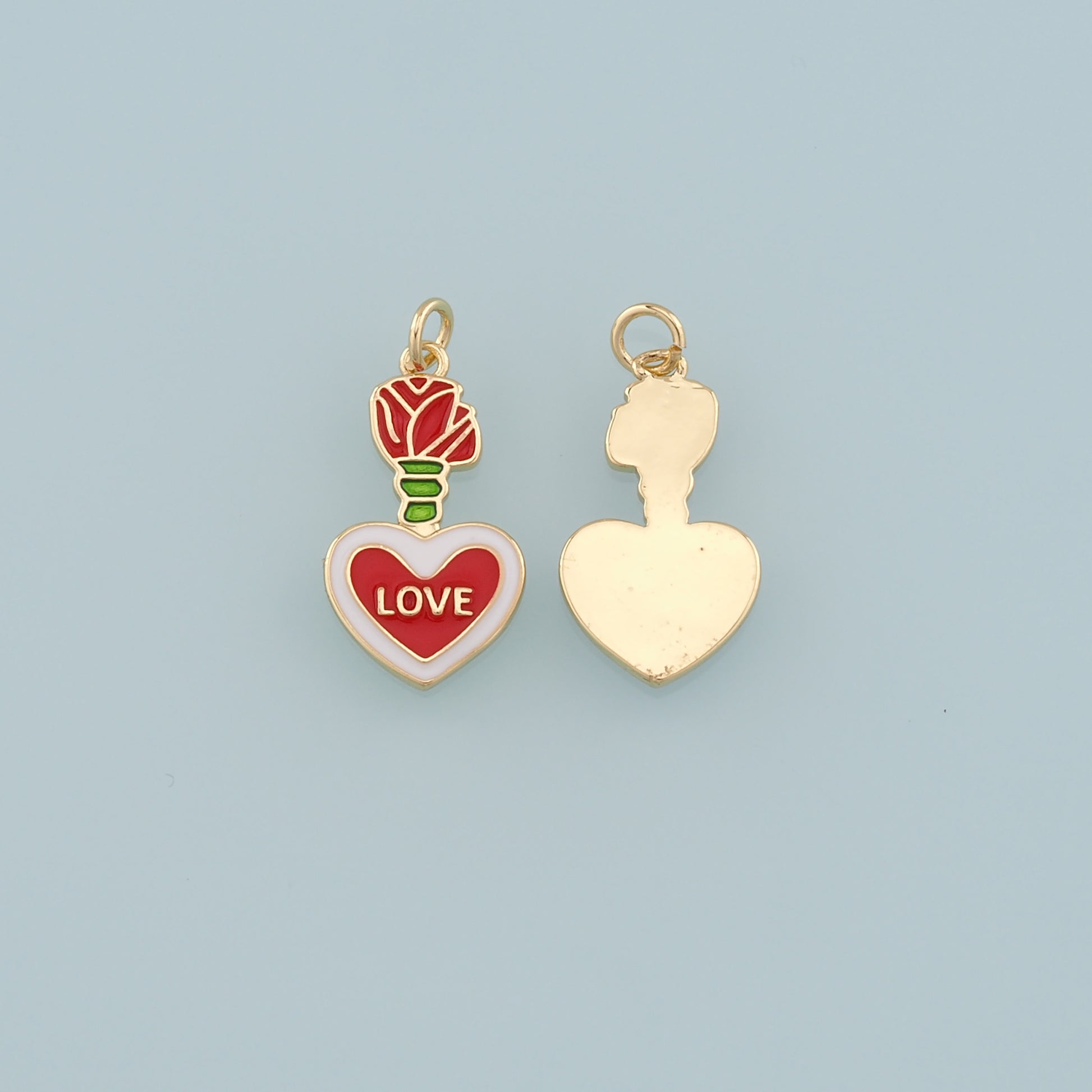 Gold Love Charms,18K Gold Filled Heart Pendant,Enamel Heart Charm Bracelet Necklace for DIY Jewelry Making Supply
