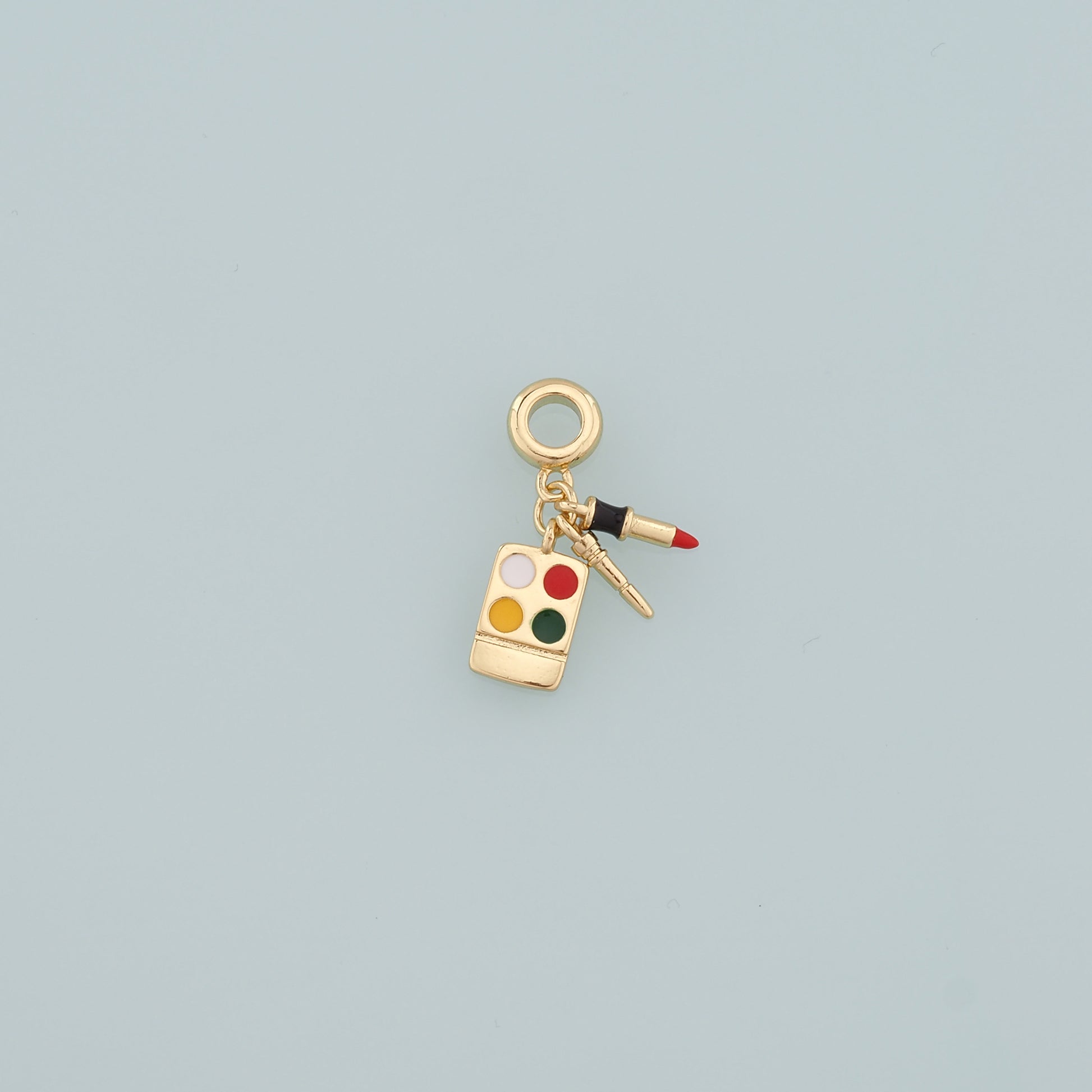 Gold Makeup Charms,18K Gold Filled Makeup Box Pendant,Enamel Lipstick Charm Bracelet Necklace for DIY Jewelry Making Supply