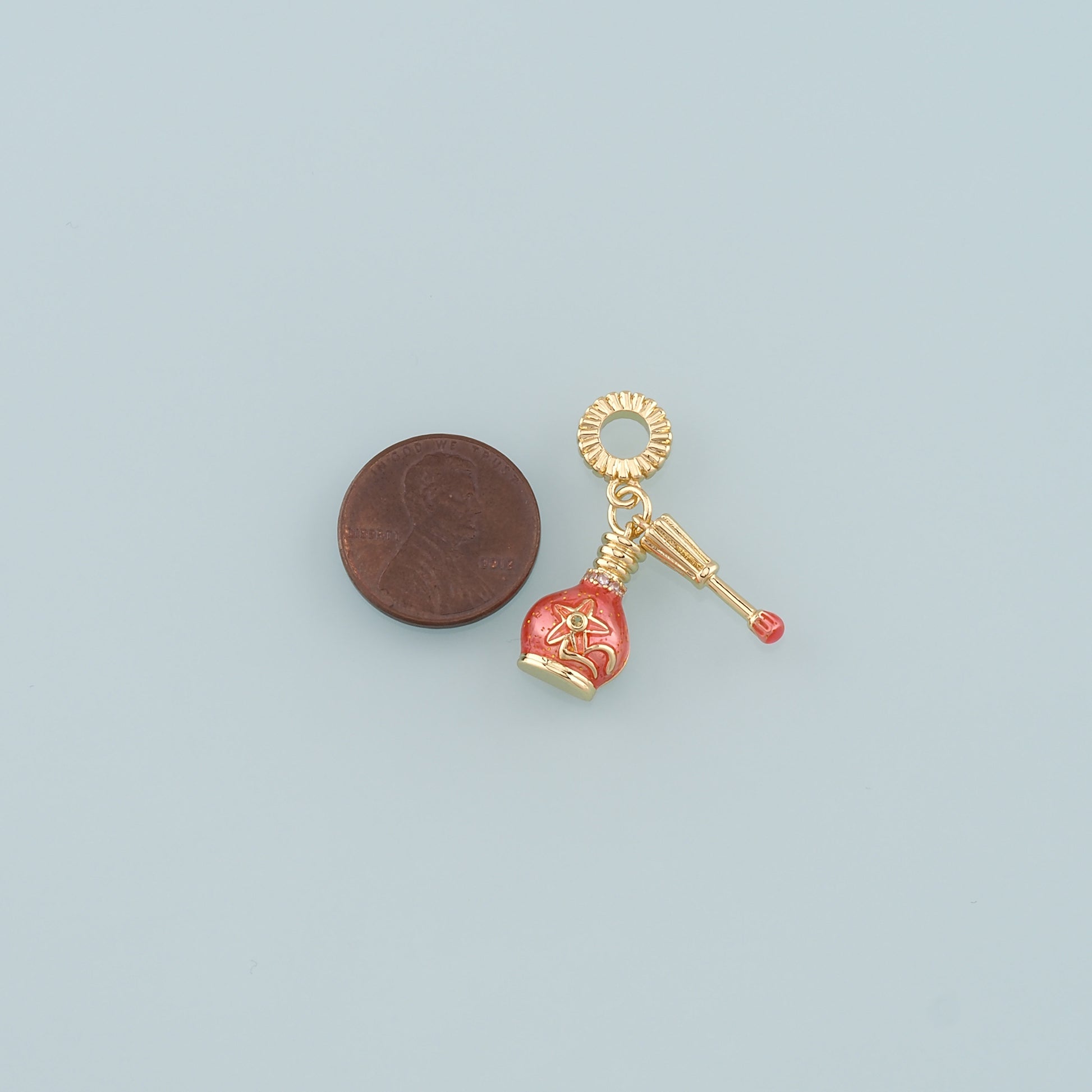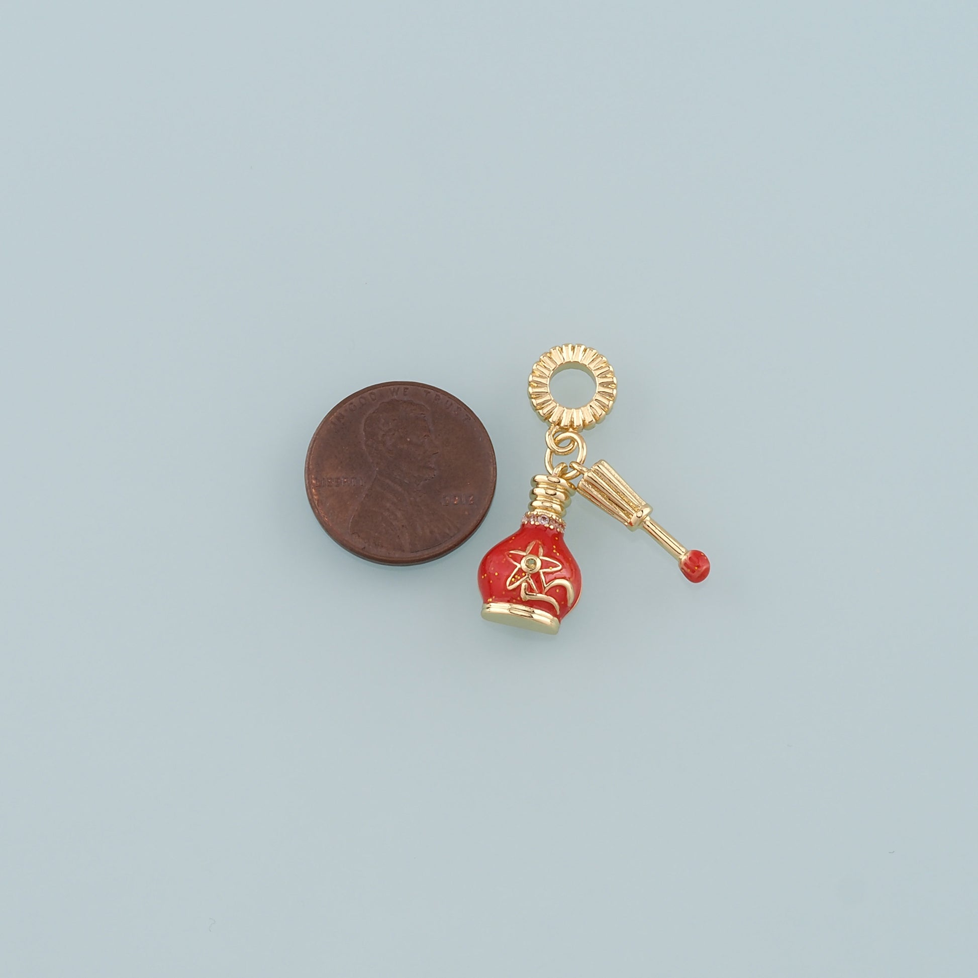 Gold Manicure Charms,18K Gold Filled Nail Polish Pendant,Enamel Nail Polish Charm Bracelet Necklace for DIY Jewelry Making Supply
