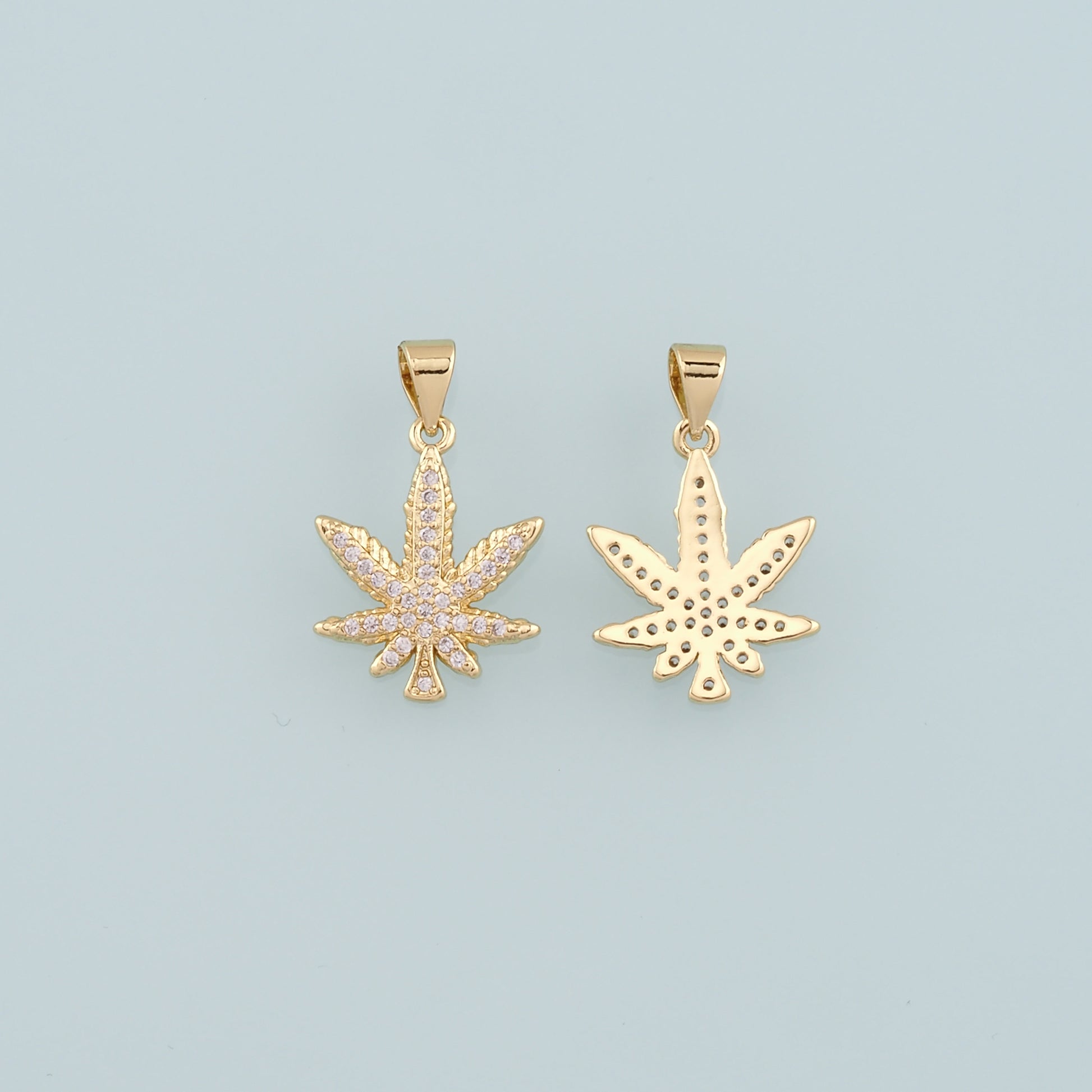 Gold Maple Leaf Charms,18K Gold Filled Maple Leaf Pendant,CZ Maple Leaf Charm Bracelet Necklace for DIY Jewelry Making Supply