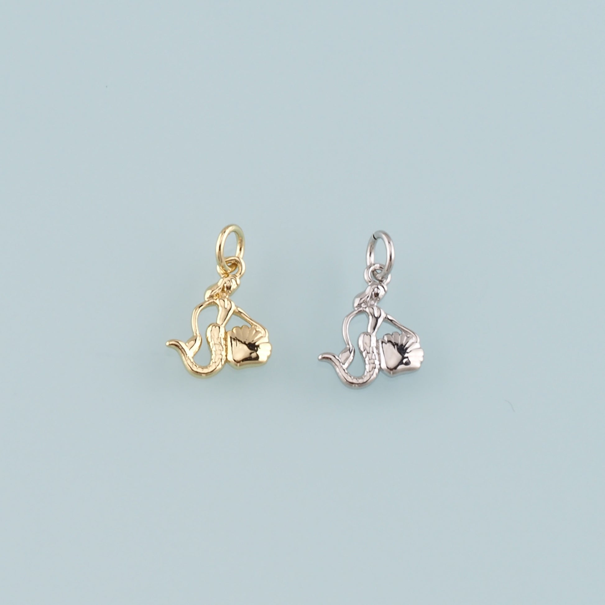 Gold Mermaid Charms,18K Gold Filled Mermaid Pendant,Mermaid Charm Bracelet Necklace for DIY Jewelry Making Supply