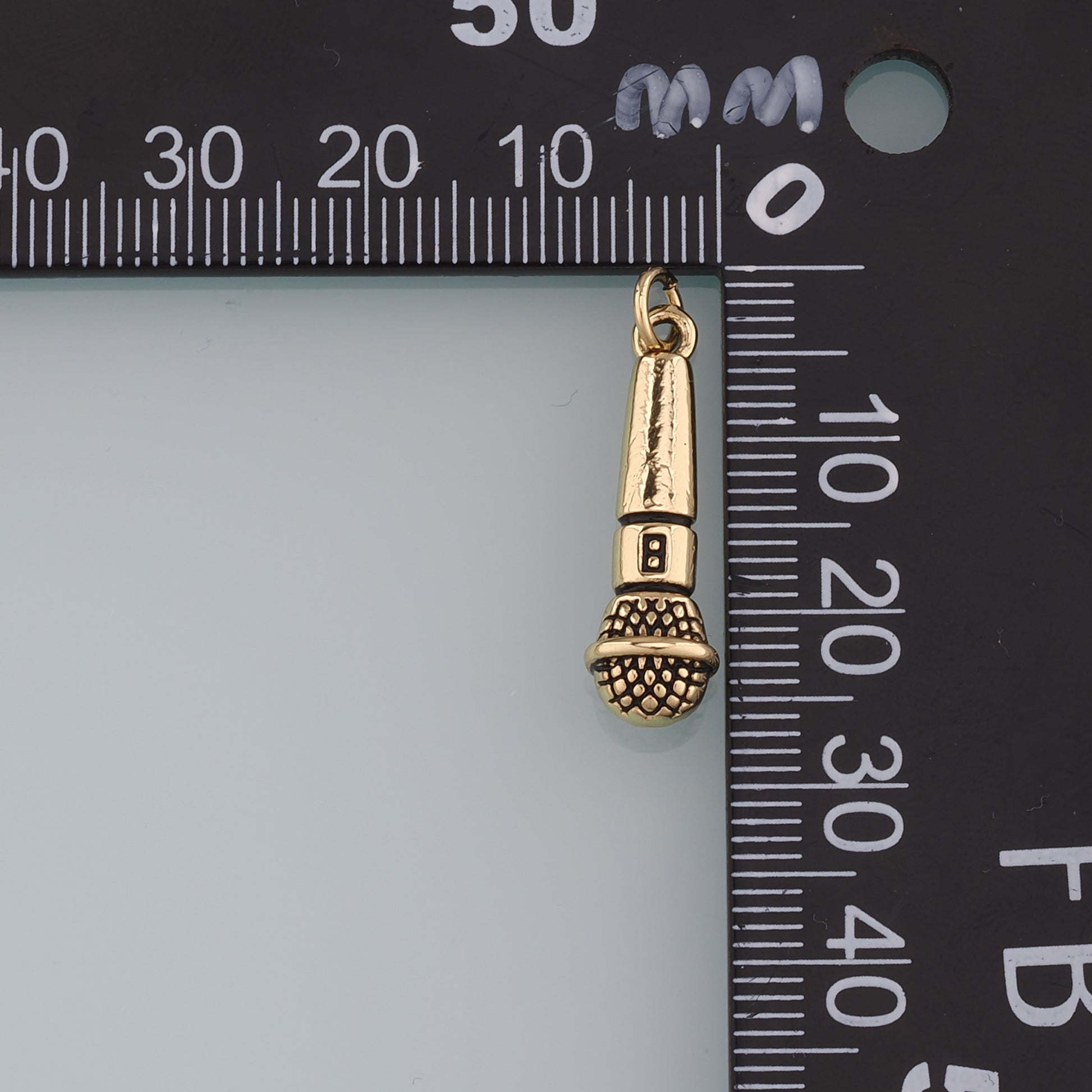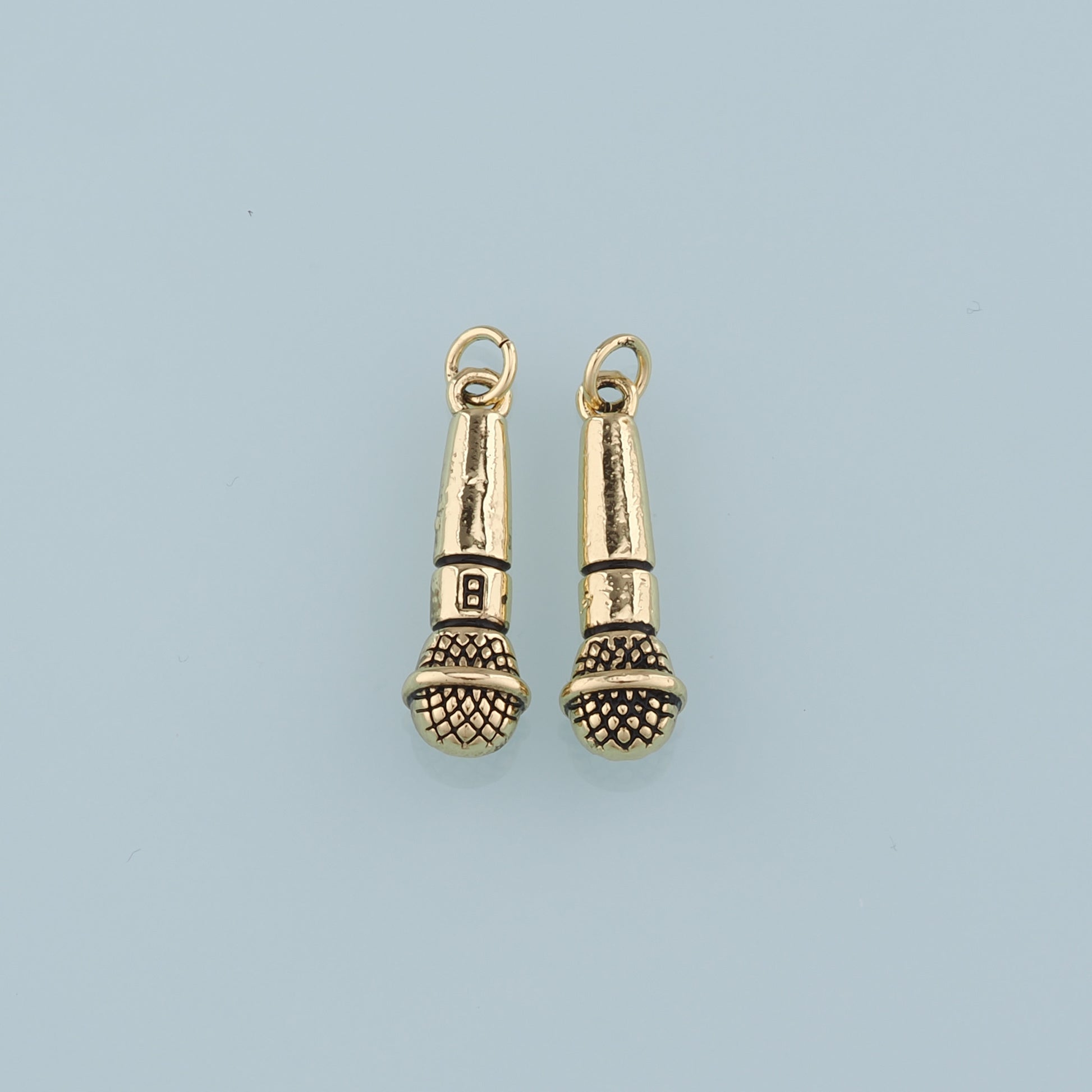 Gold Microphone Charms,18K Gold Filled Microphone Pendant,Microphone Charm Bracelet Necklace for DIY Jewelry Making Supply