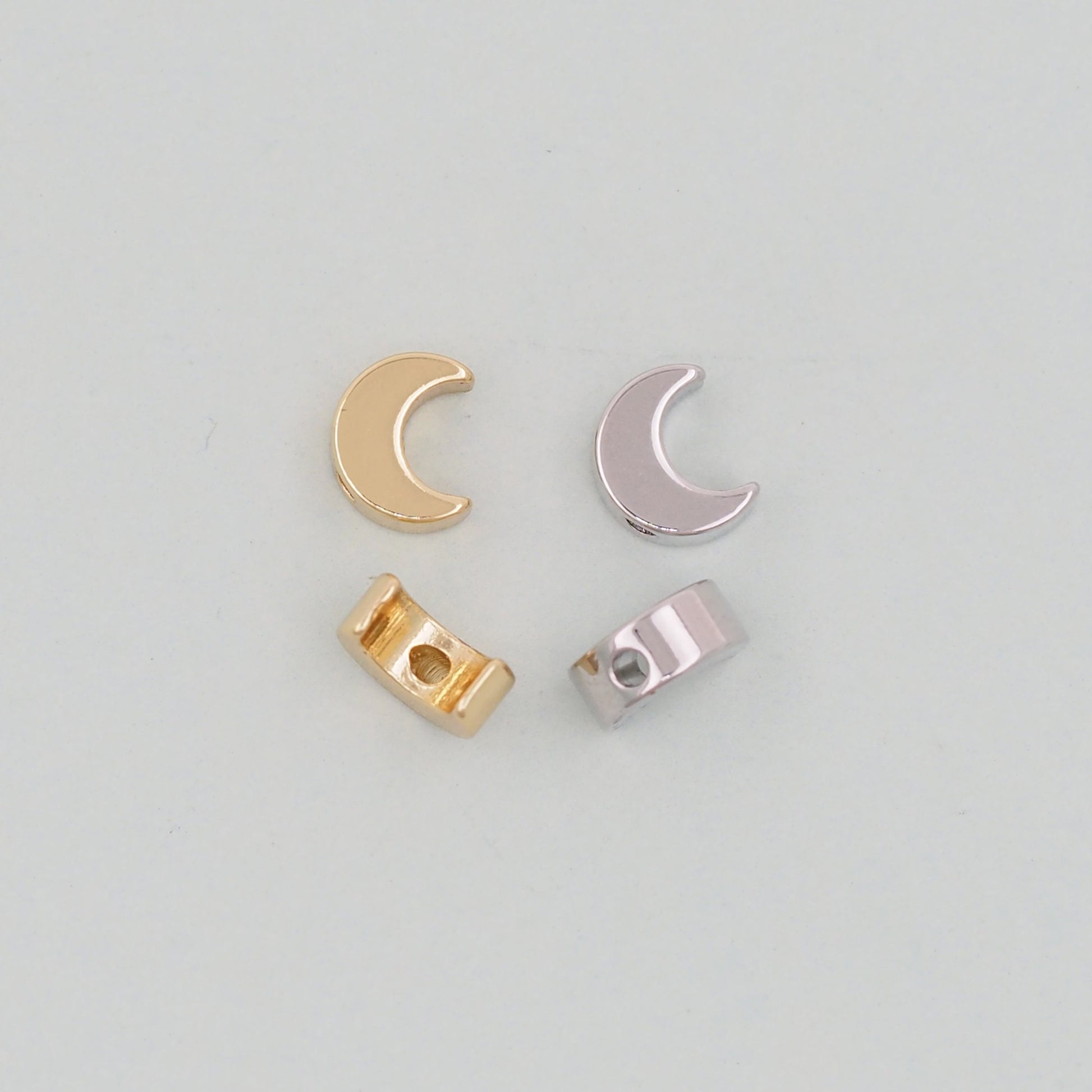 Gold Moon Beads Charms,18K Gold Filled Moon Bracelet Necklace for DIY Jewelry Making Supply hole 2mm