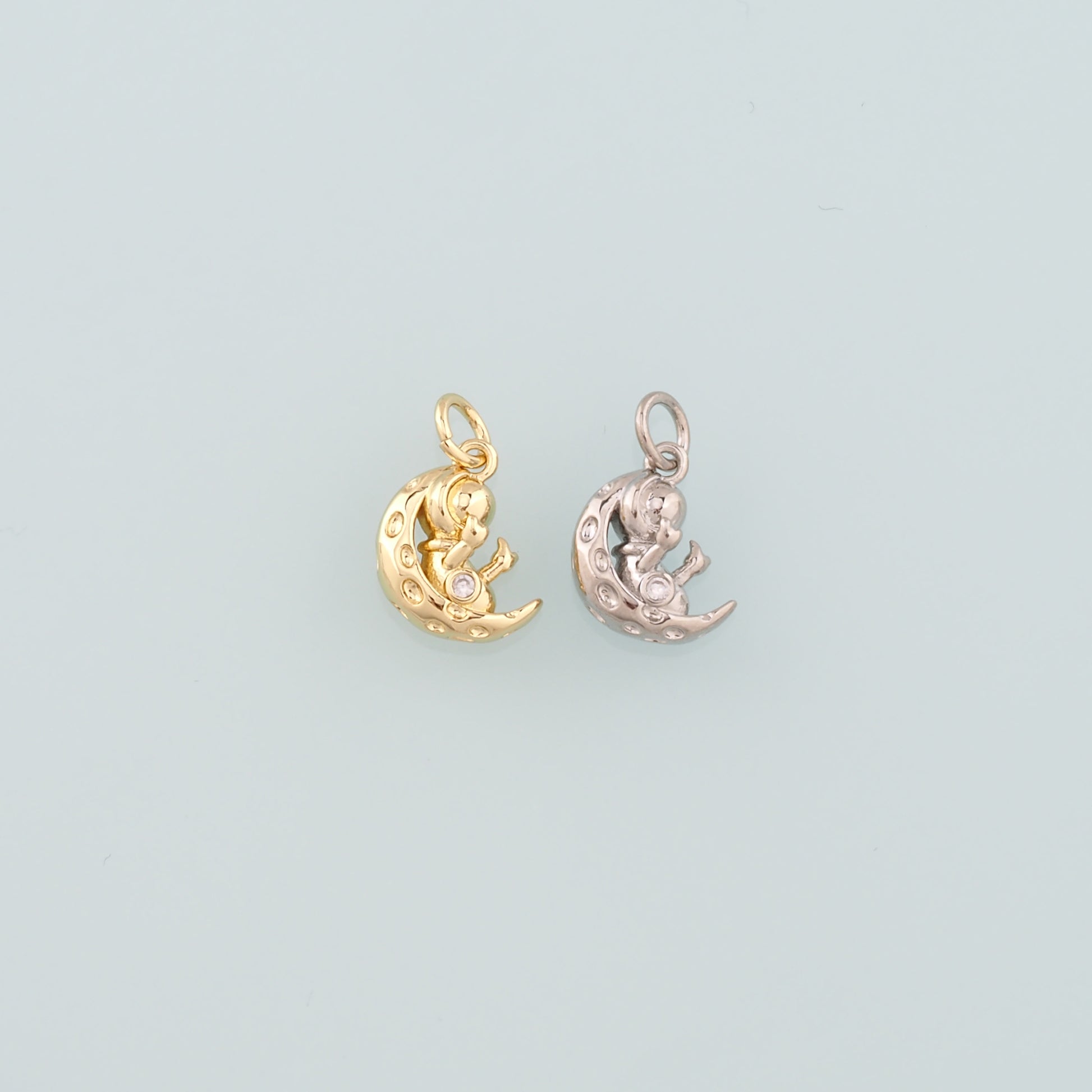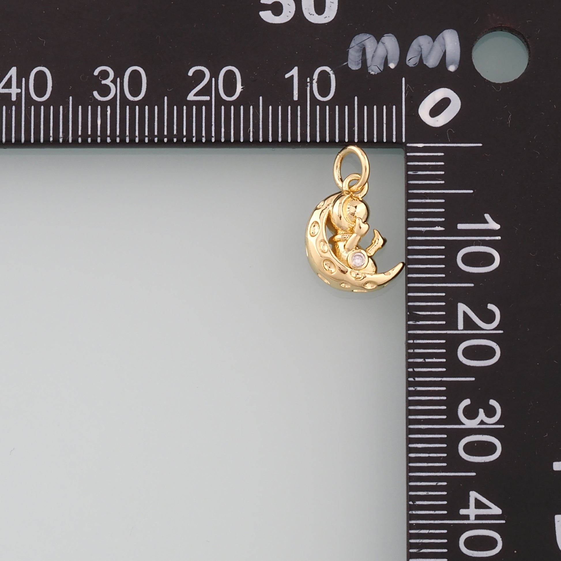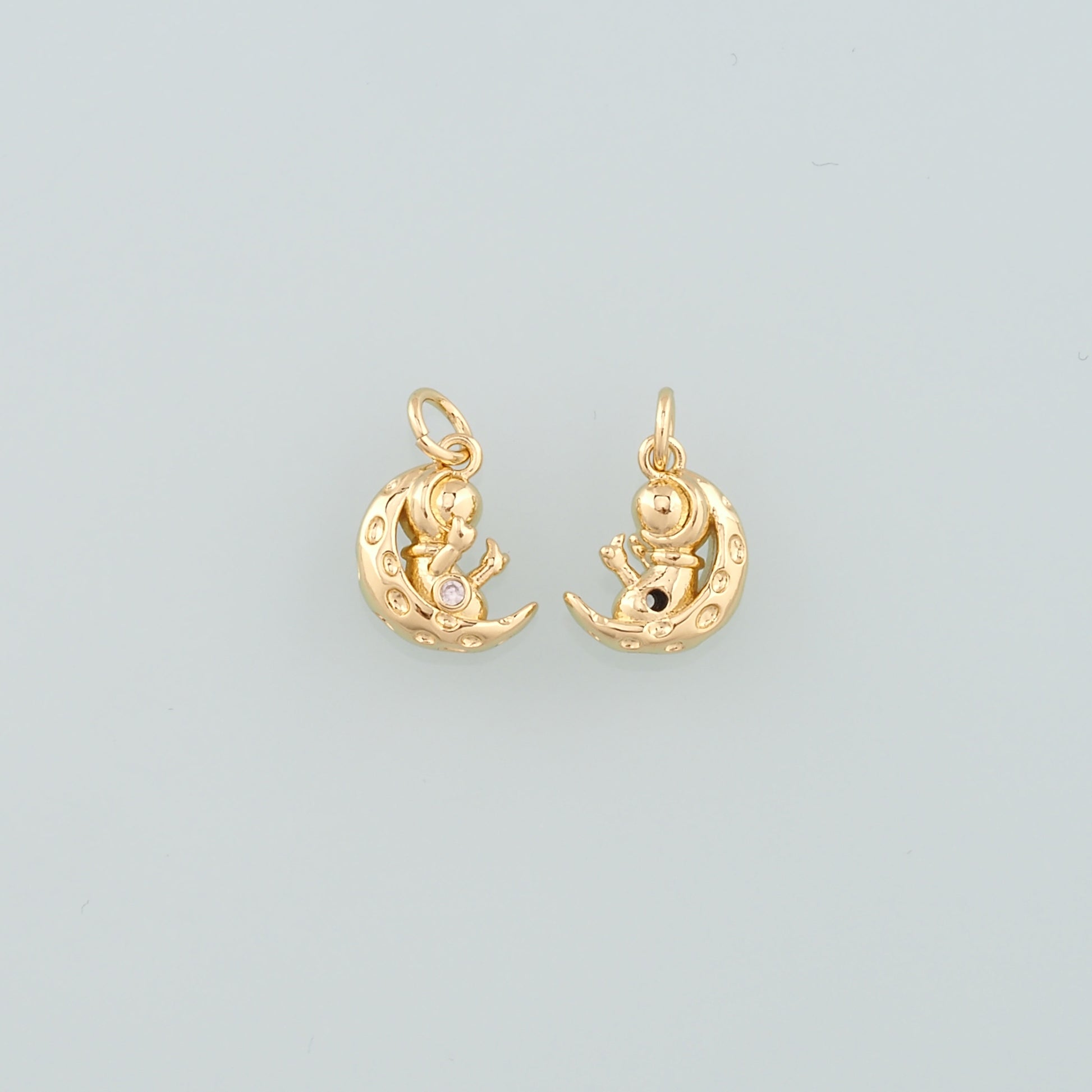 Gold Moon Charms,18K Gold Filled Astronaut Pendant,Dainty Astronaut Charm Bracelet Necklace for DIY Jewelry Making Supply