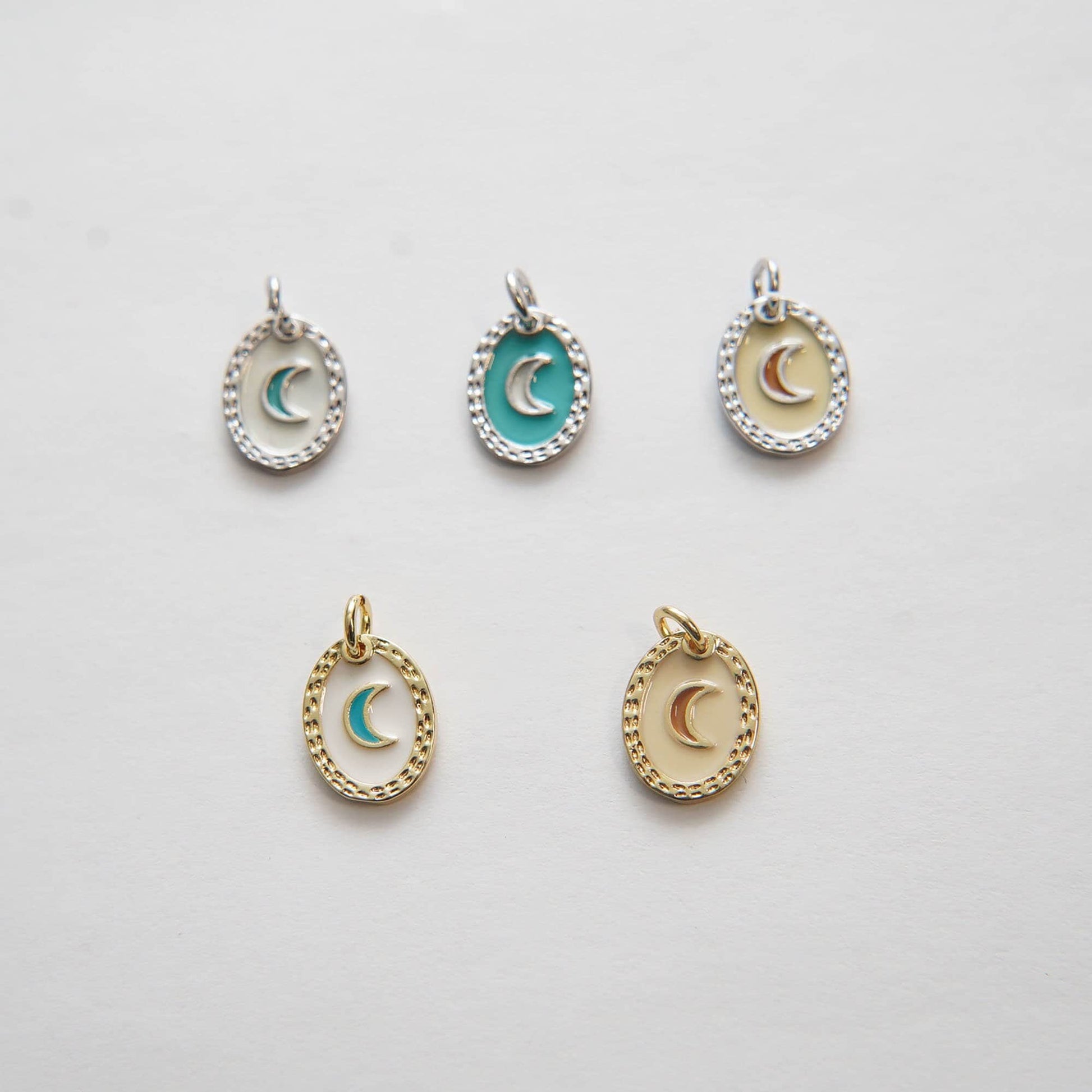 Gold Moon Charms,18K Gold Filled Oval Enamel Moon Pendant,Silver Moon Charm Bracelet Necklace for DIY Jewelry Making Supply