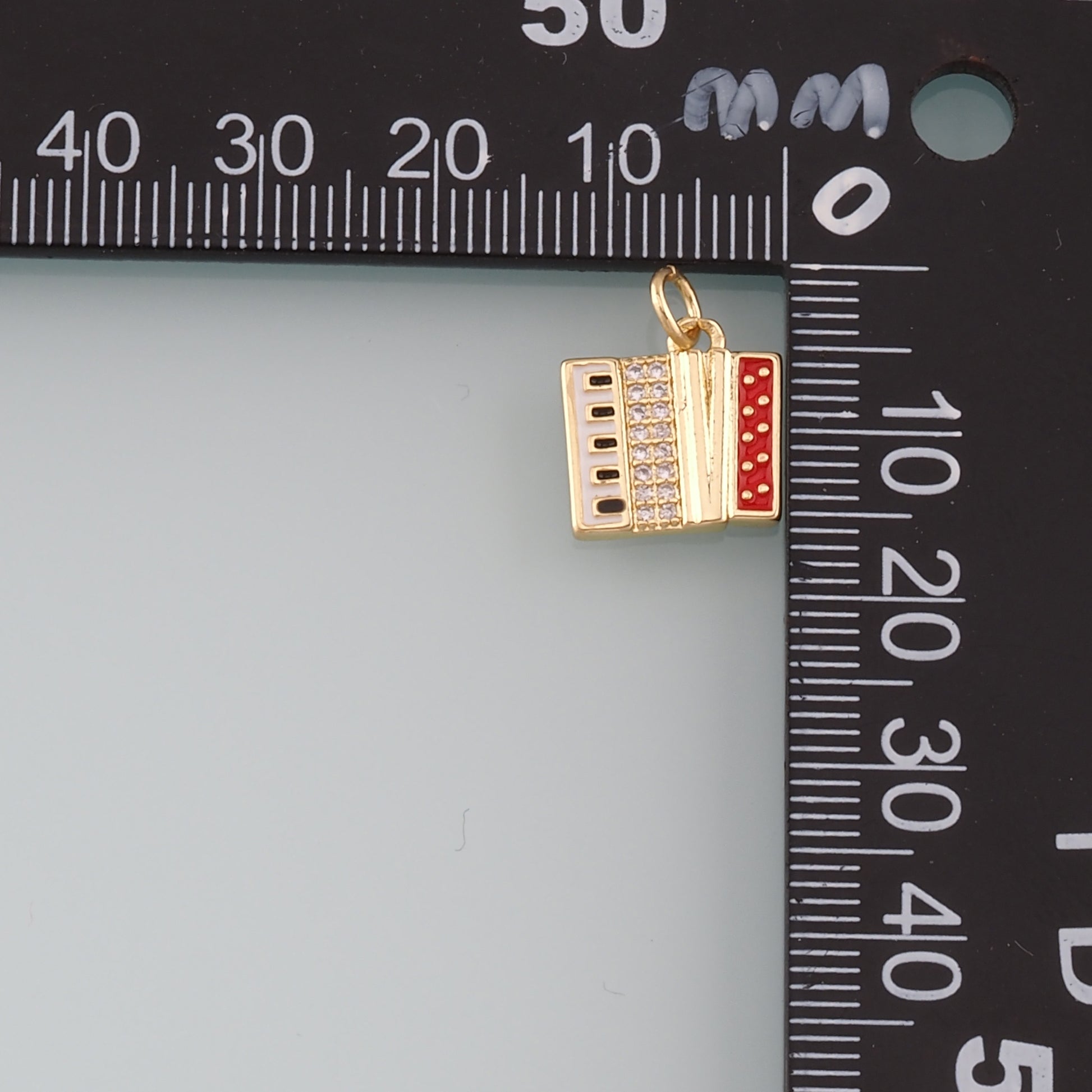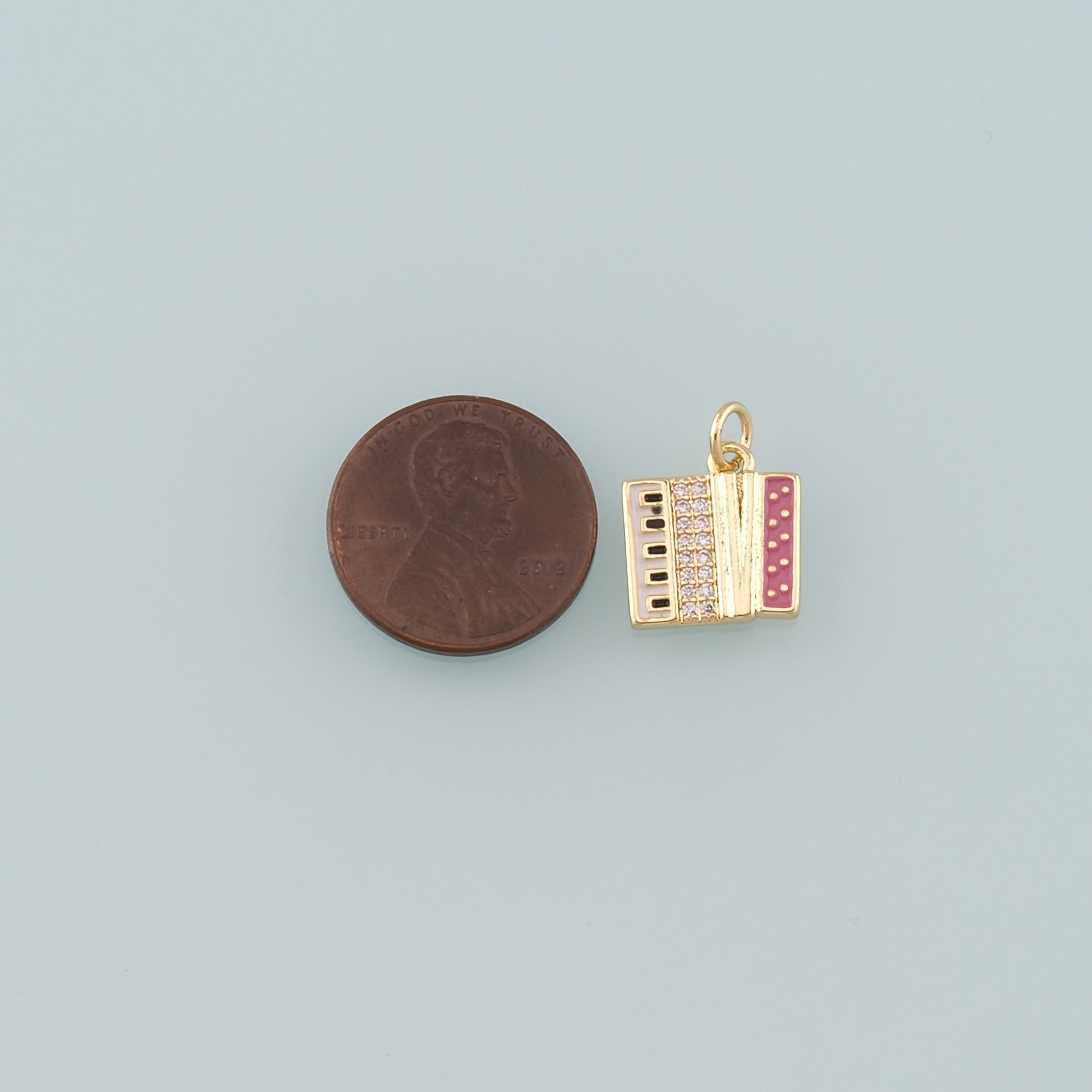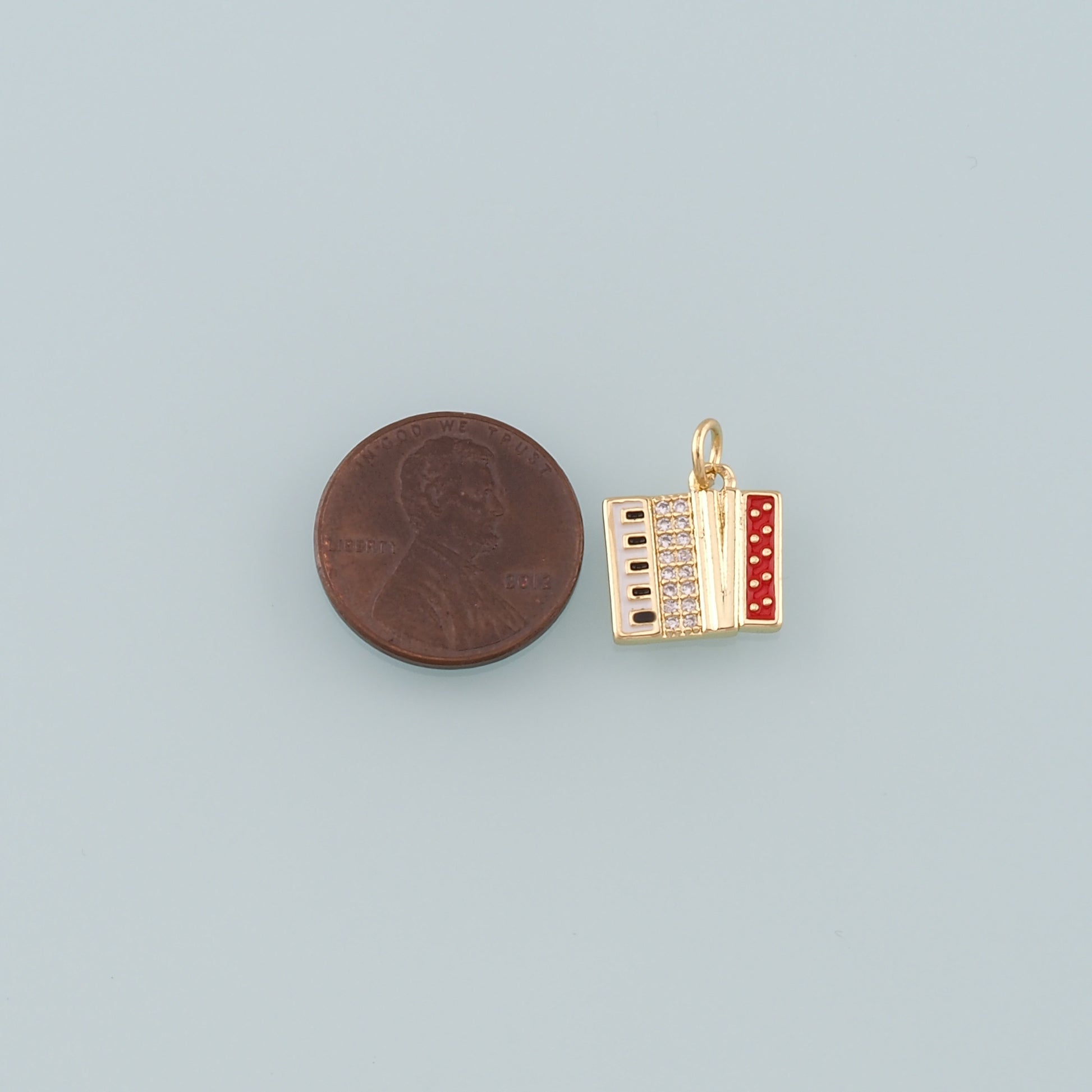 Gold Musical Instrument Charms,18K Gold Filled Accordion Pendant,Enamel Accordion Charm Bracelet Necklace for DIY Jewelry Making Supply