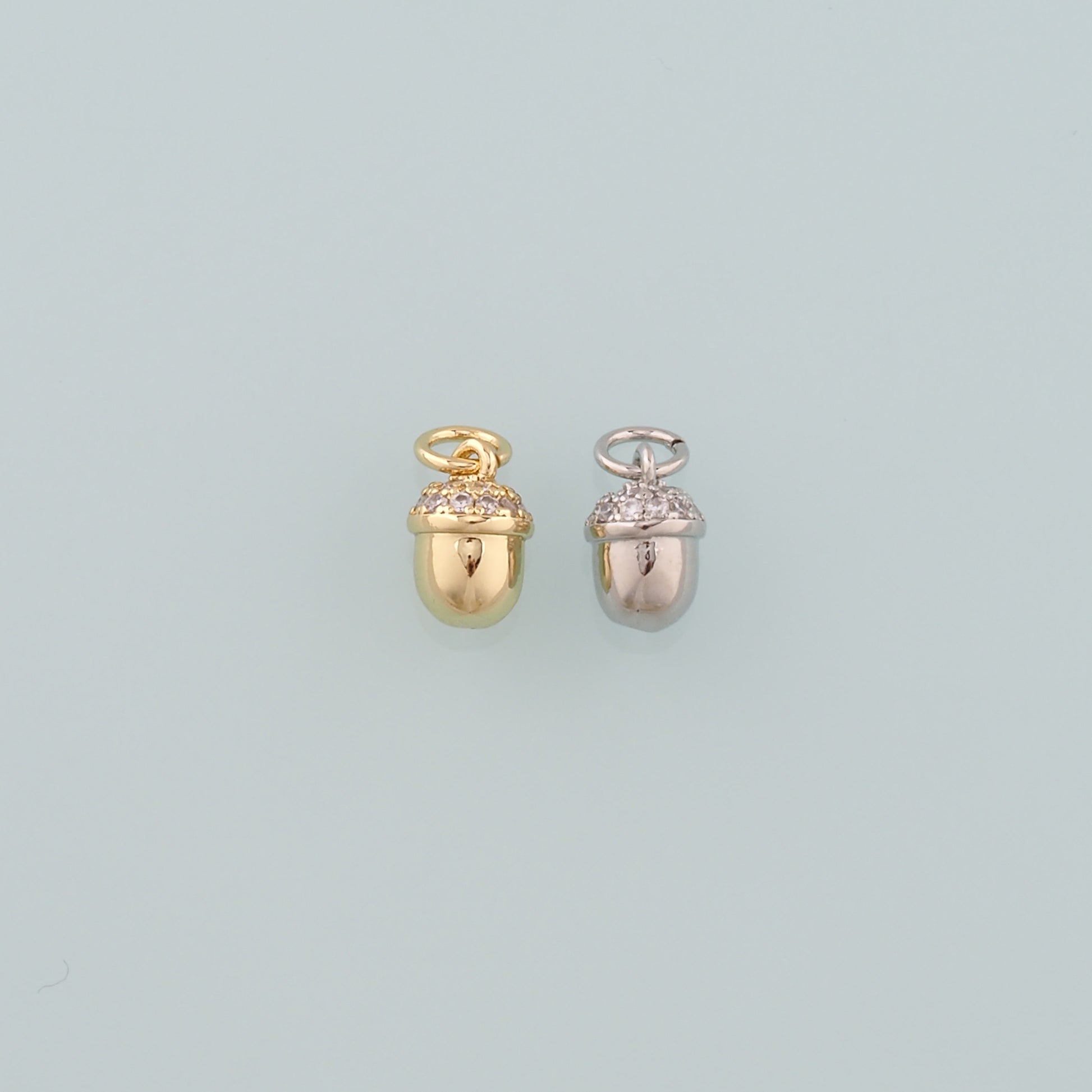 Gold Oak Tree Fruit Charms,18K Gold Filled Acorn Pendant,CZ Micro Pave Acorn Charm Bracelet Necklace for DIY Jewelry Making Supply