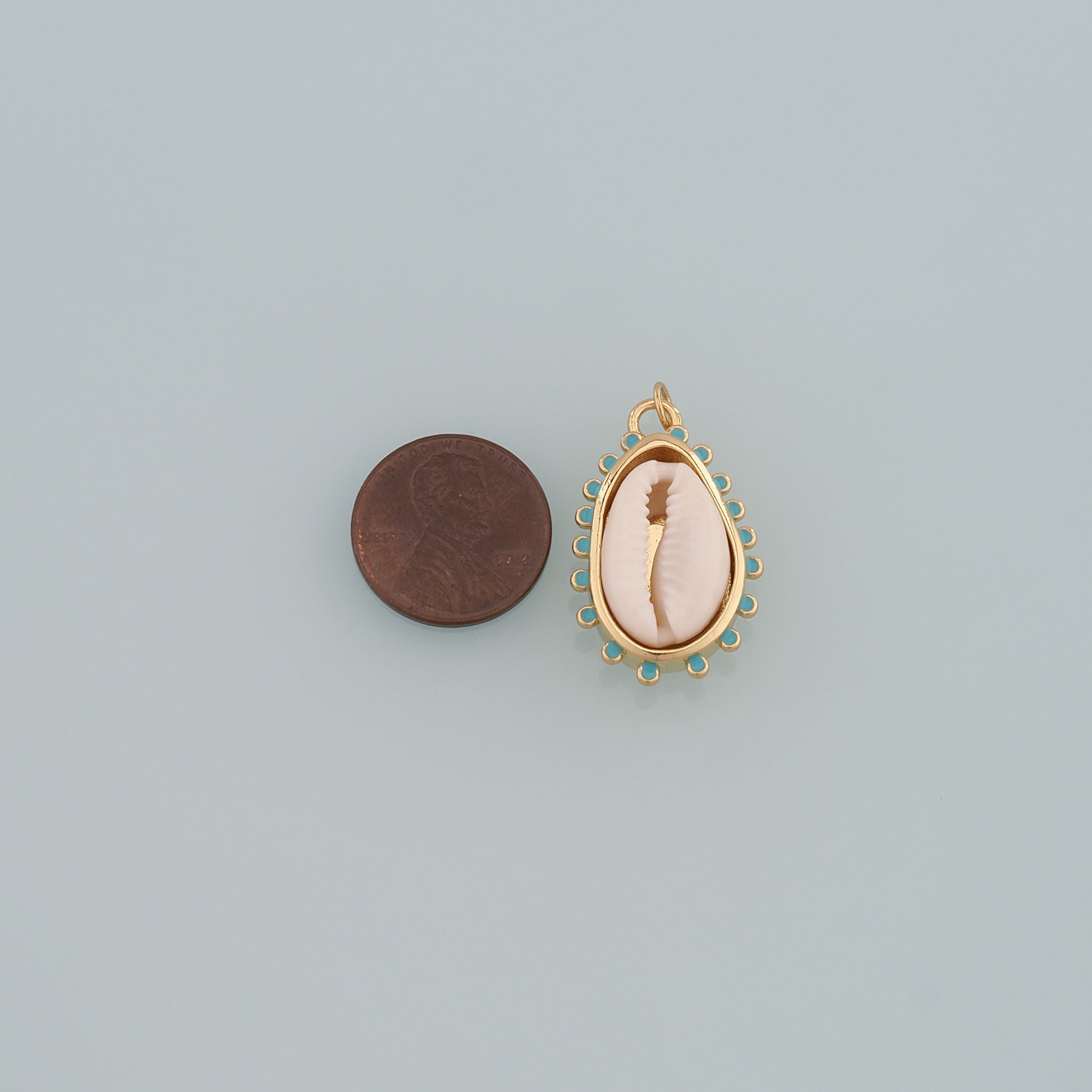Gold Ocean Charms,18K Gold Filled Cowrie Shell Pendant,Conch Shell Charm Bracelet Necklace for DIY Jewelry Making Supply