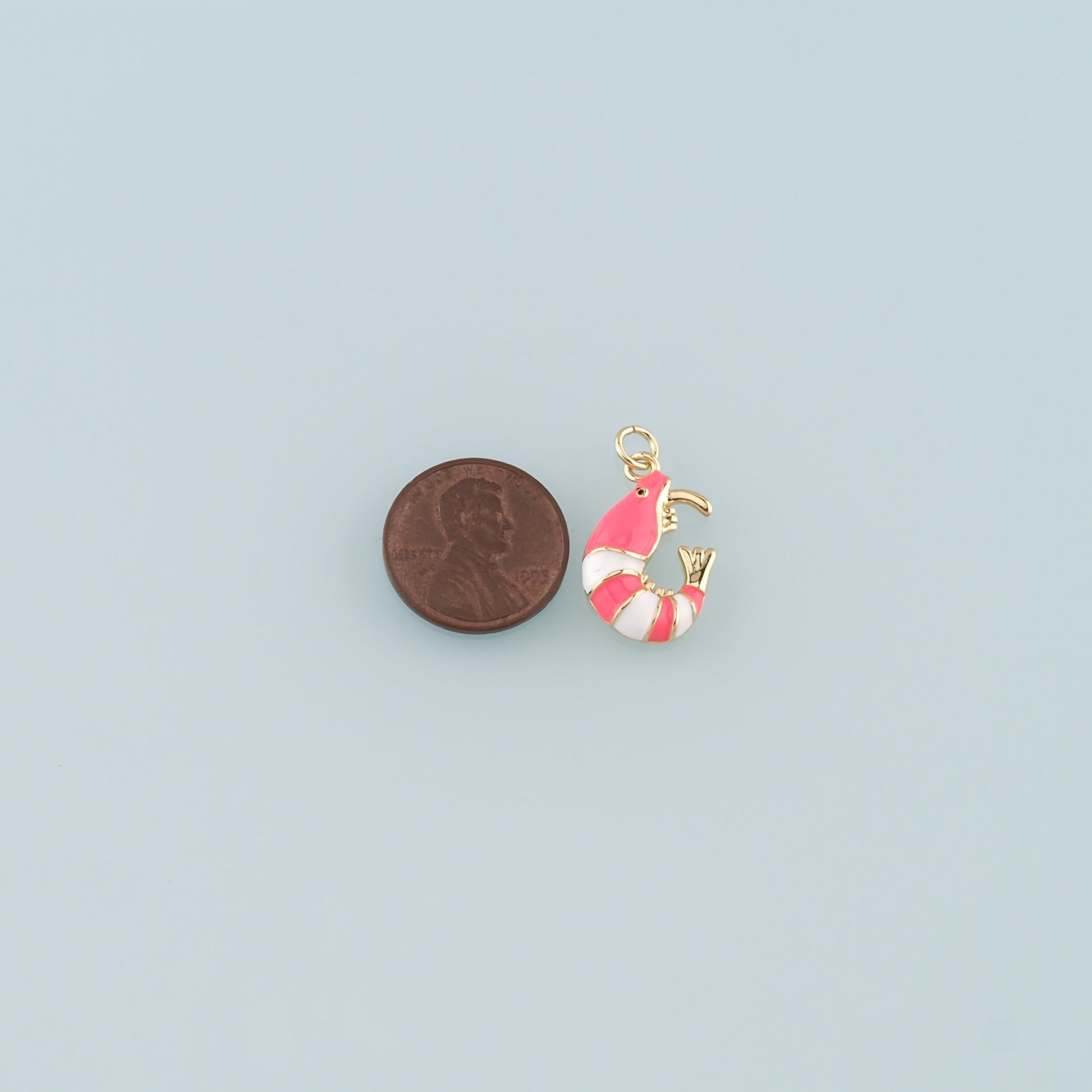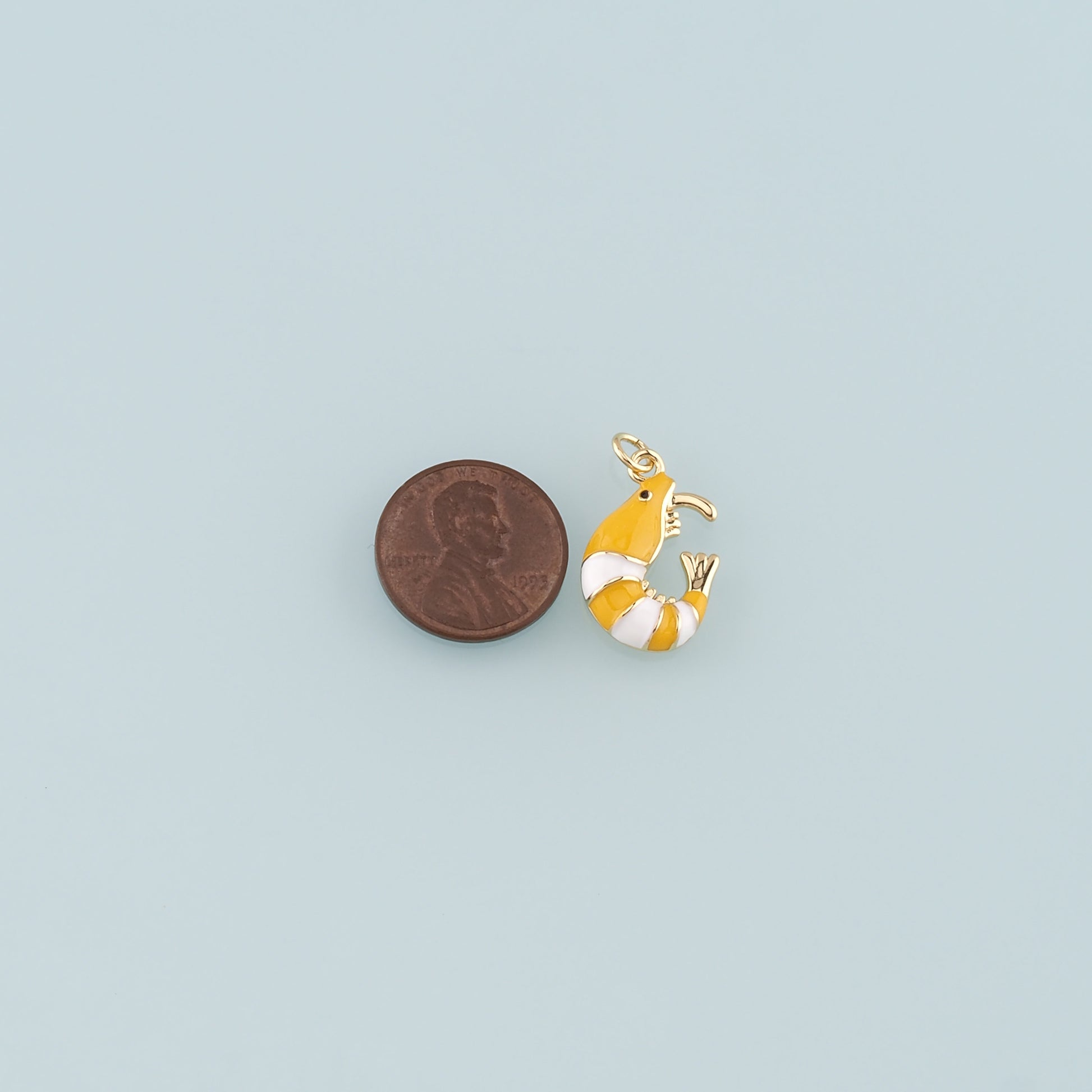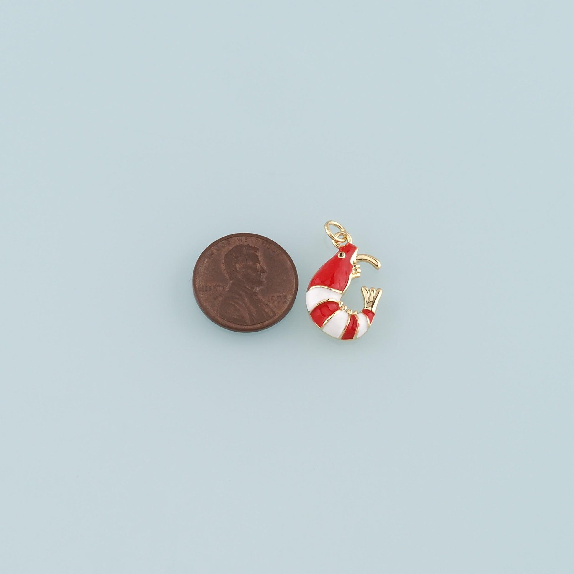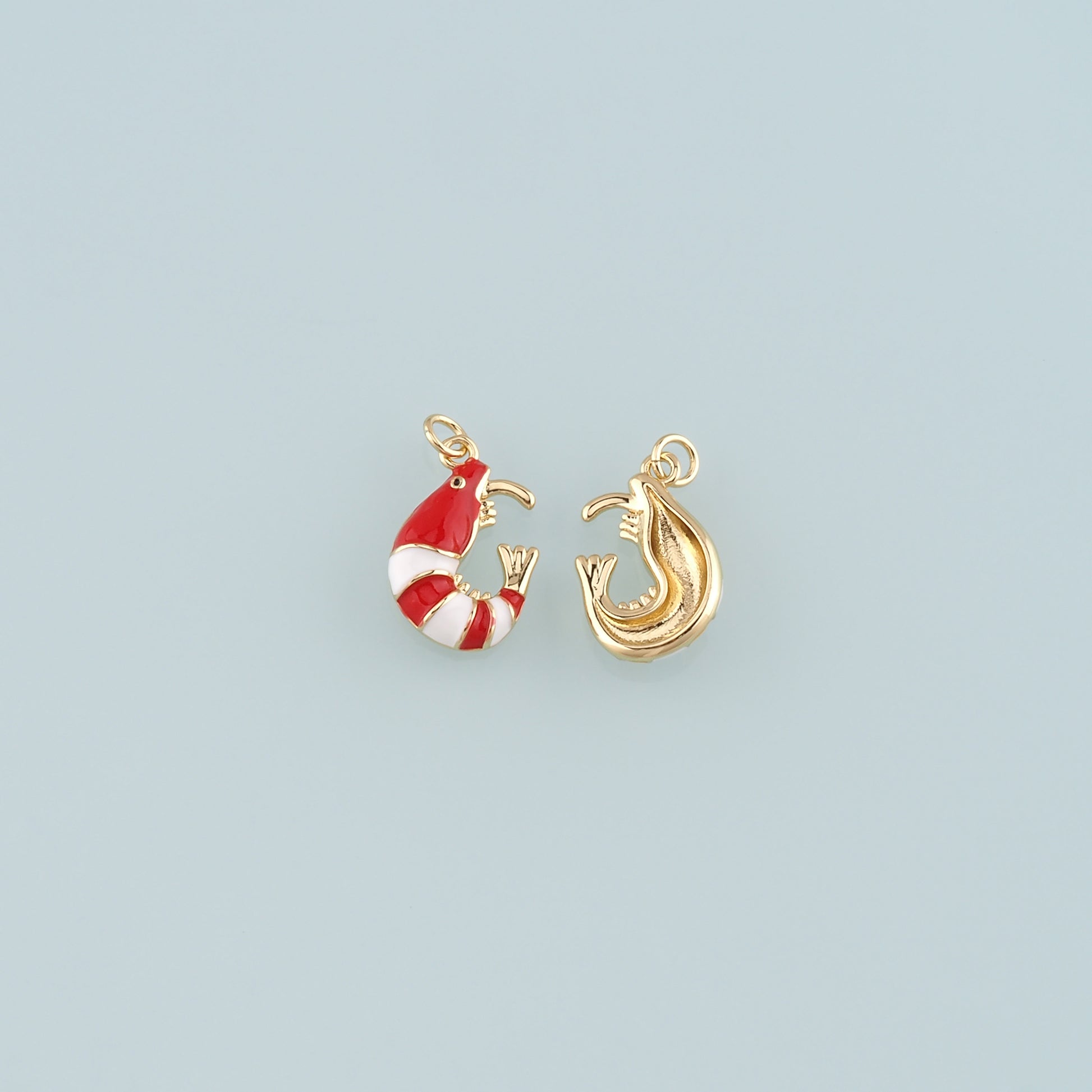 Gold Ocean Charms,18K Gold Filled Shrimp Pendant,Enamel Shrimp Charm Bracelet Necklace for DIY Jewelry Making Supply
