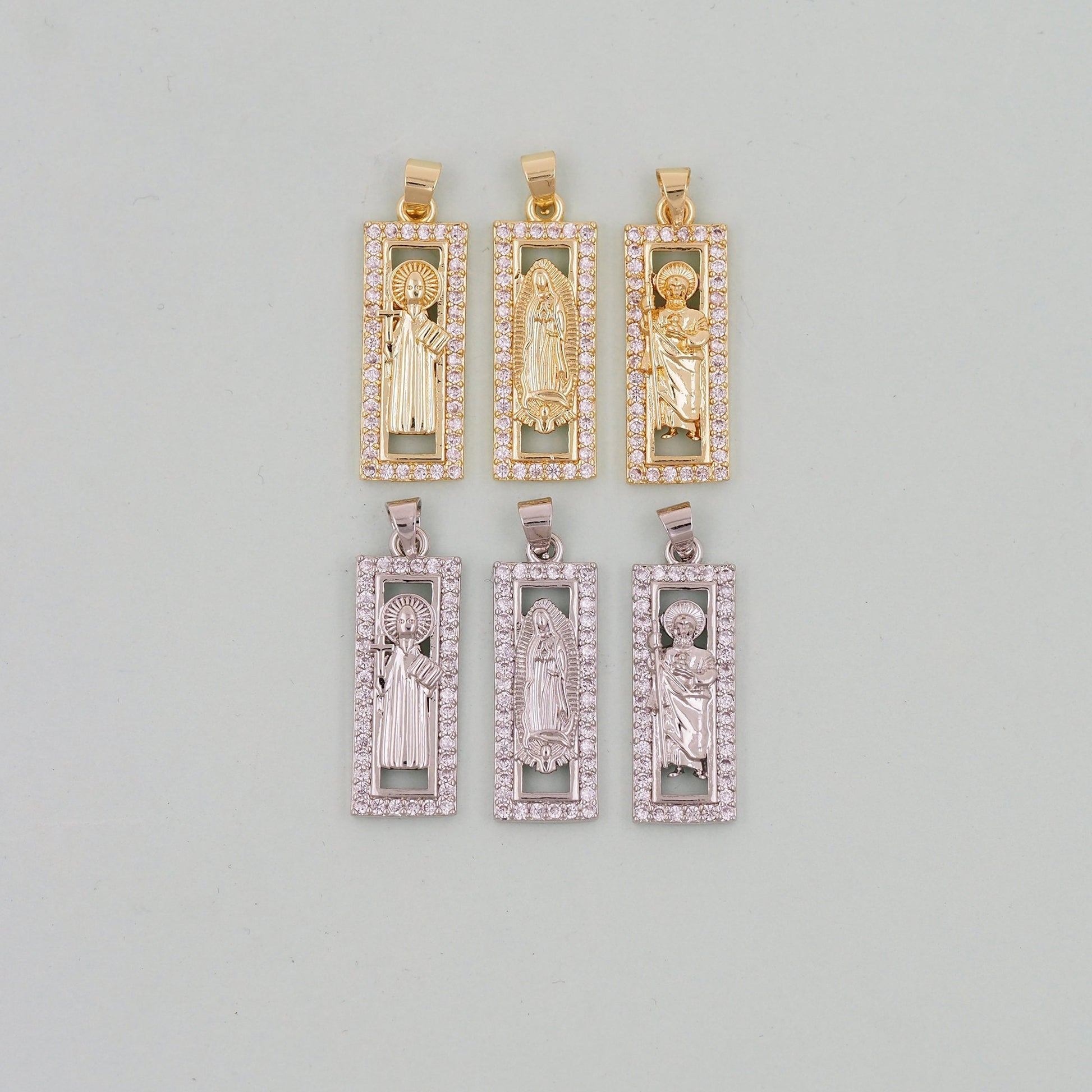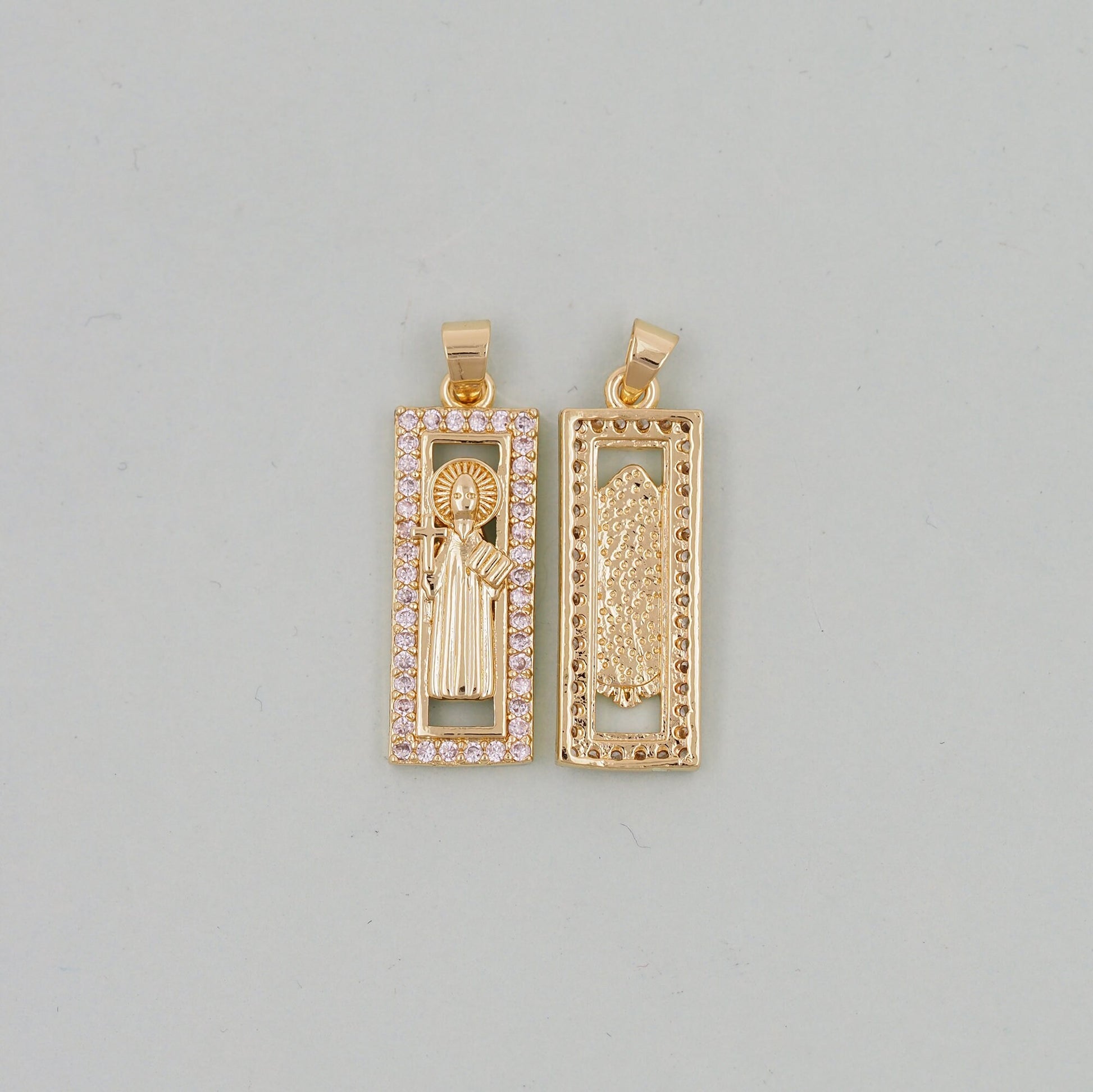 Gold Our Lady of Guadalupe Charms,18K Gold Filled Jesus Pendant Virgin Mary Charm Bracelet Necklace for DIY Jewelry Making Supply