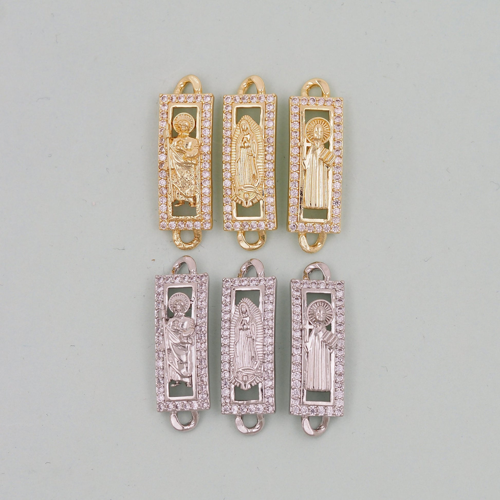 Gold Our Lady of Guadalupe Connector Charms,18K Gold Filled Jesus Pendant Virgin Mary Charm Bracelet Necklace for DIY Jewelry Making Supply