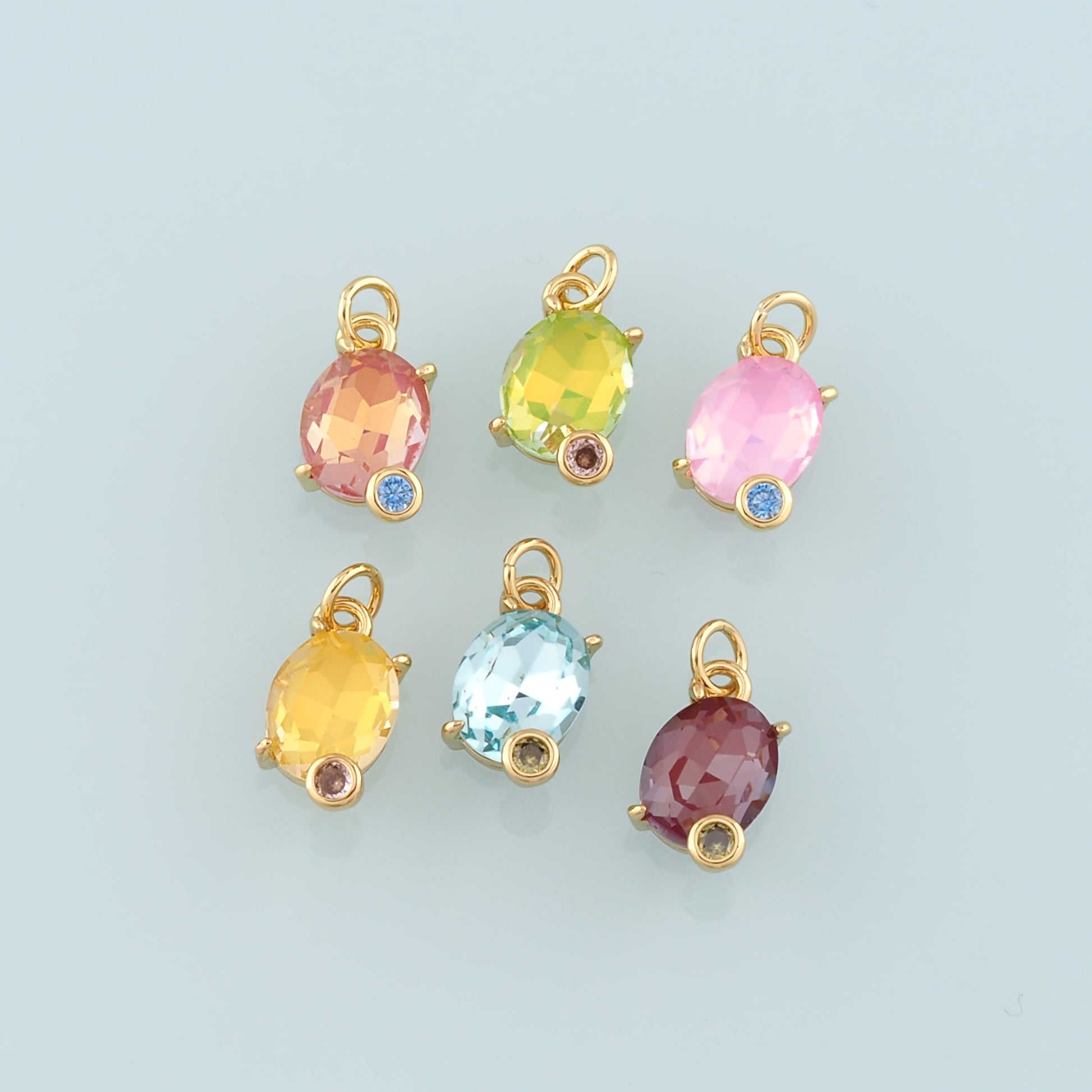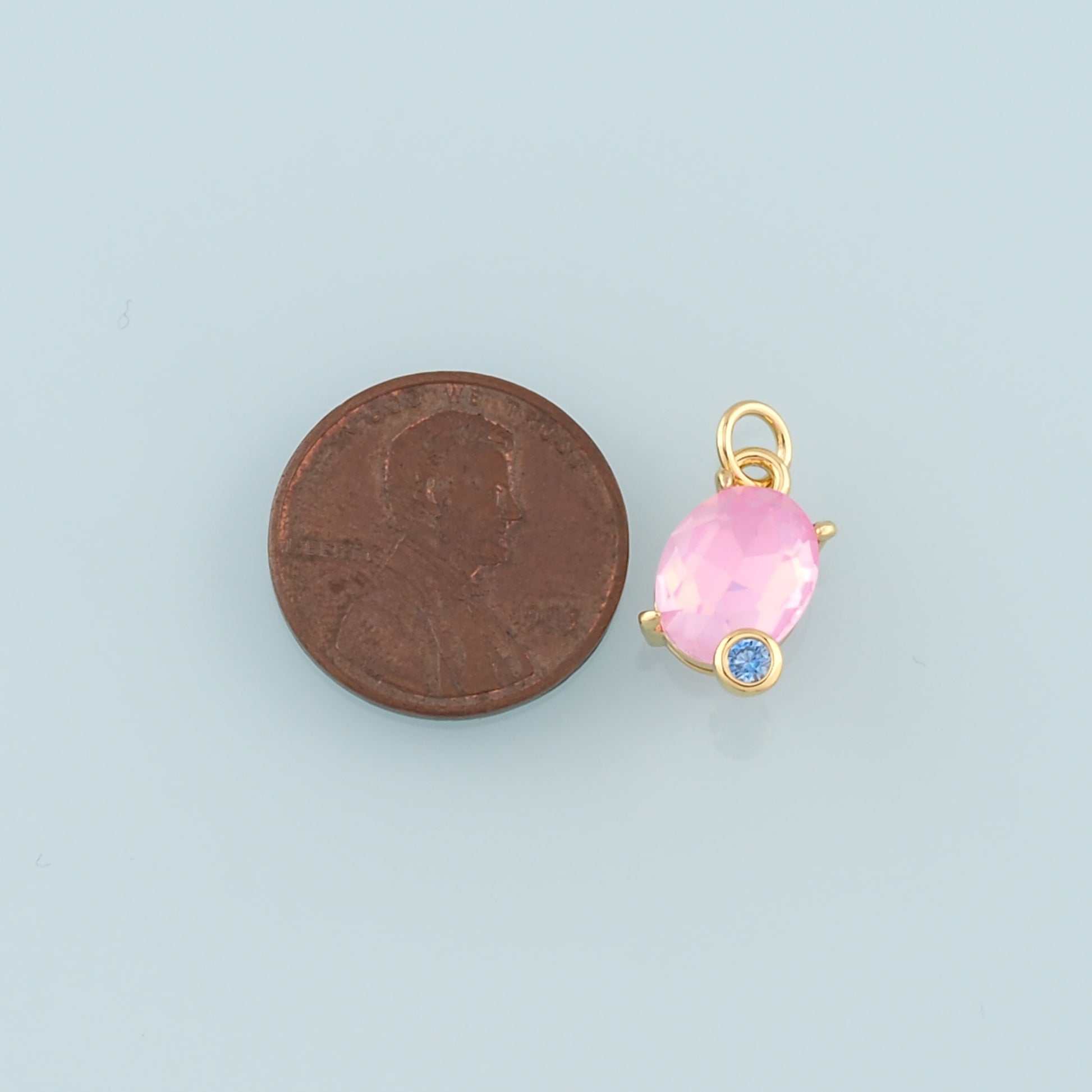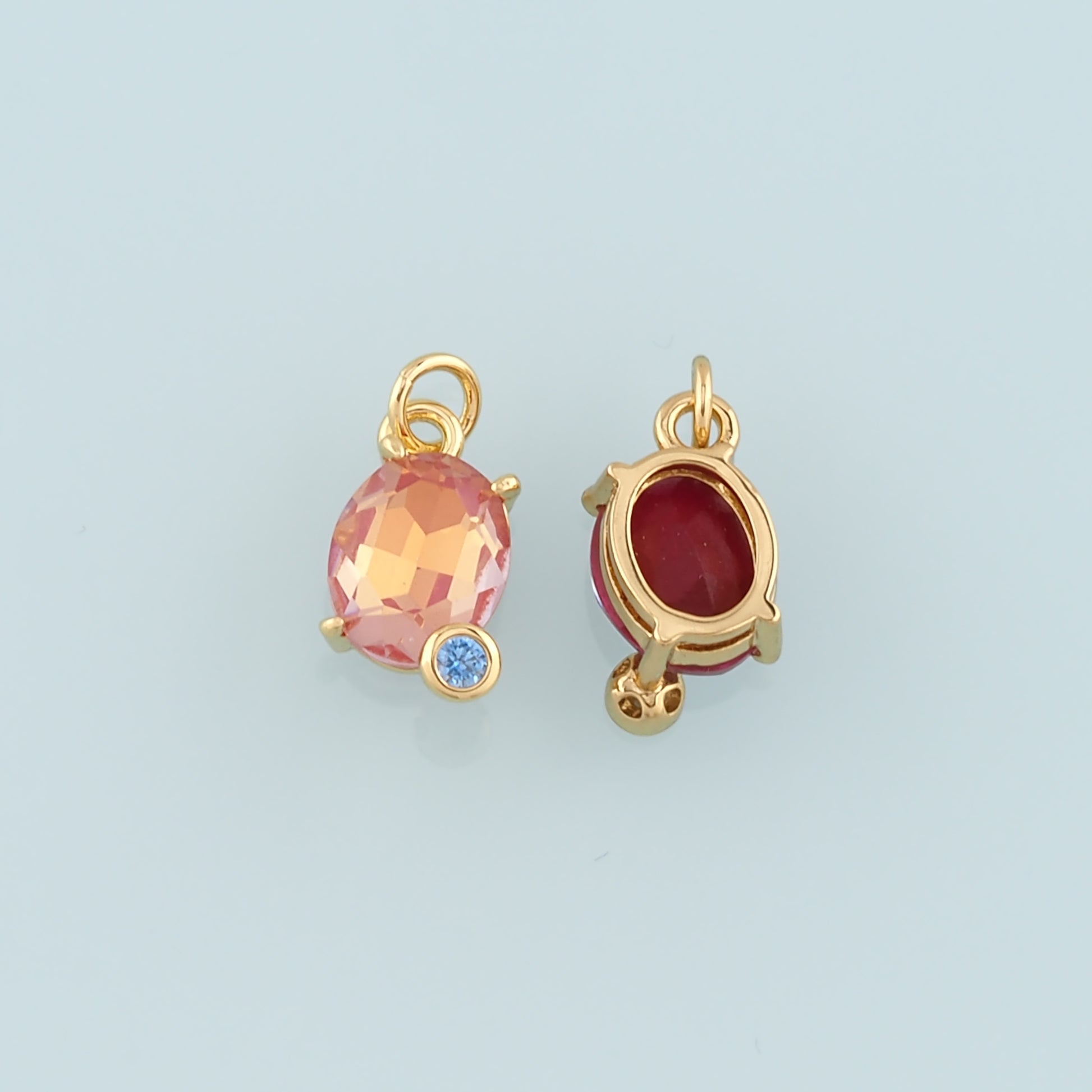 Gold Oval Crystal Charm,18K Gold Filled Crystal Pendant Bracelet Necklace for DIY Jewelry Making Supply