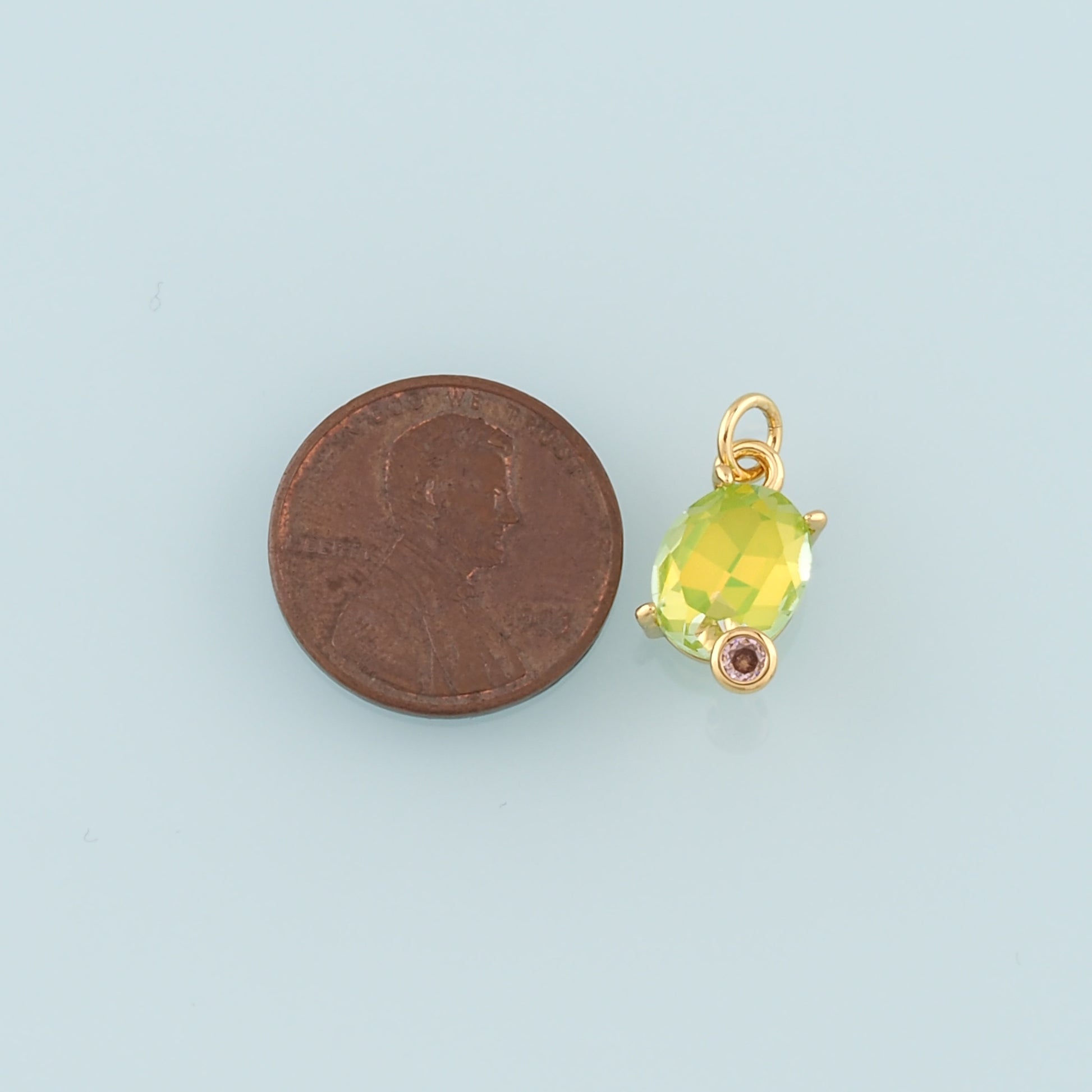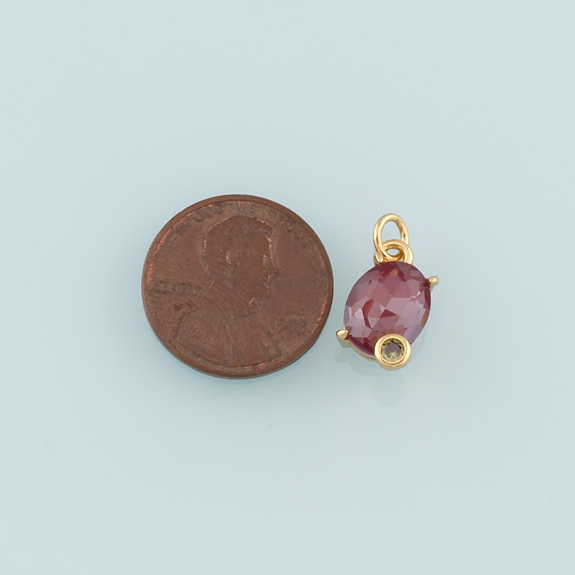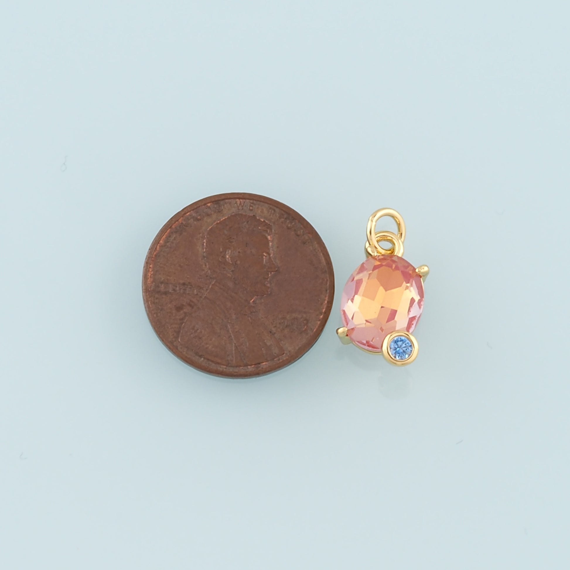 Gold Oval Crystal Charm,18K Gold Filled Crystal Pendant Bracelet Necklace for DIY Jewelry Making Supply