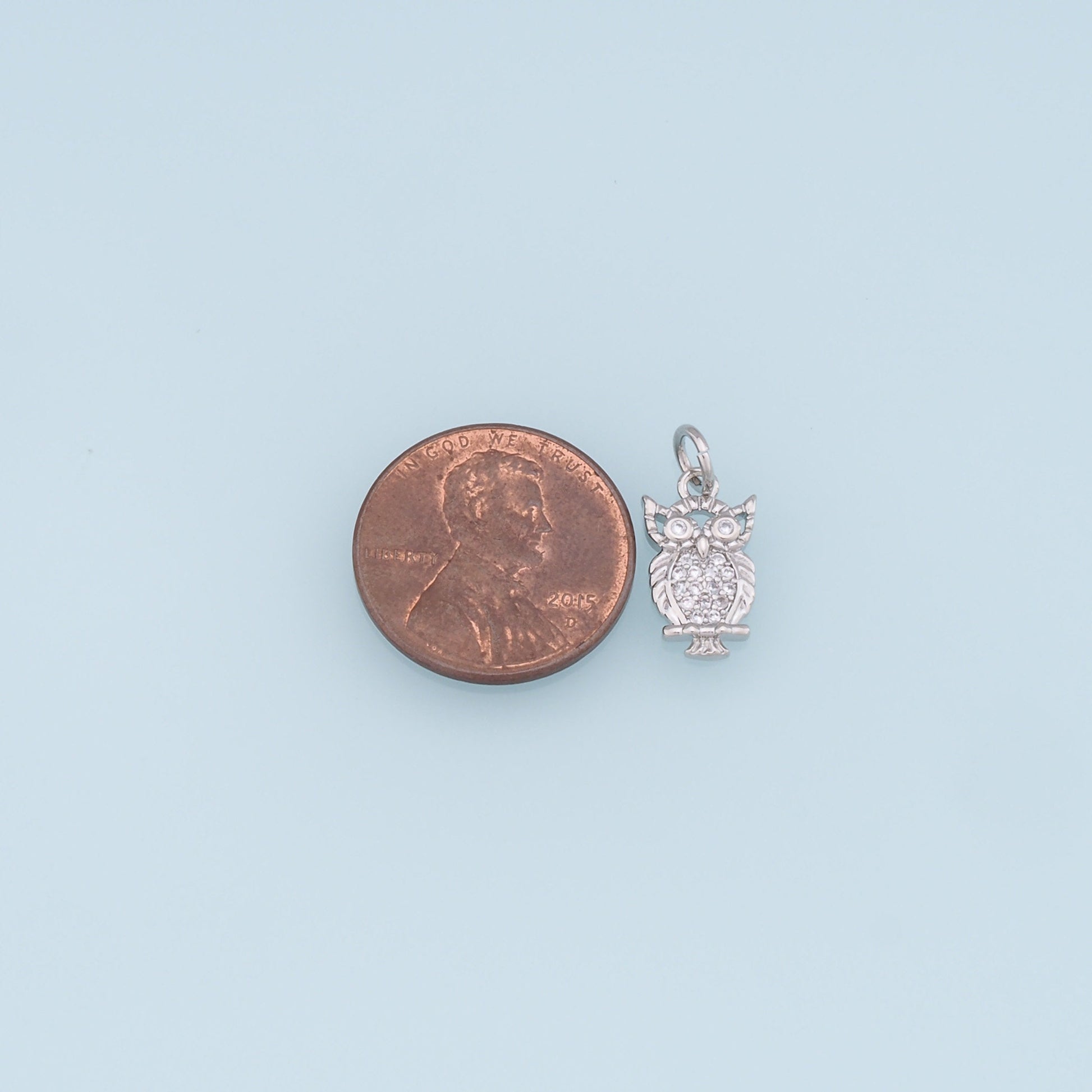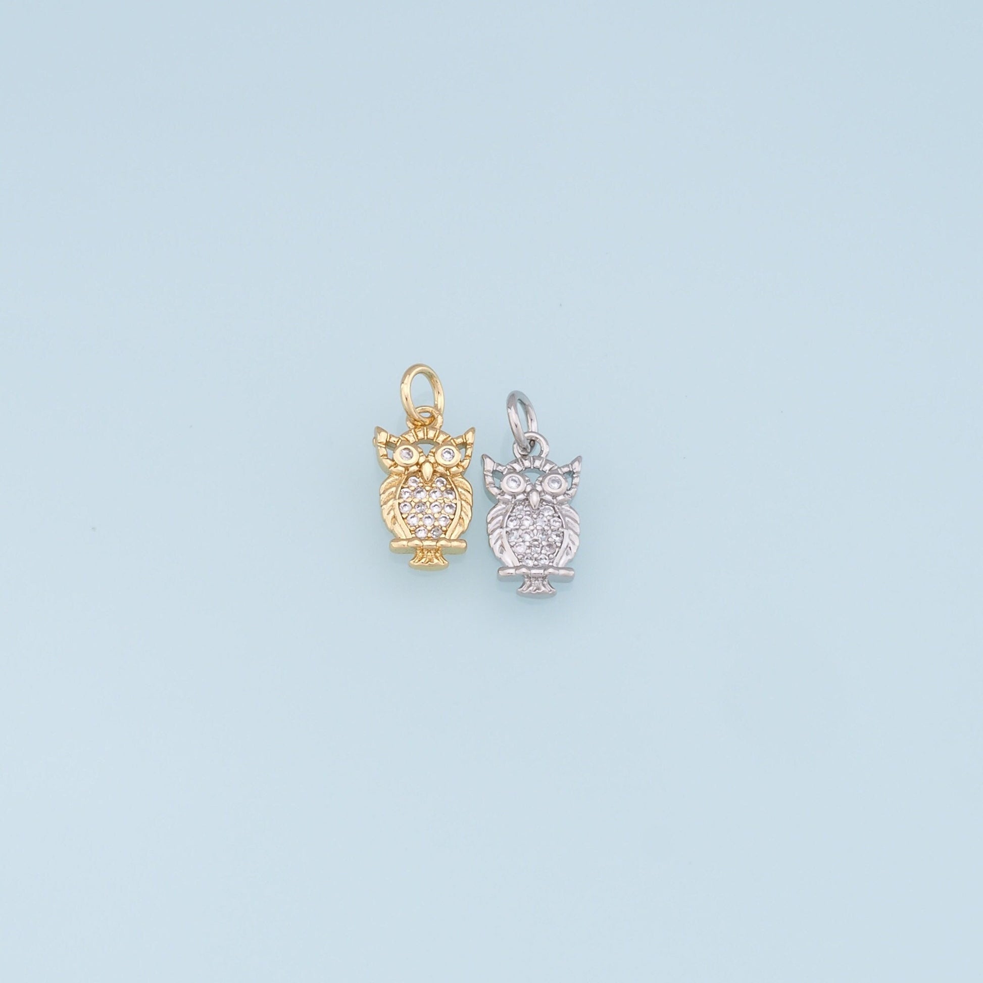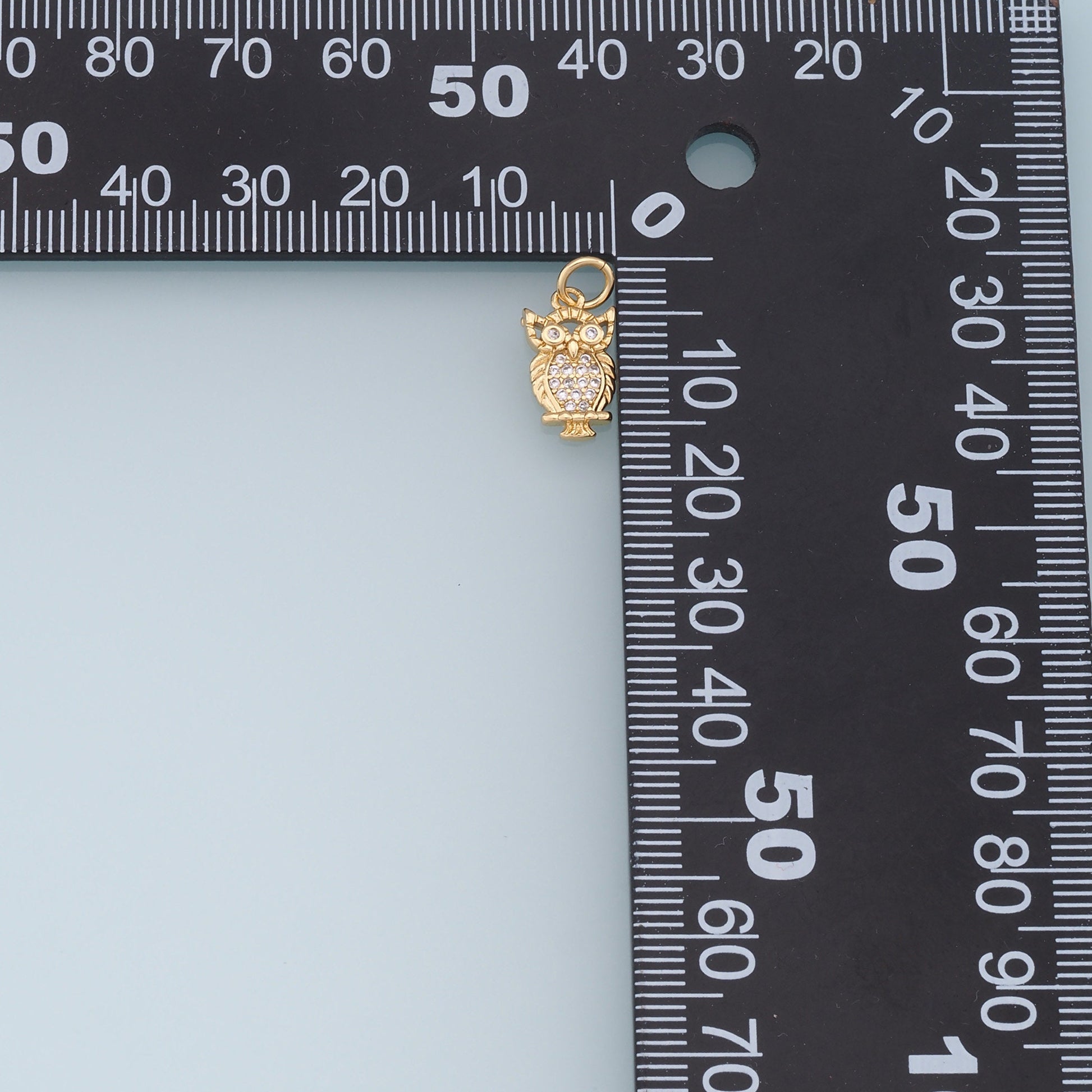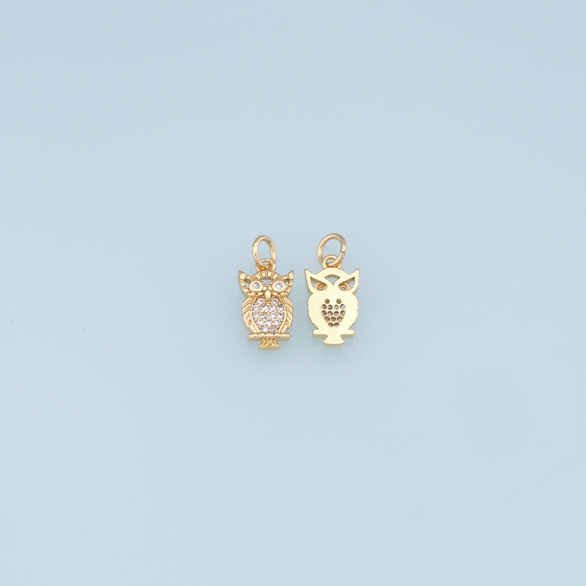 Gold Owl Charms,18K Gold Filled owl Pendant,CZ owl Charm Bracelet Necklace for DIY Jewelry Making Supply