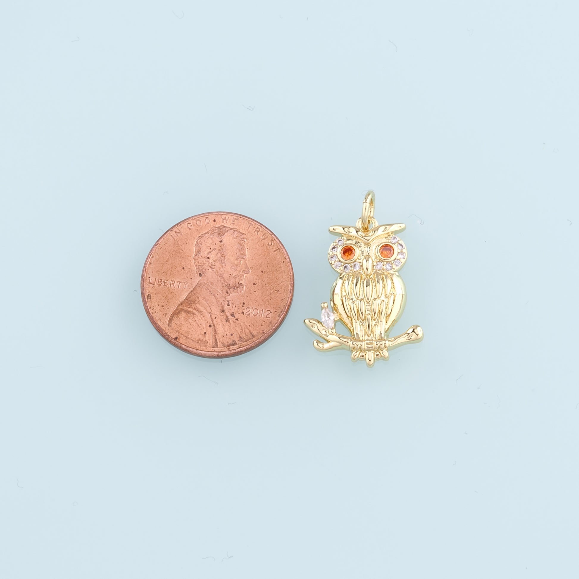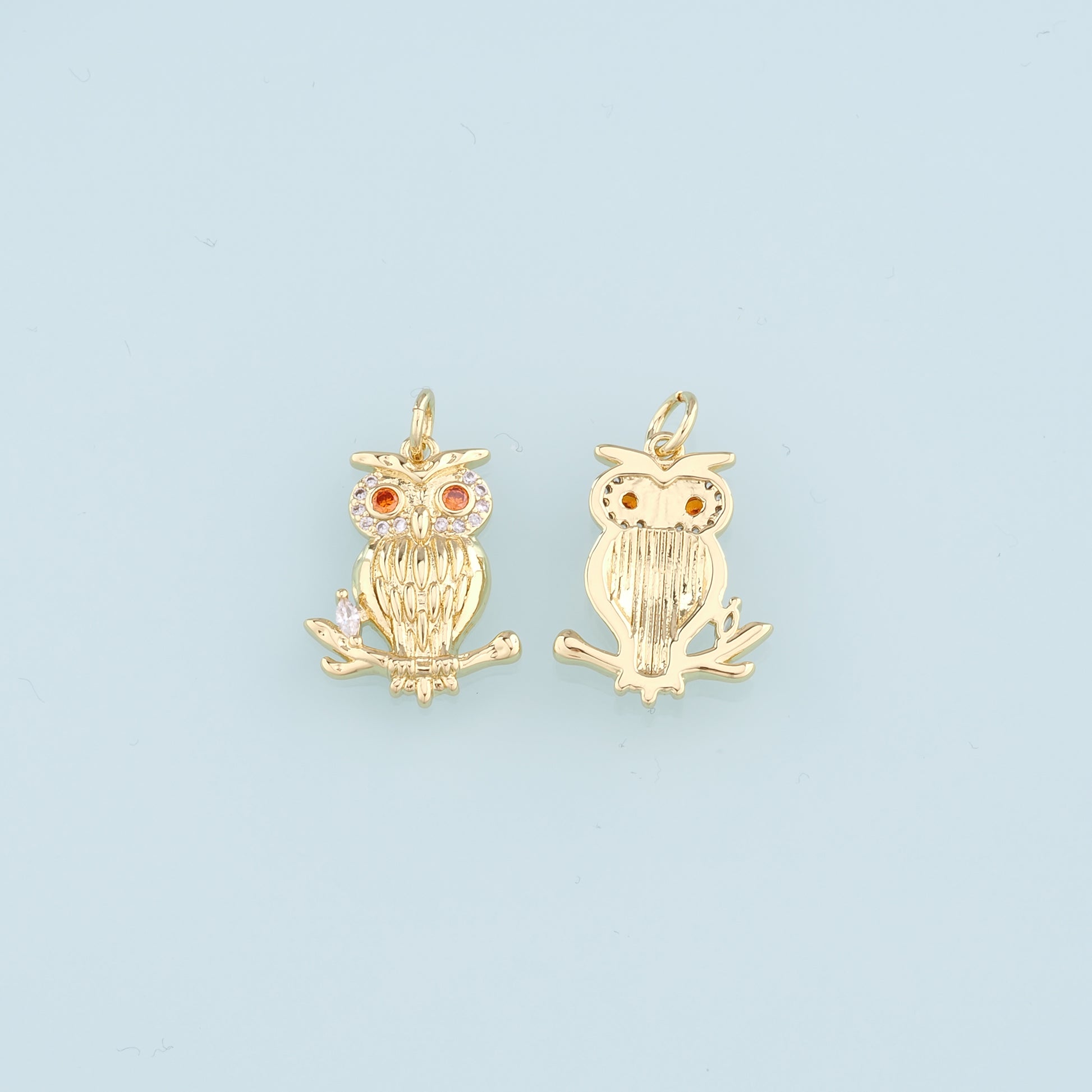 Gold Owl Charms,18K Gold Filled owl Pendant,CZ owl Charm Bracelet Necklace for DIY Jewelry Making Supply