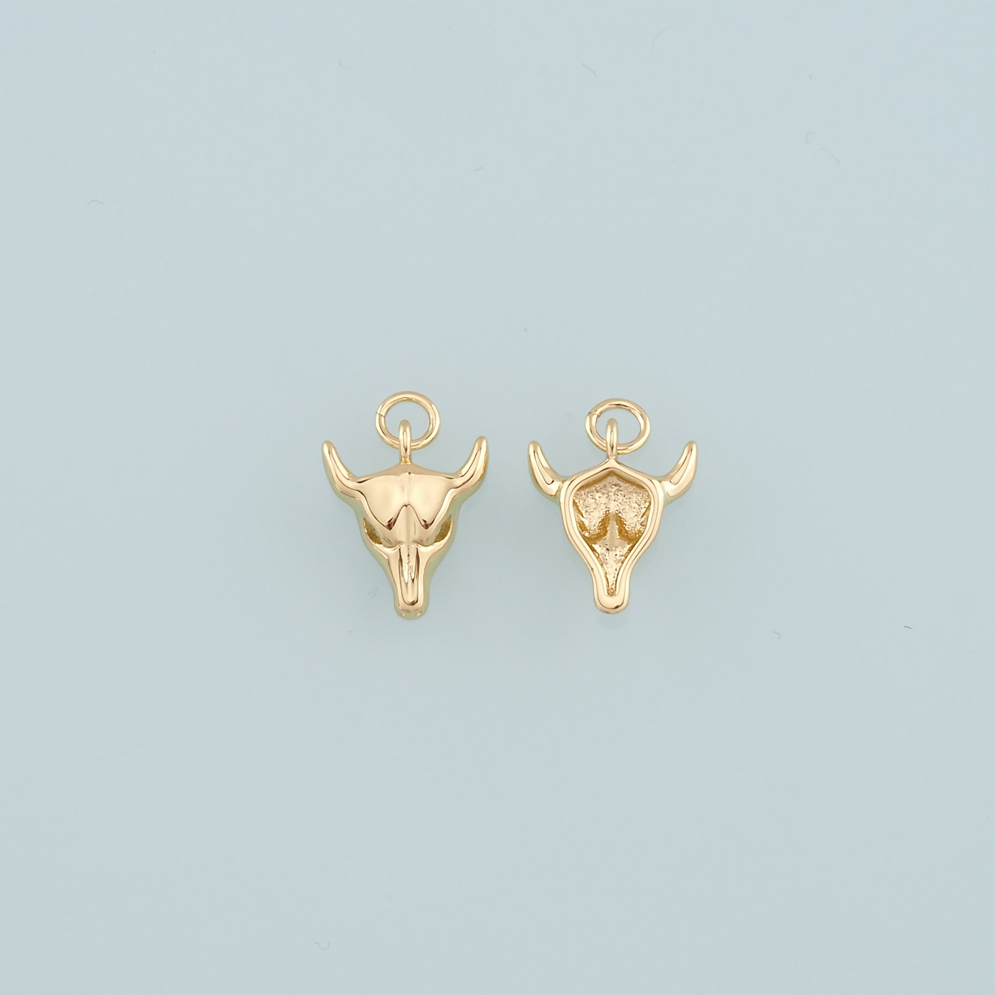 Gold Ox Charms,18K Gold Filled Bull Head Pendant,Bull Charm Bracelet Necklace for DIY Jewelry Making Supply
