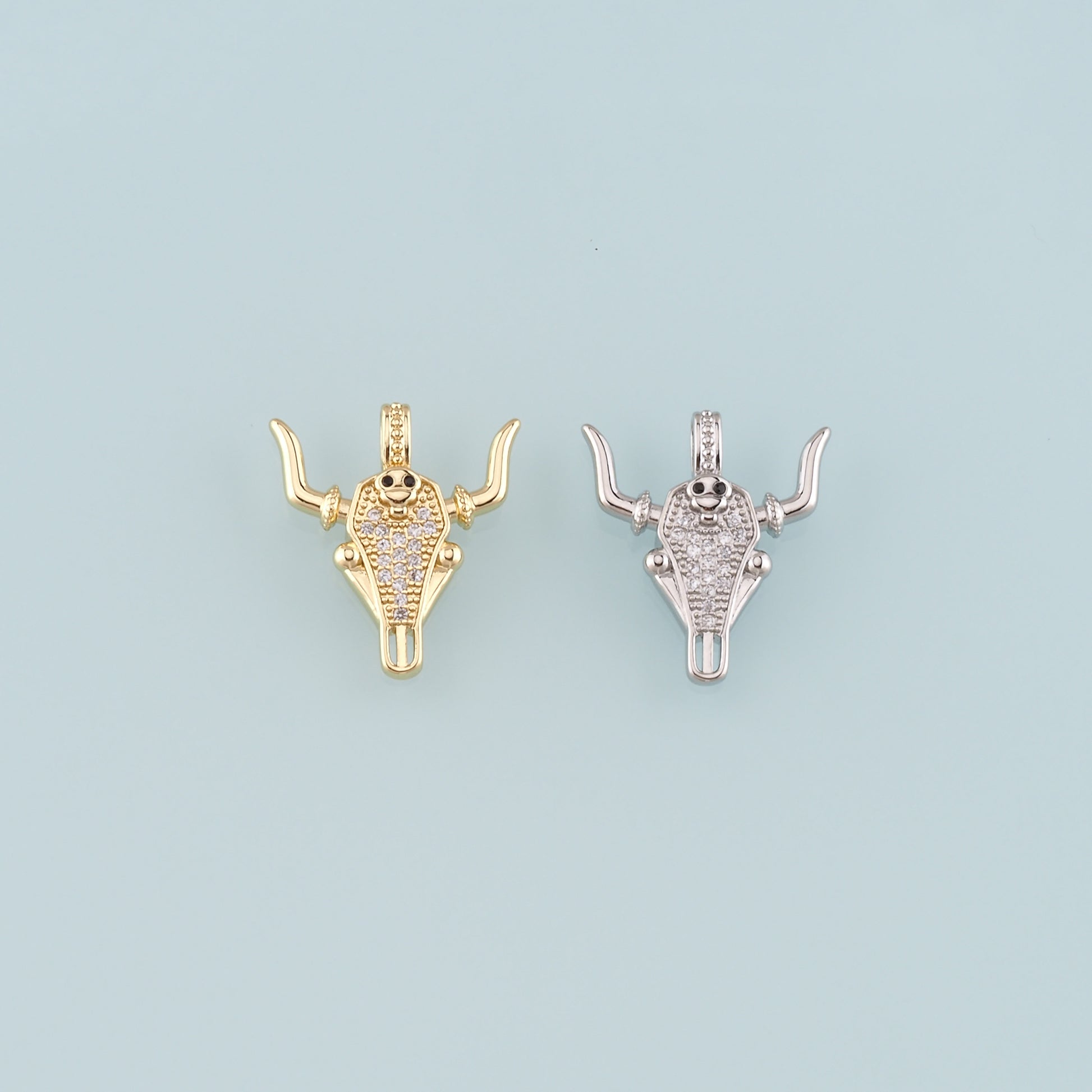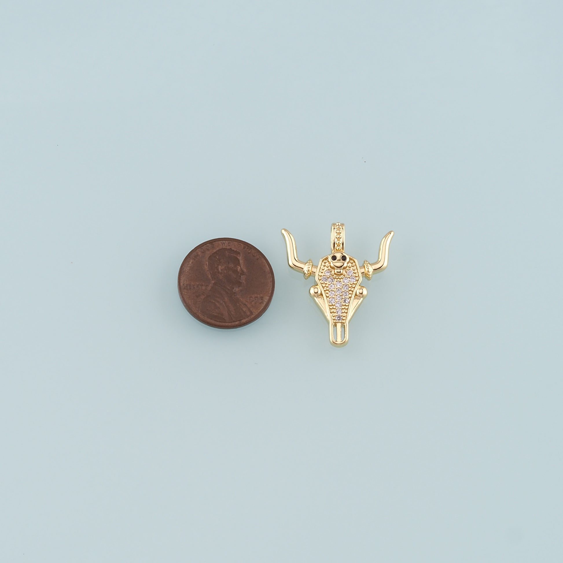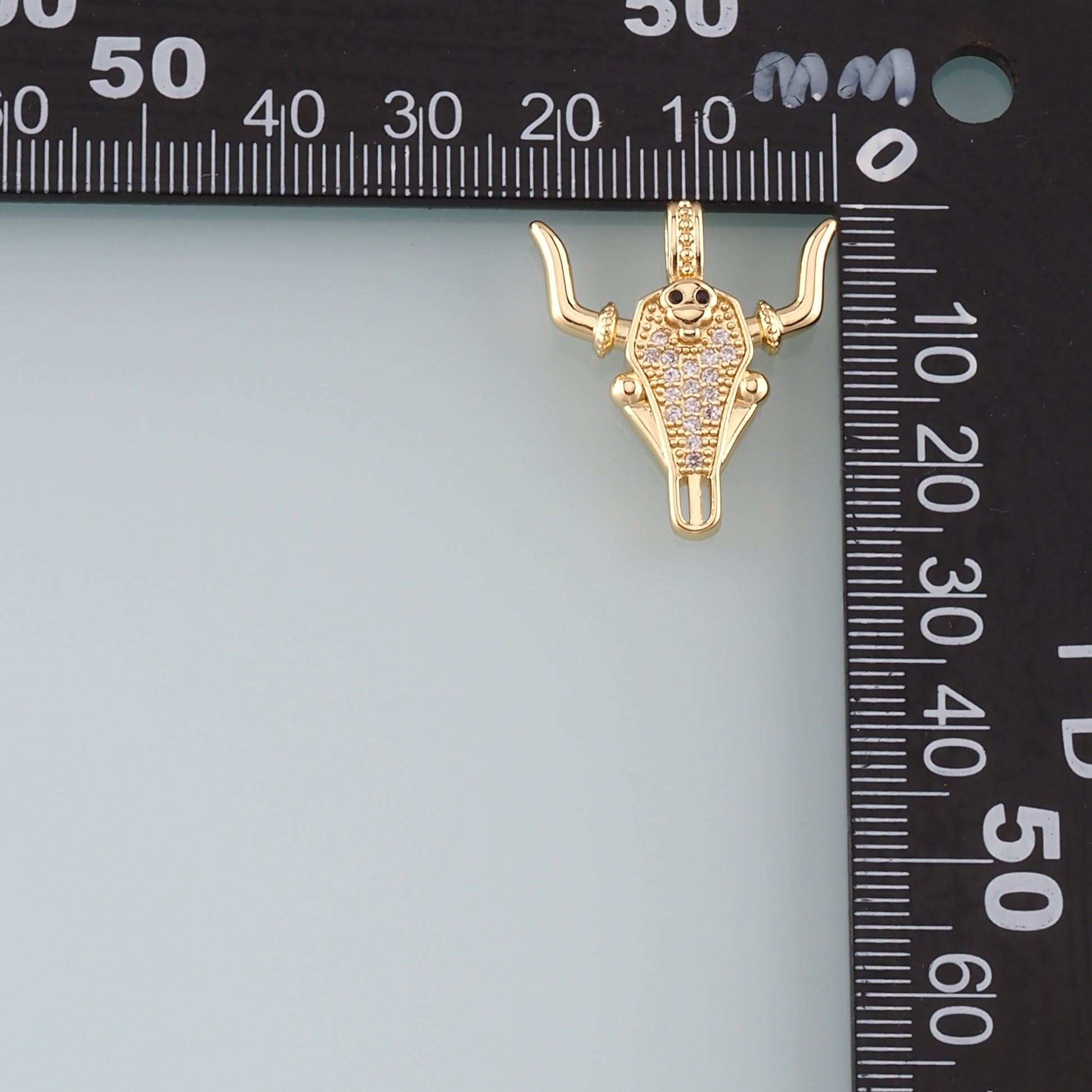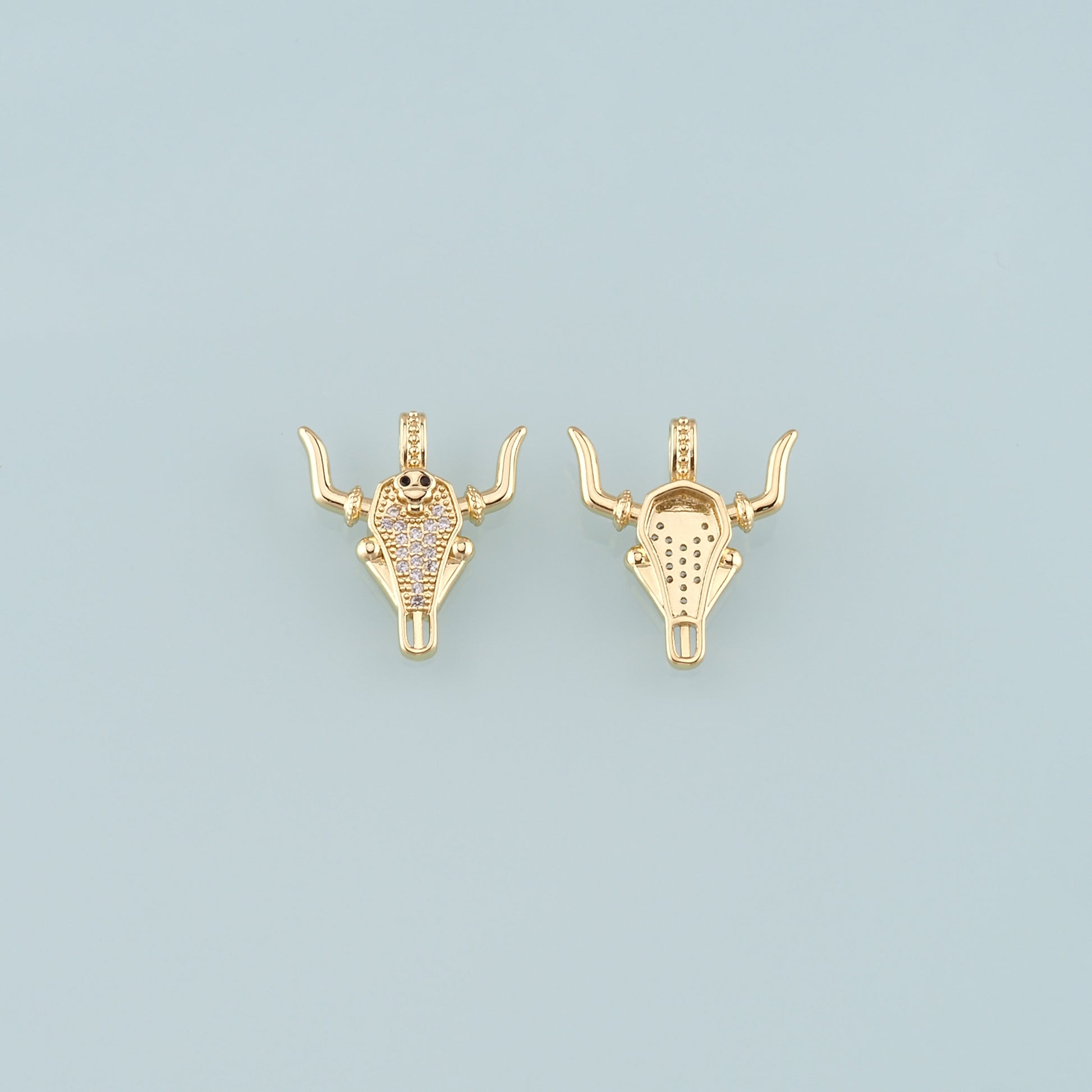 Gold Ox Charms,18K Gold Filled Bull Head Pendant,CZ Micro Pave Bull Charm Bracelet Necklace for DIY Jewelry Making Supply