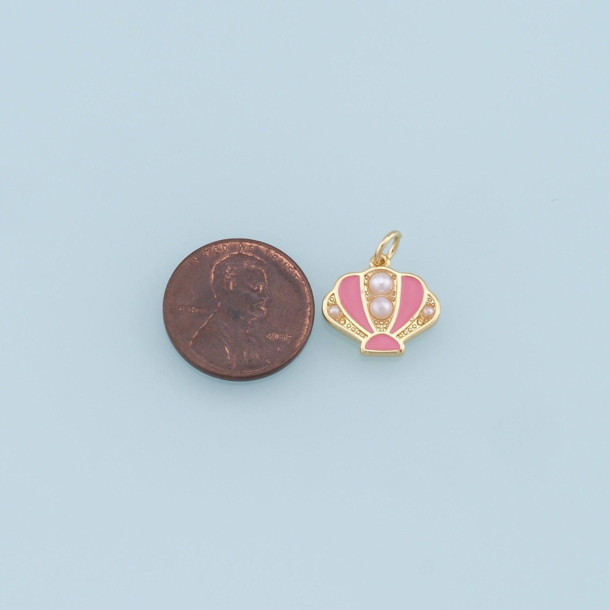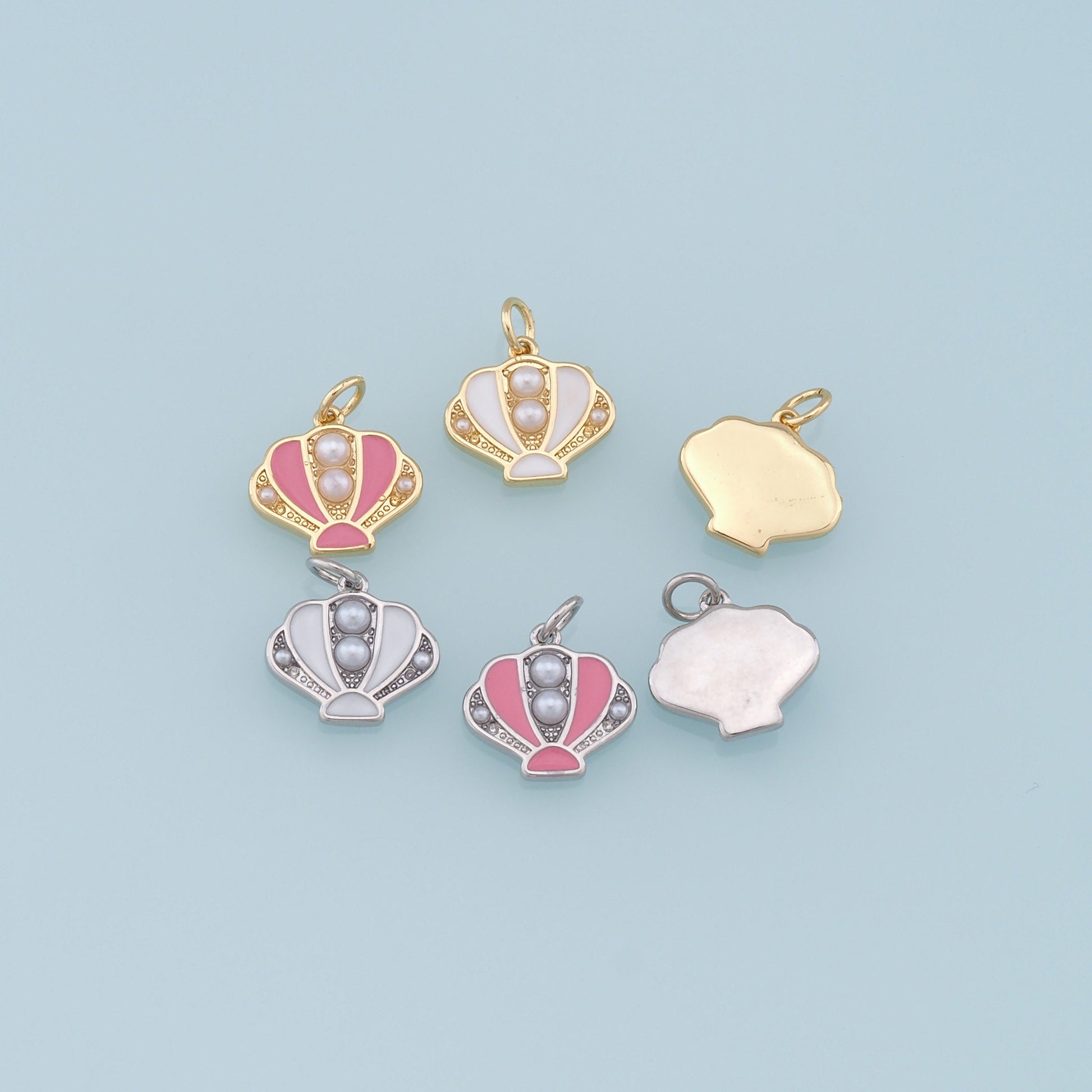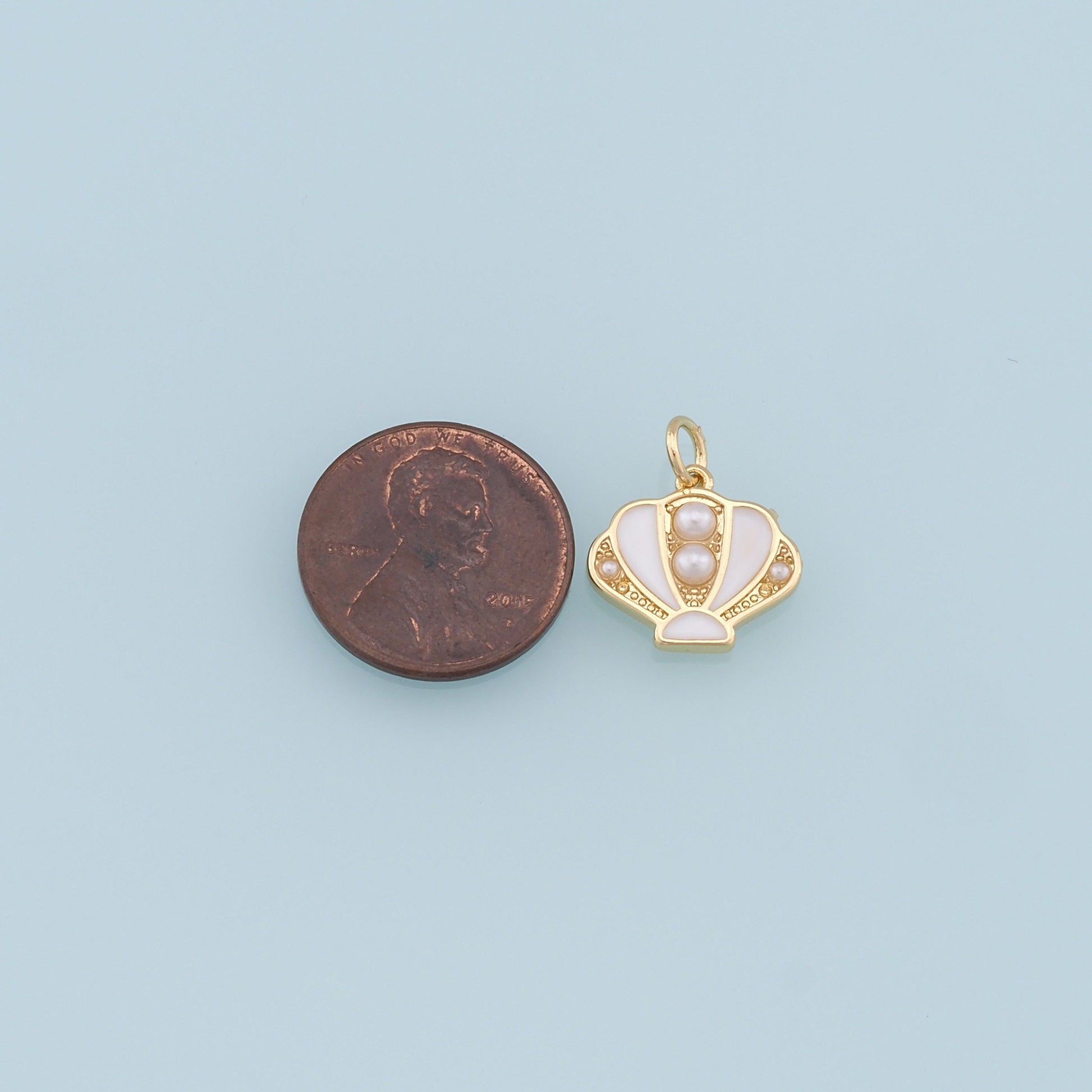 Gold Pearl Shell Charms,18K Gold Filled Shell Pendant,Enamel Shell Charm Bracelet Necklace for DIY Jewelry Making Supply