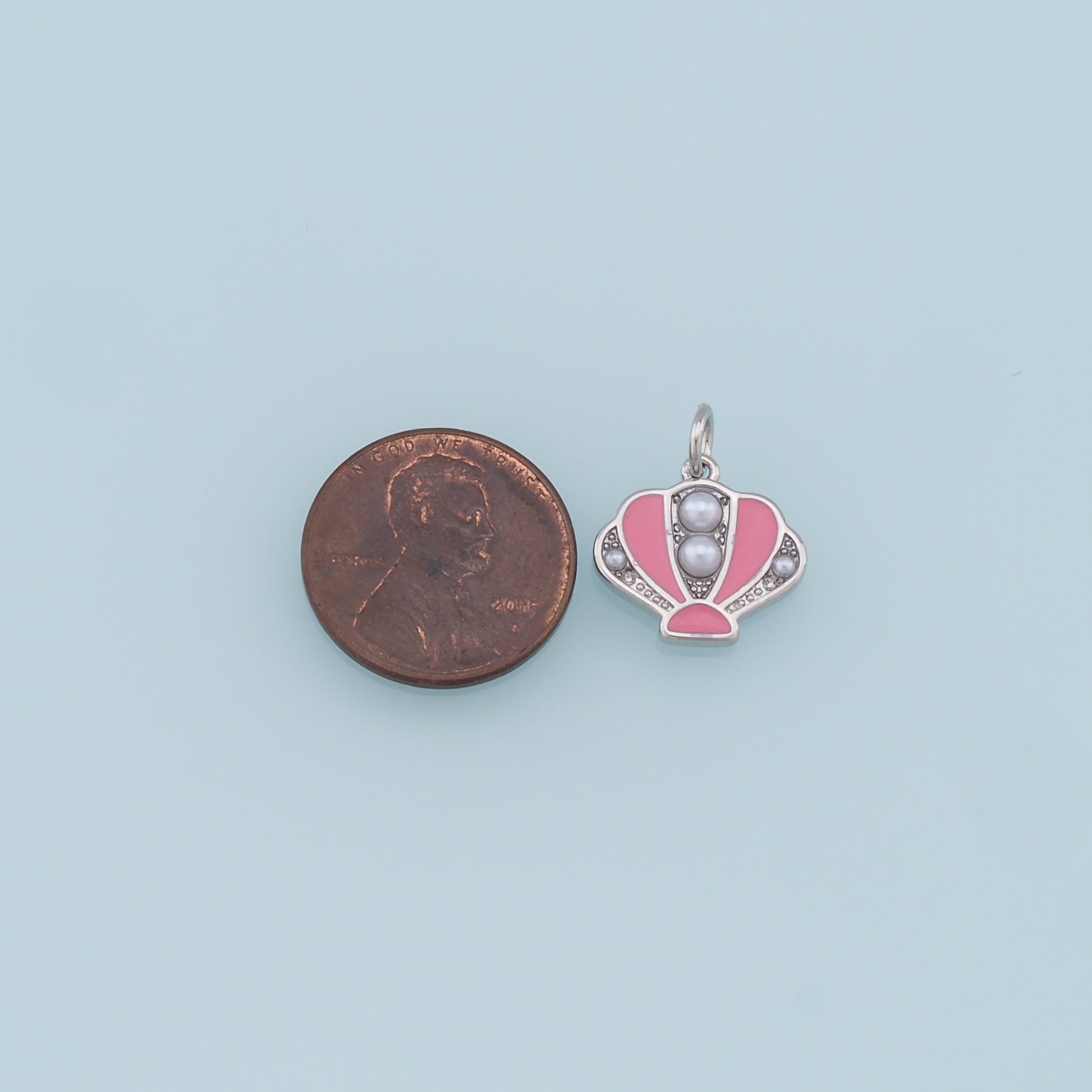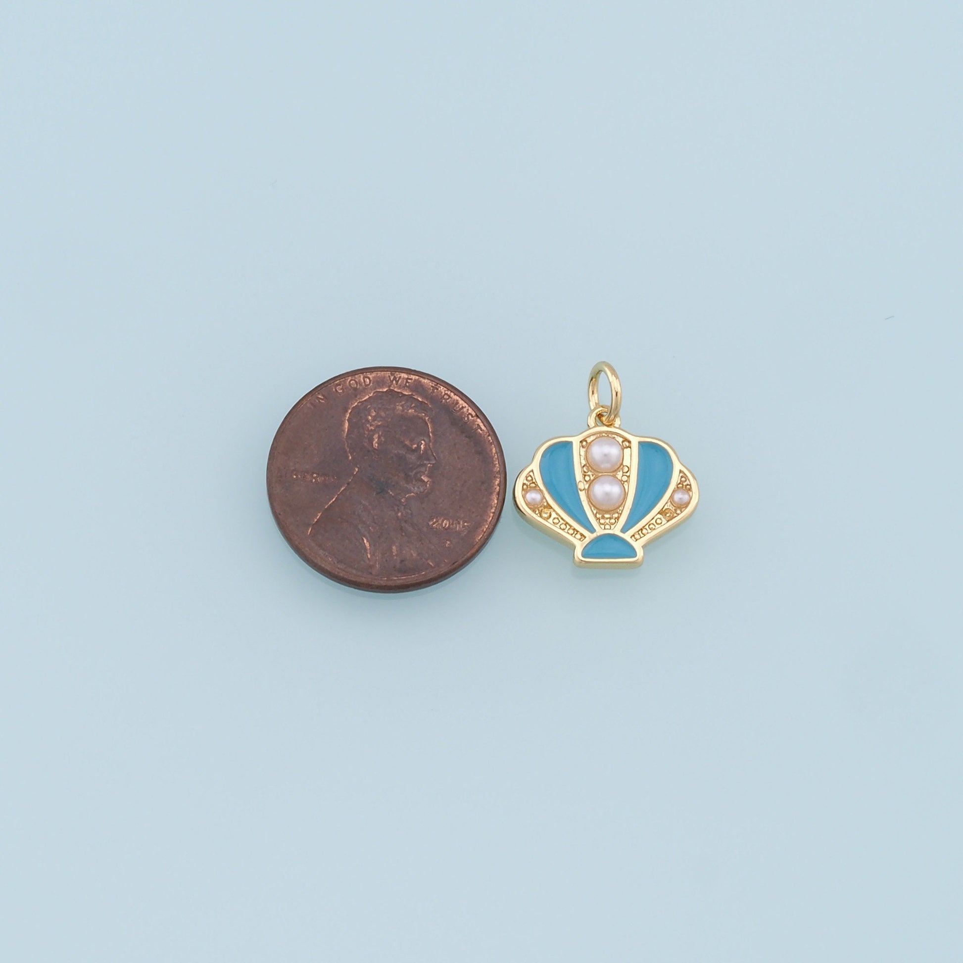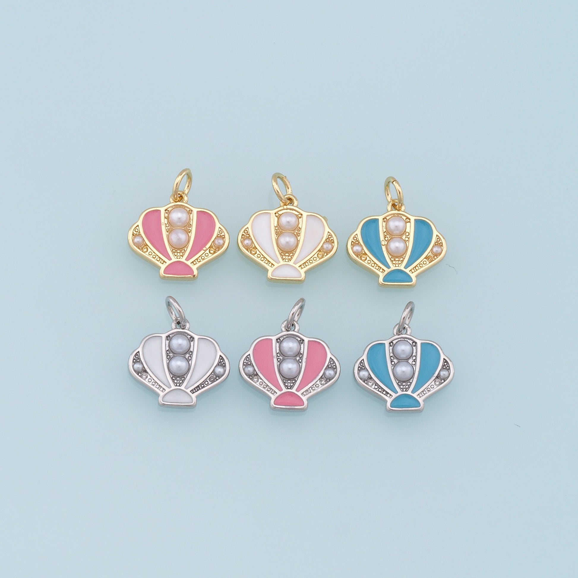 Gold Pearl Shell Charms,18K Gold Filled Shell Pendant,Enamel Shell Charm Bracelet Necklace for DIY Jewelry Making Supply